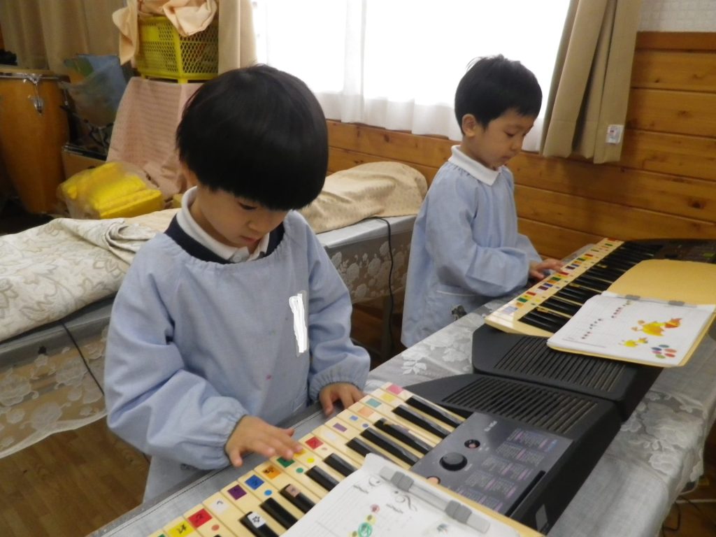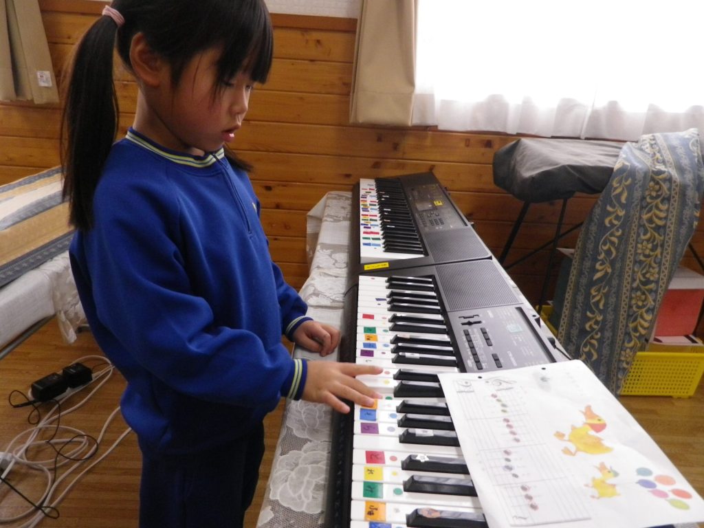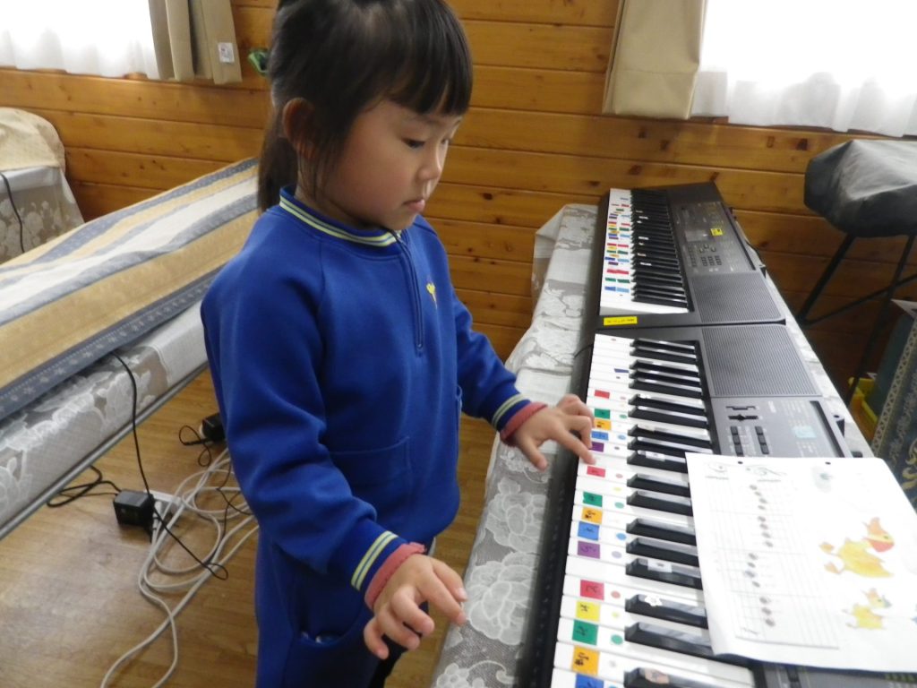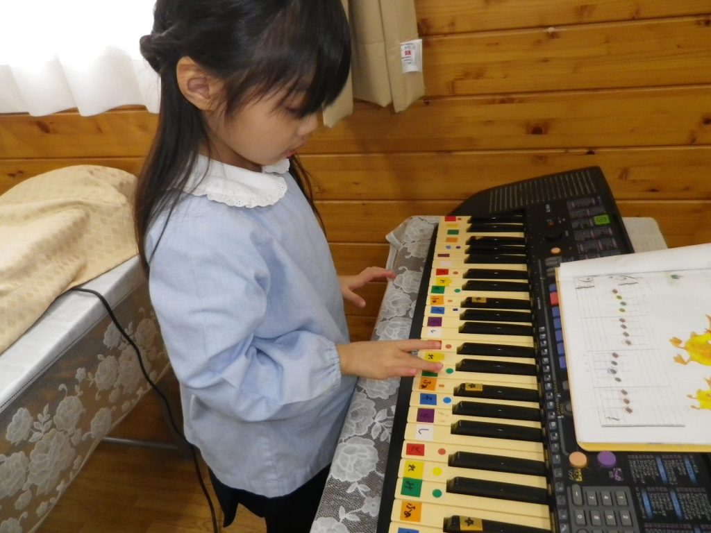 右手と左手を交互に使って、キーボード奏もがんばっていますよ。