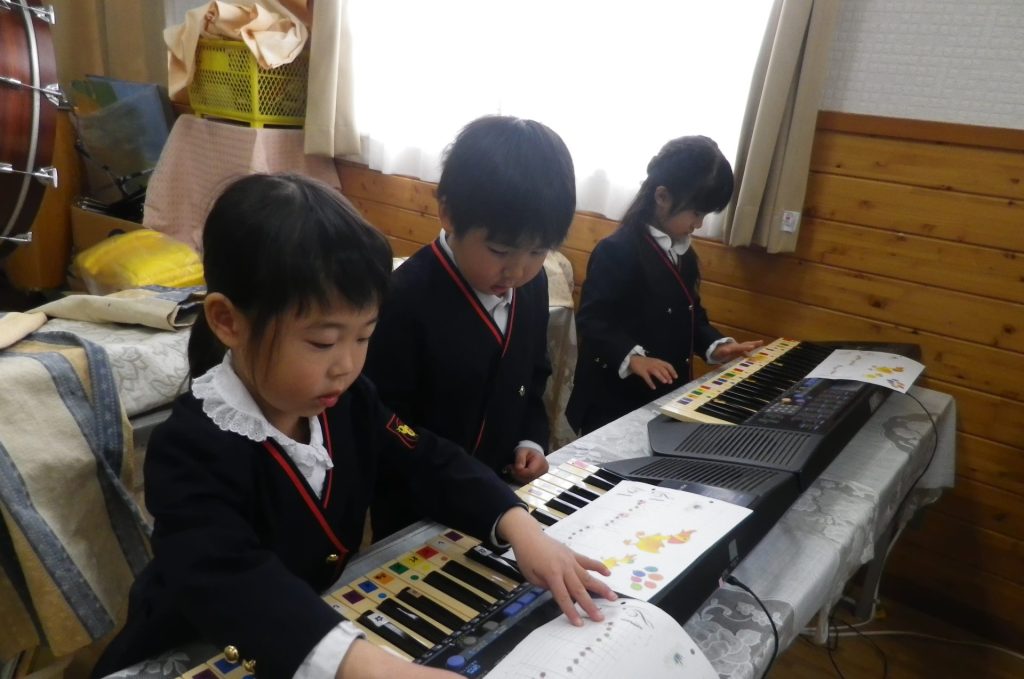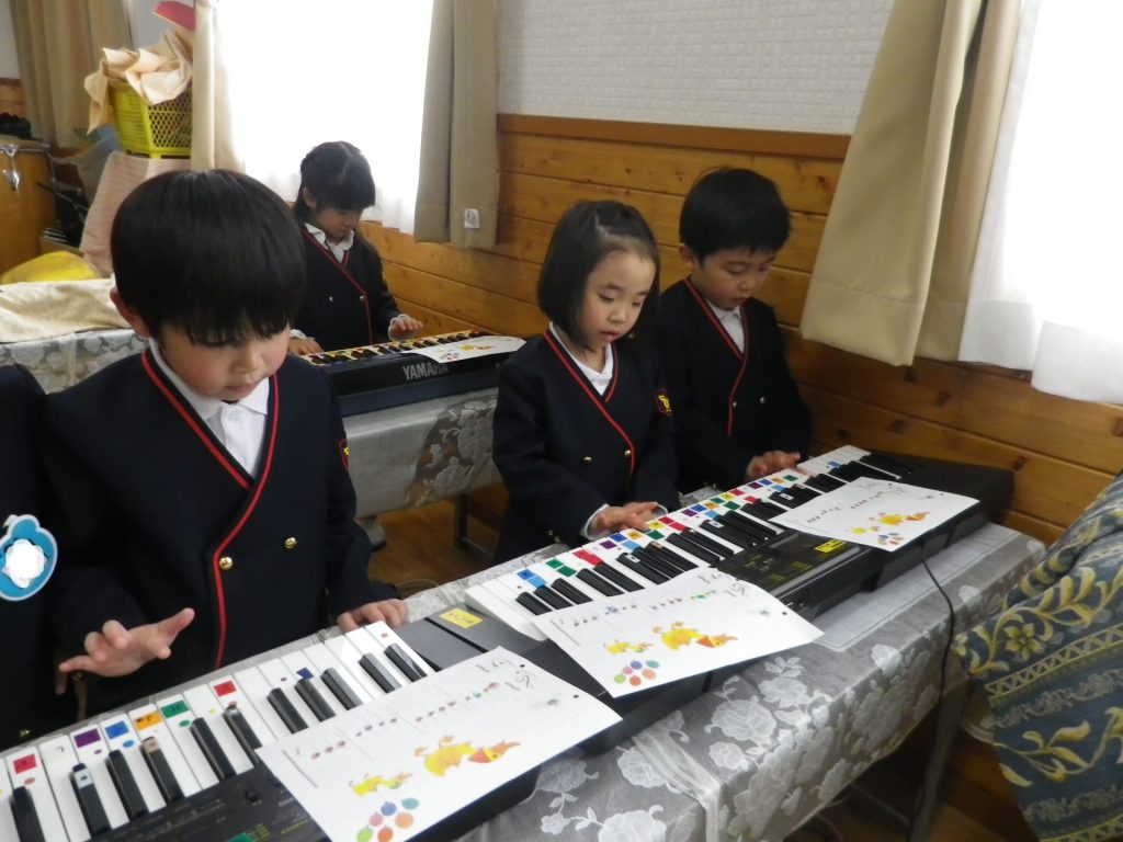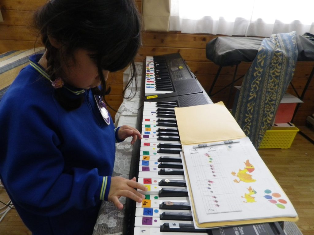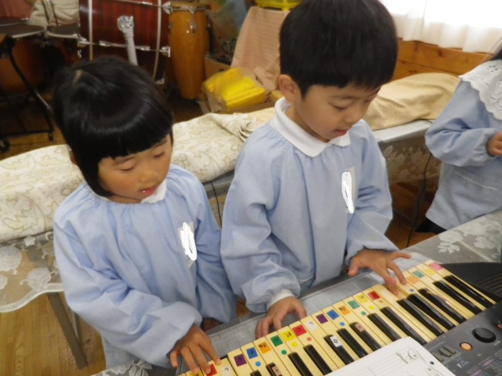 右手と左手を交互に使って、キーボード奏もがんばっていますよ。