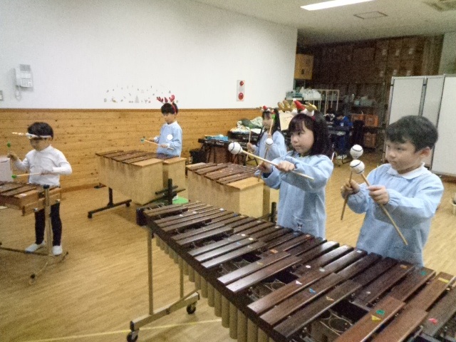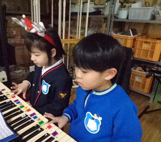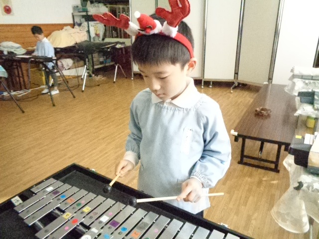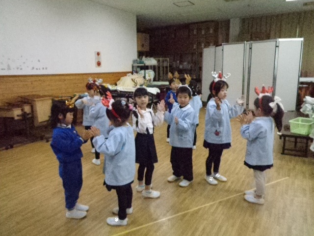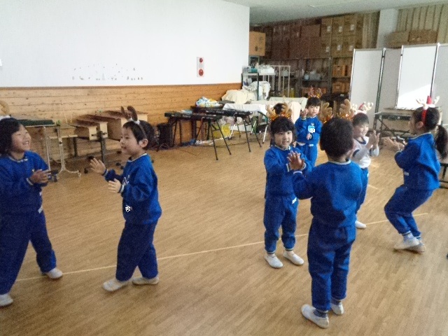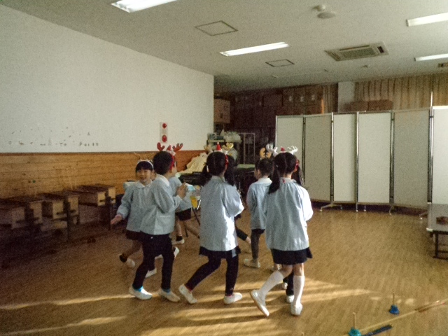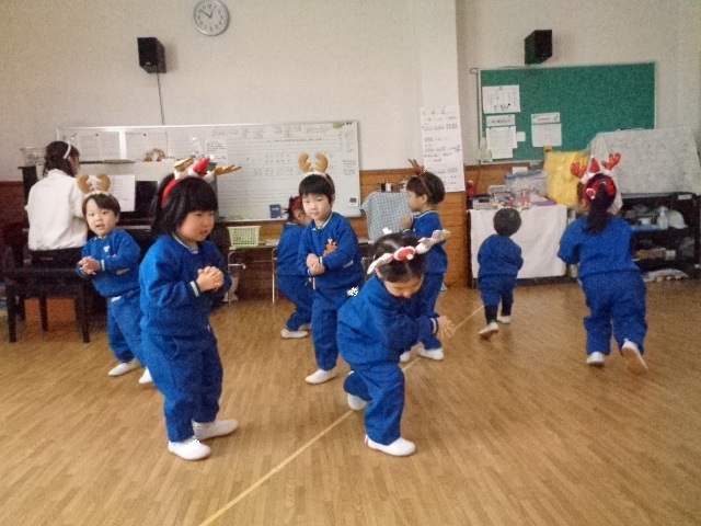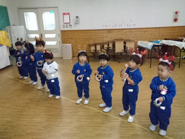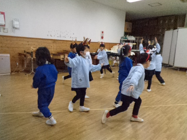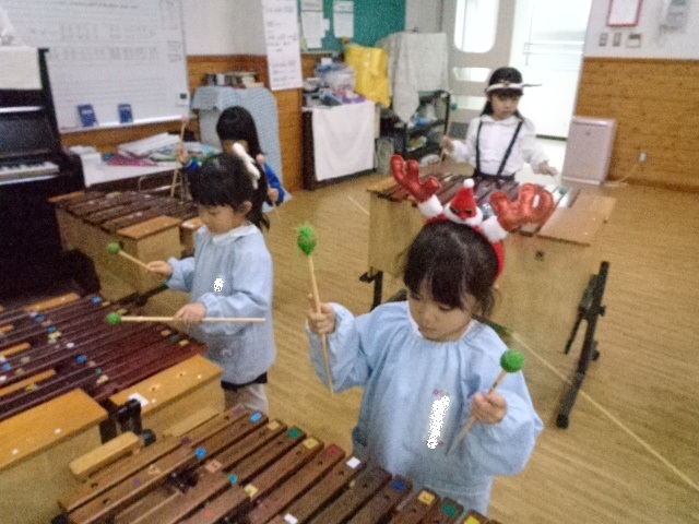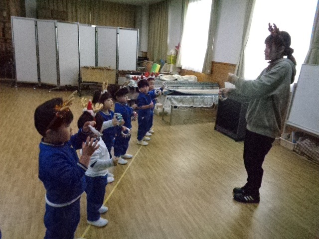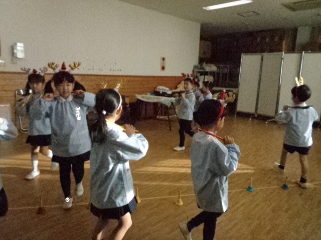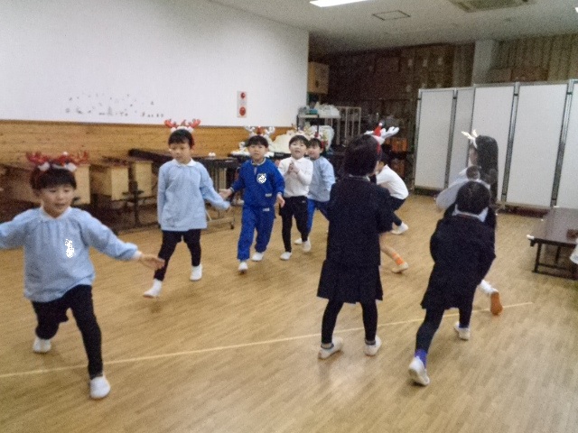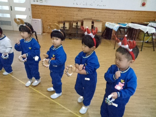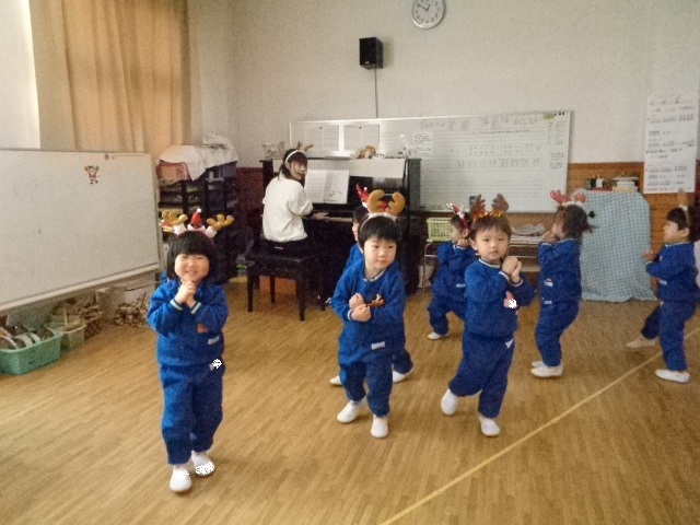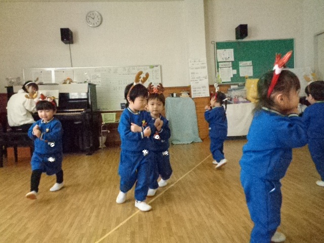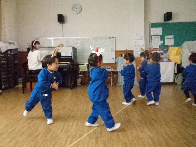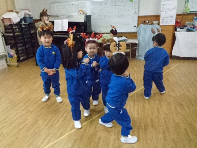 ~年中さん~ 園内はクリスマスパーティーで大盛り上がりです♪レッスンでも、クリスマス気分を味わいながら楽しみました♪