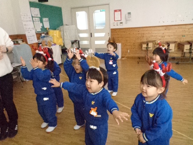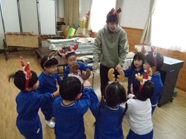 ~年中さん~ トナカイカチューシャをつけて可愛く変身し、クリスマスの気分を味わいました♪