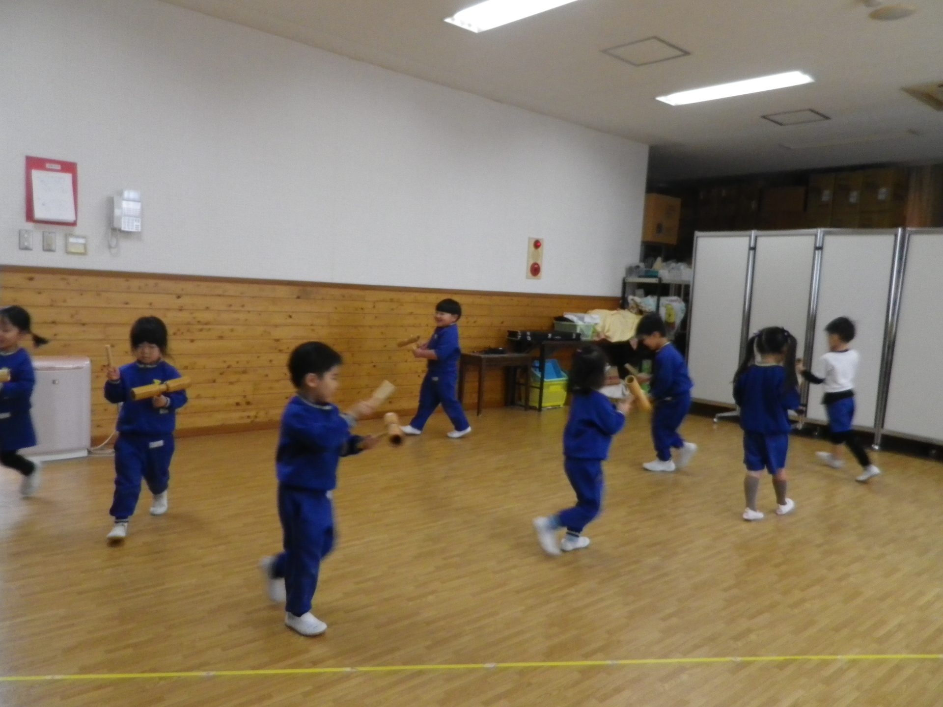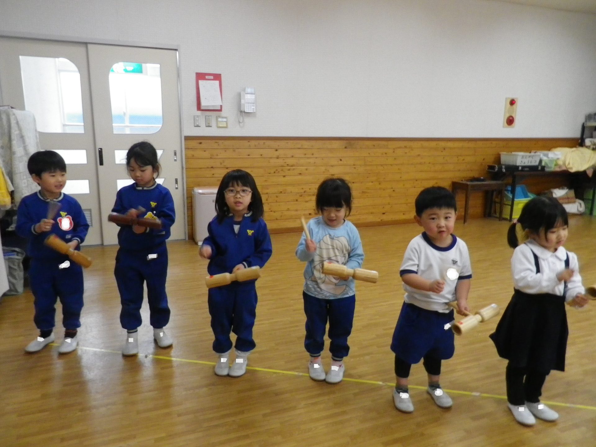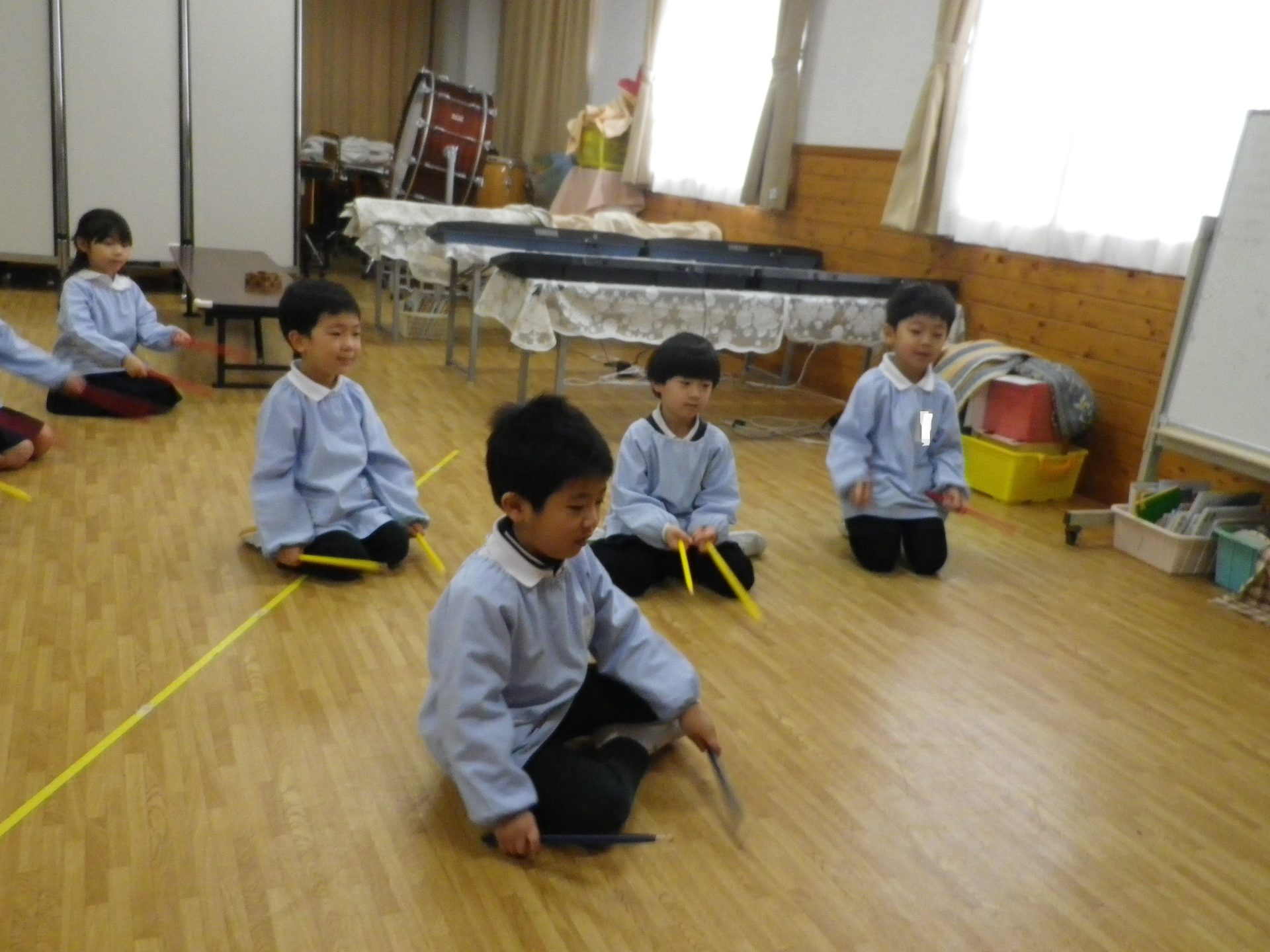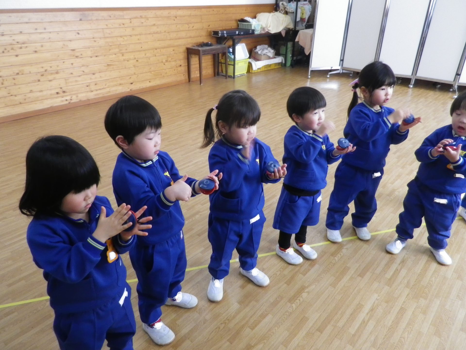 カスタネットも上手に鳴らせるようになってきました。名前もよく覚えています。