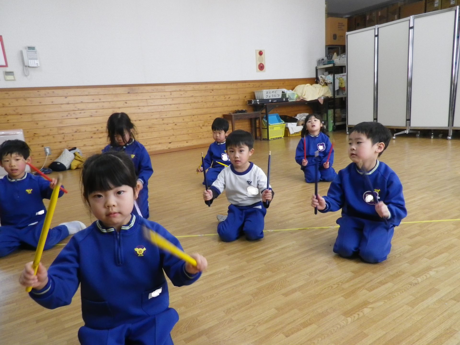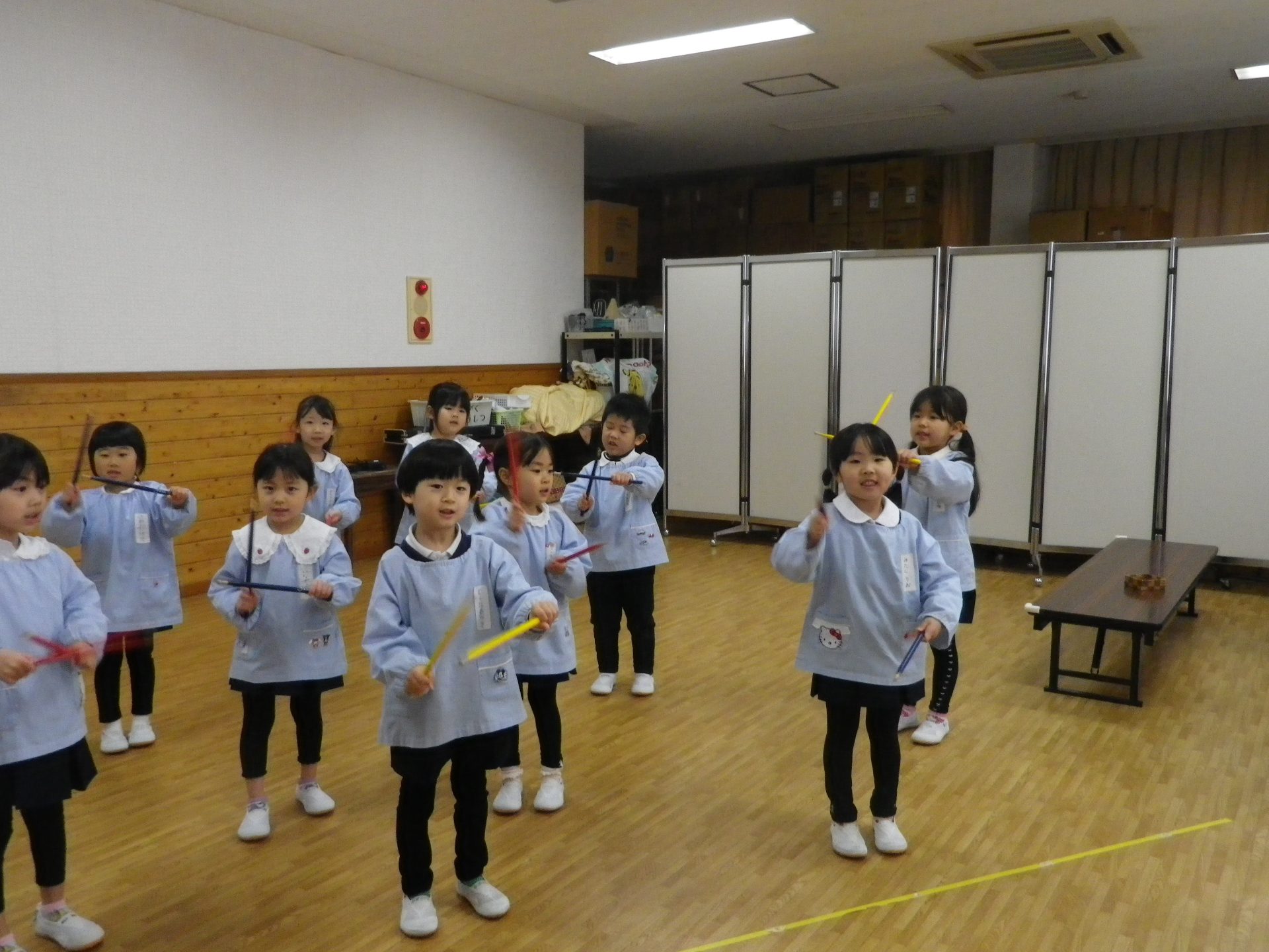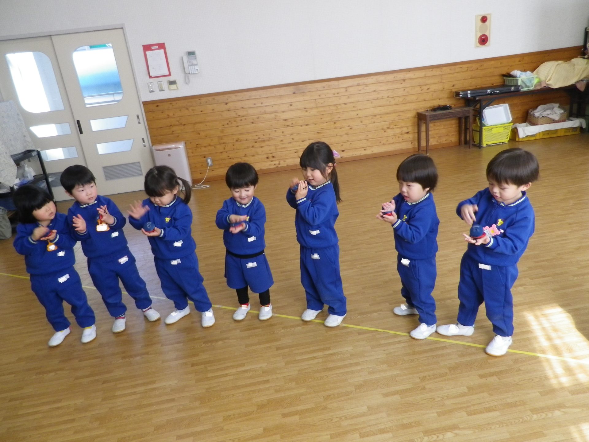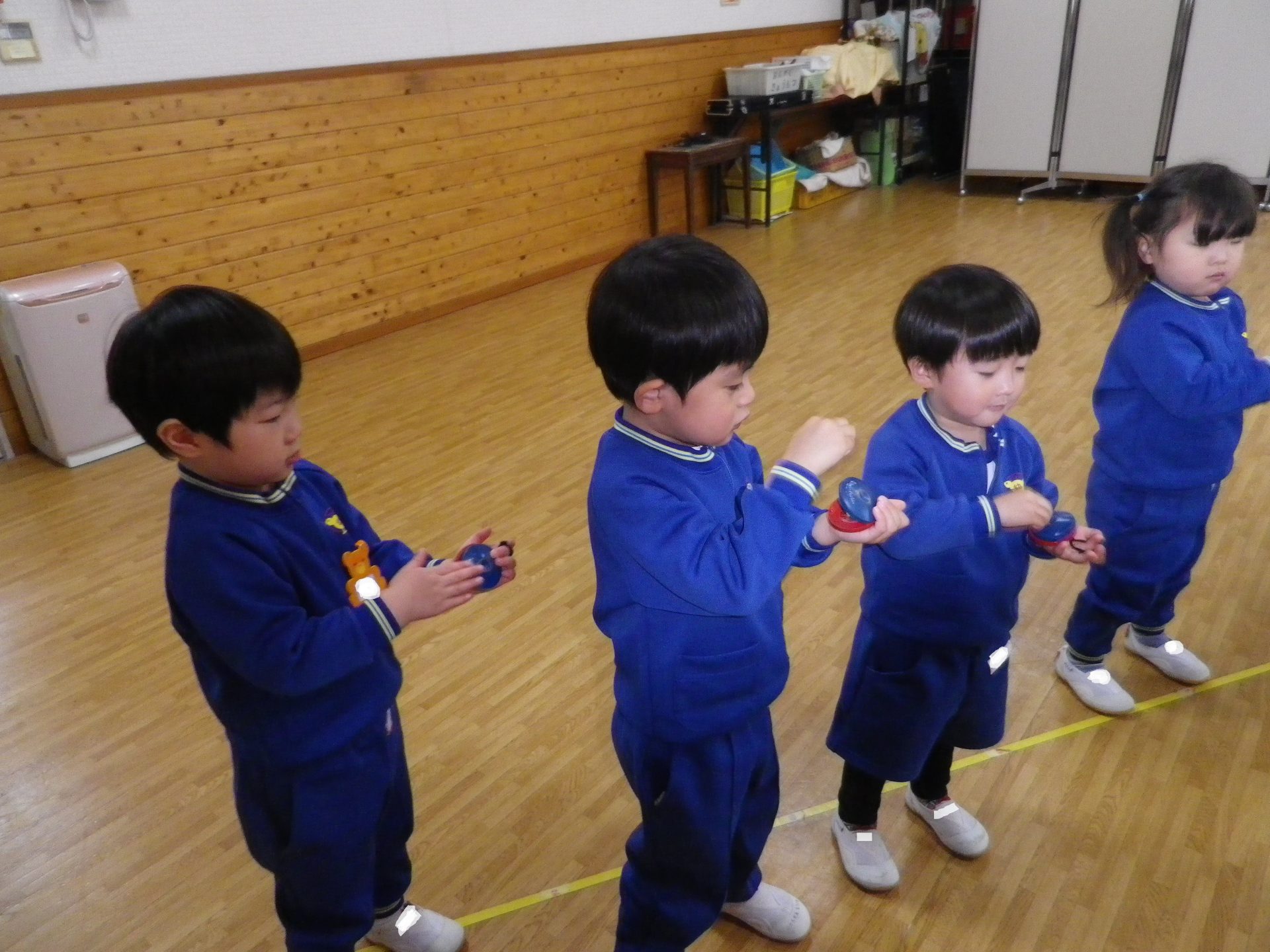 カスタネットも上手に鳴らせるようになってきました。名前もよく覚えています。