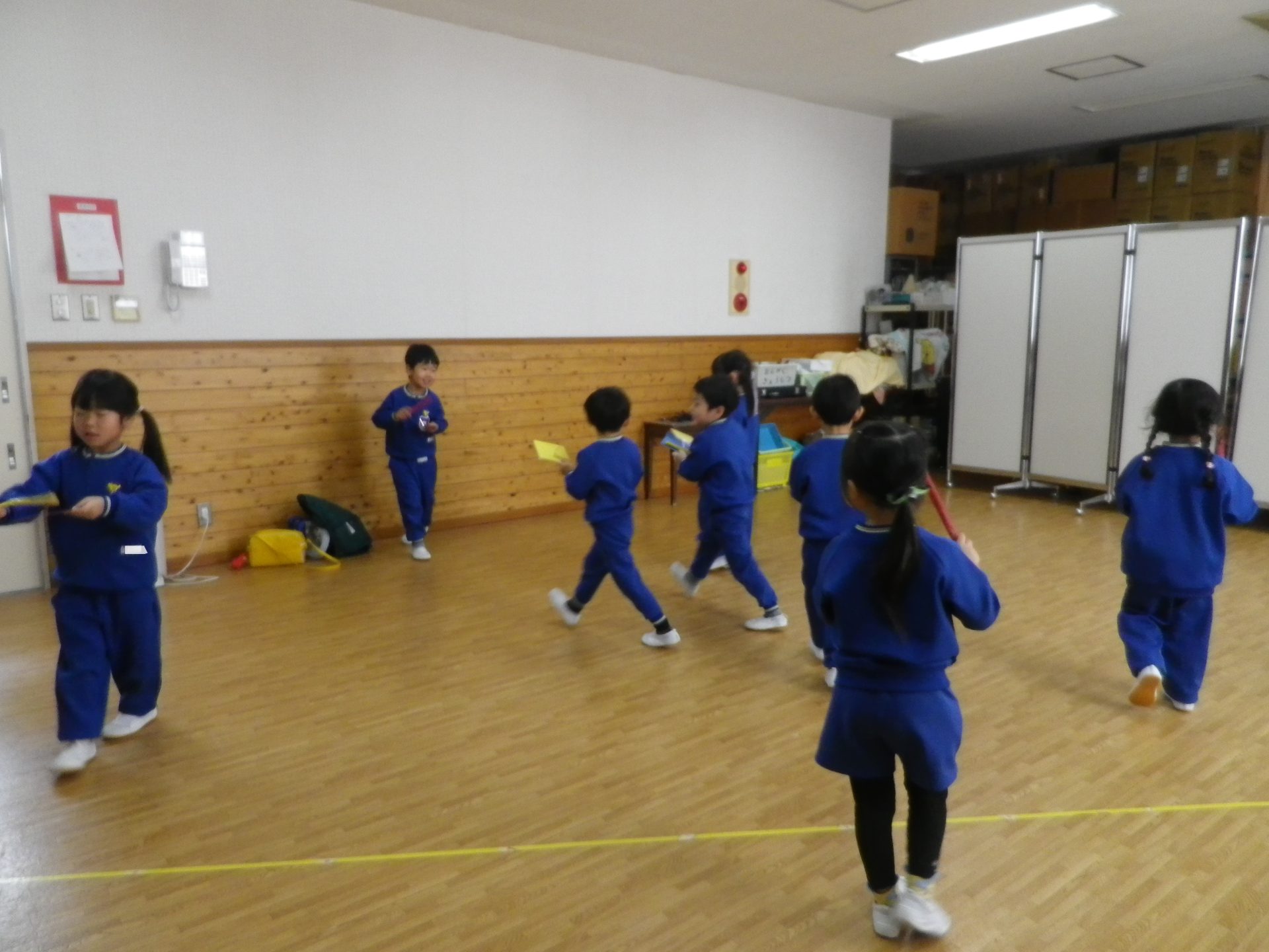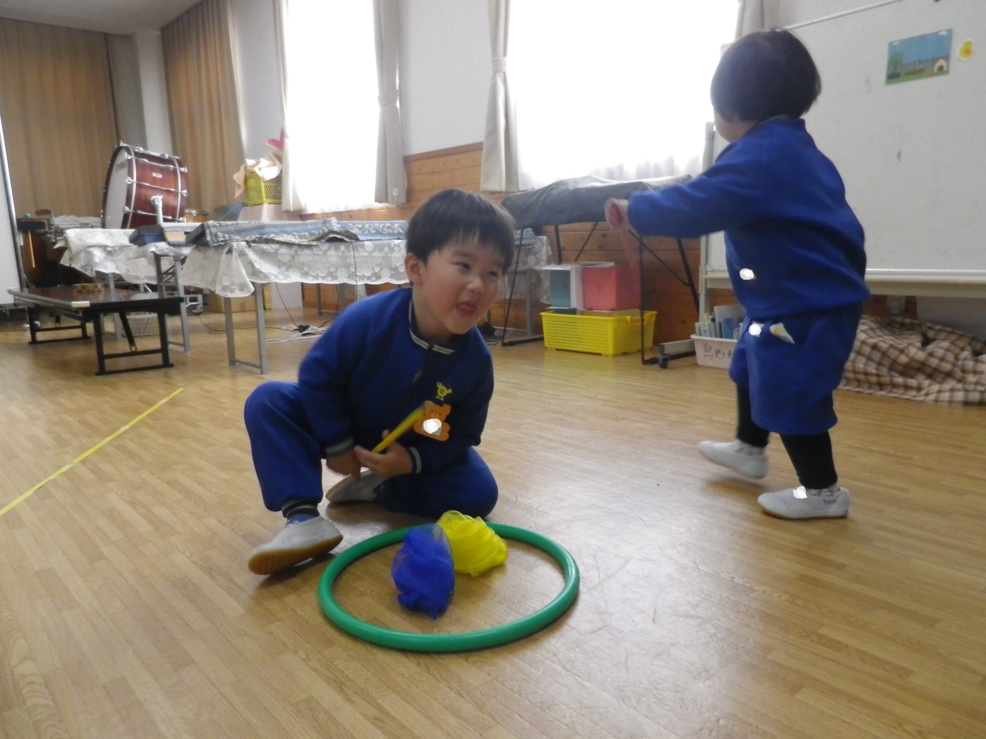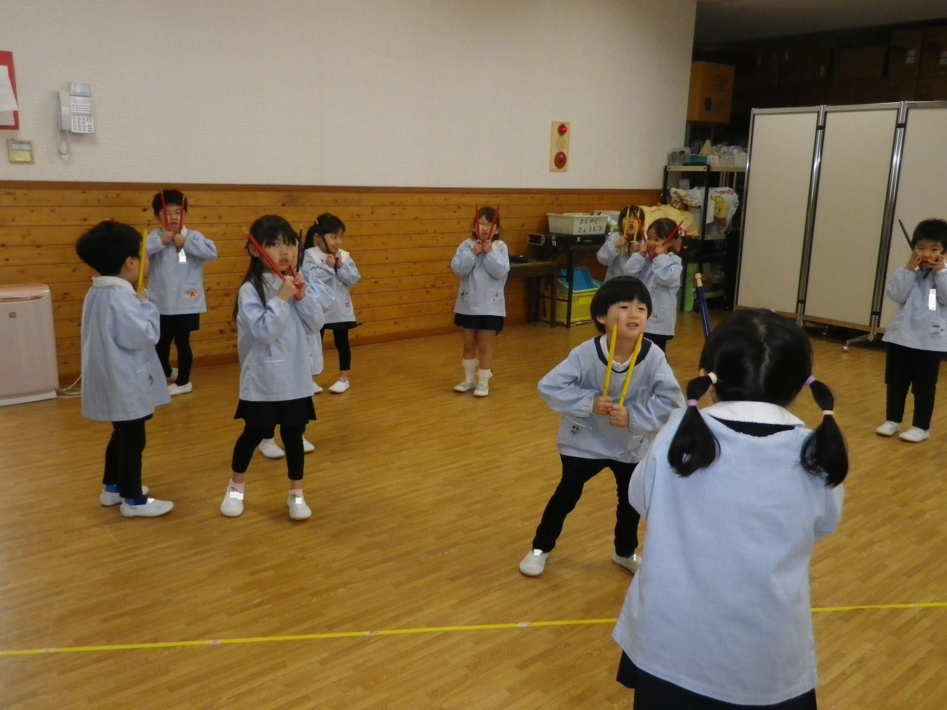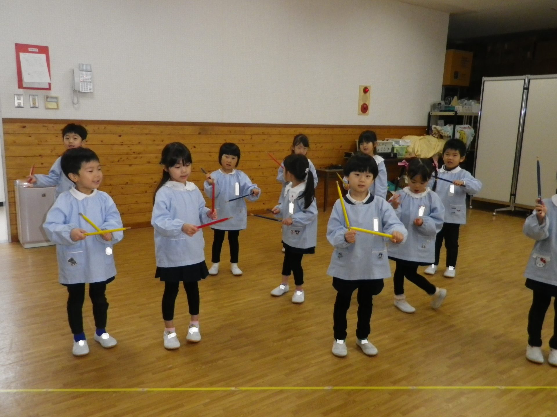 カスタネットも上手に鳴らせるようになってきました。名前もよく覚えています。
