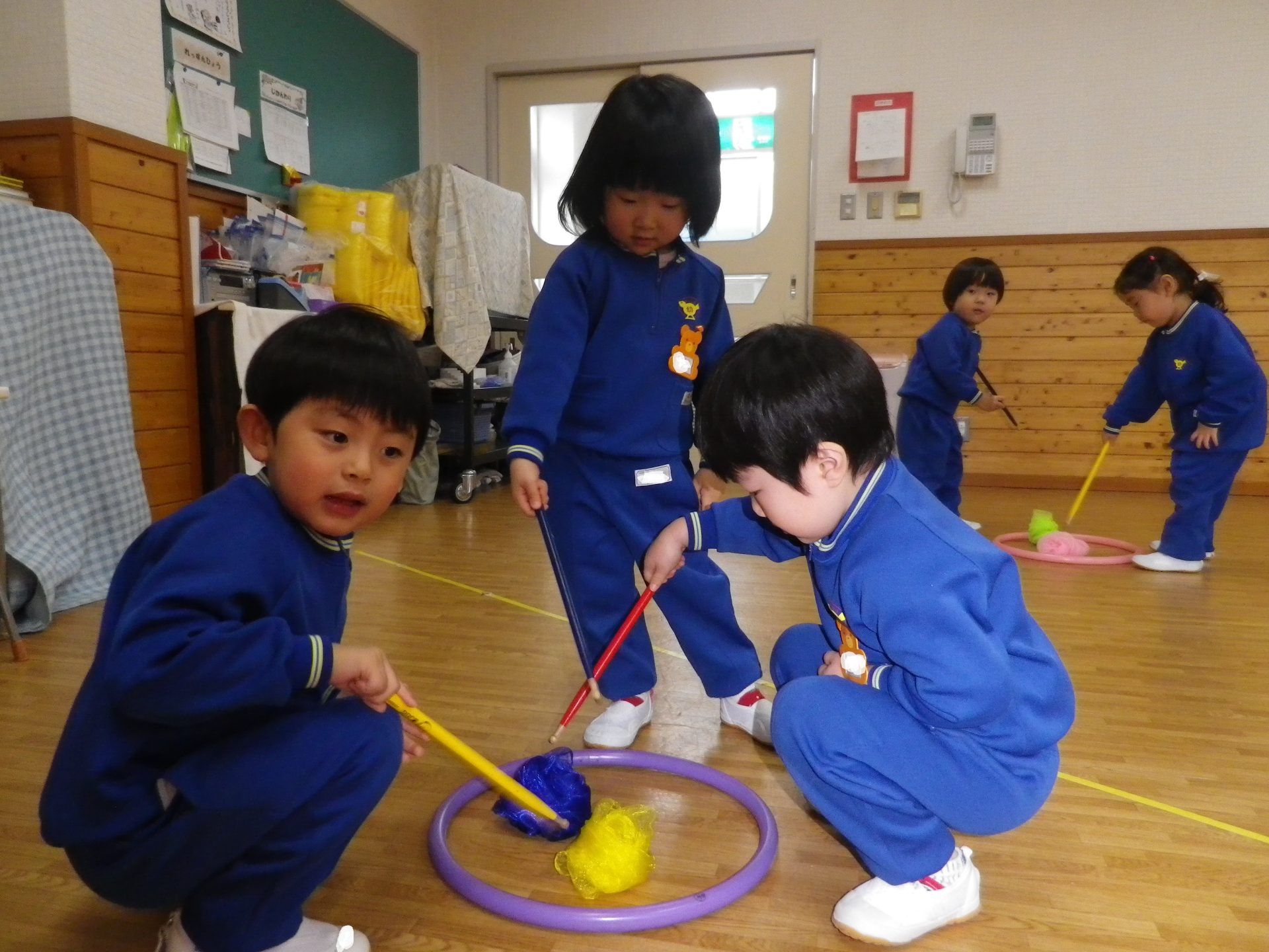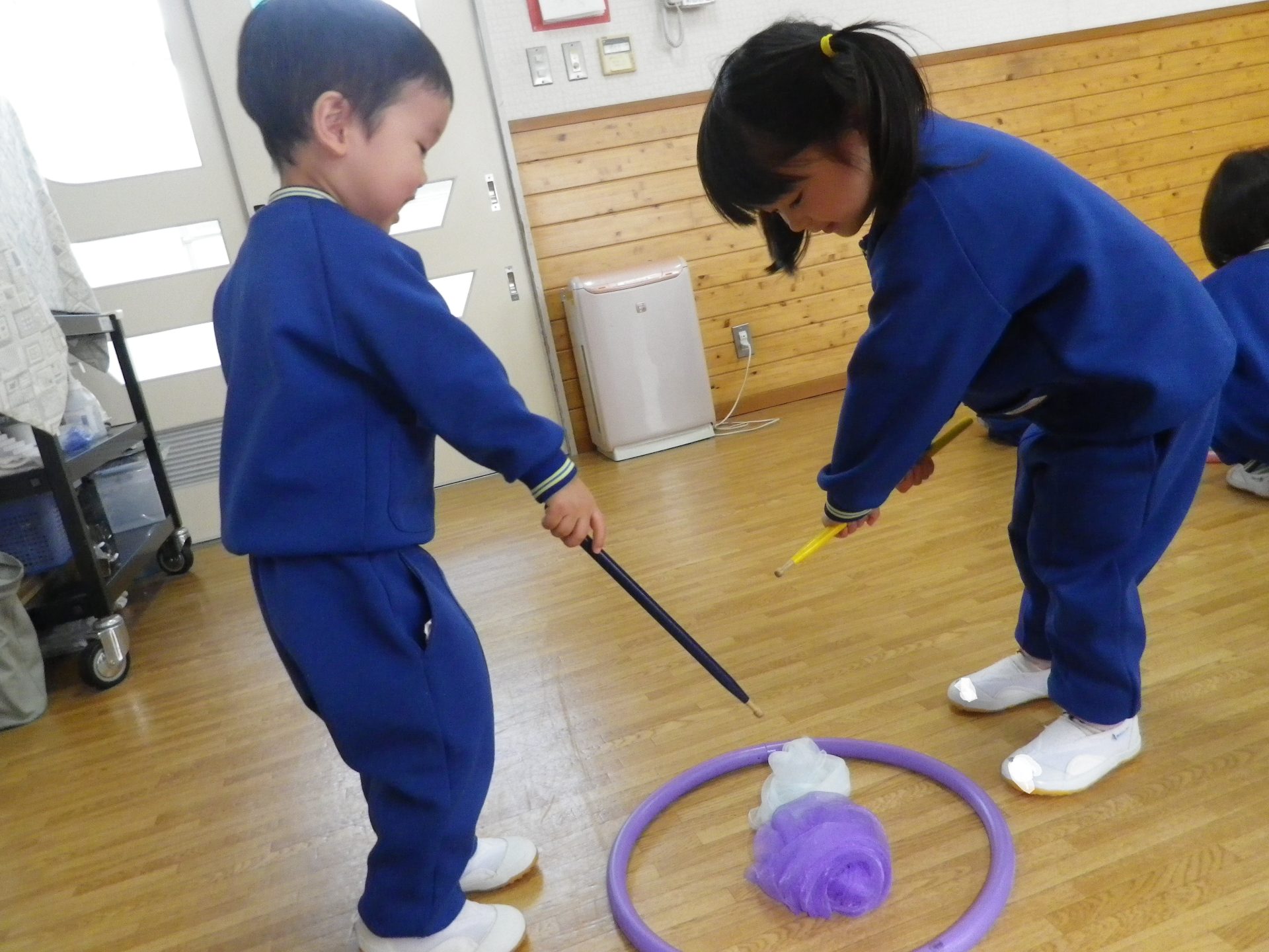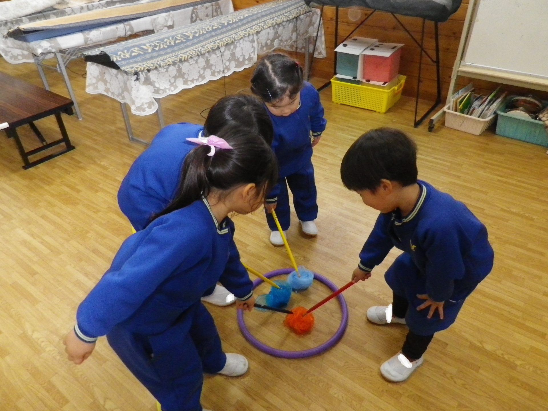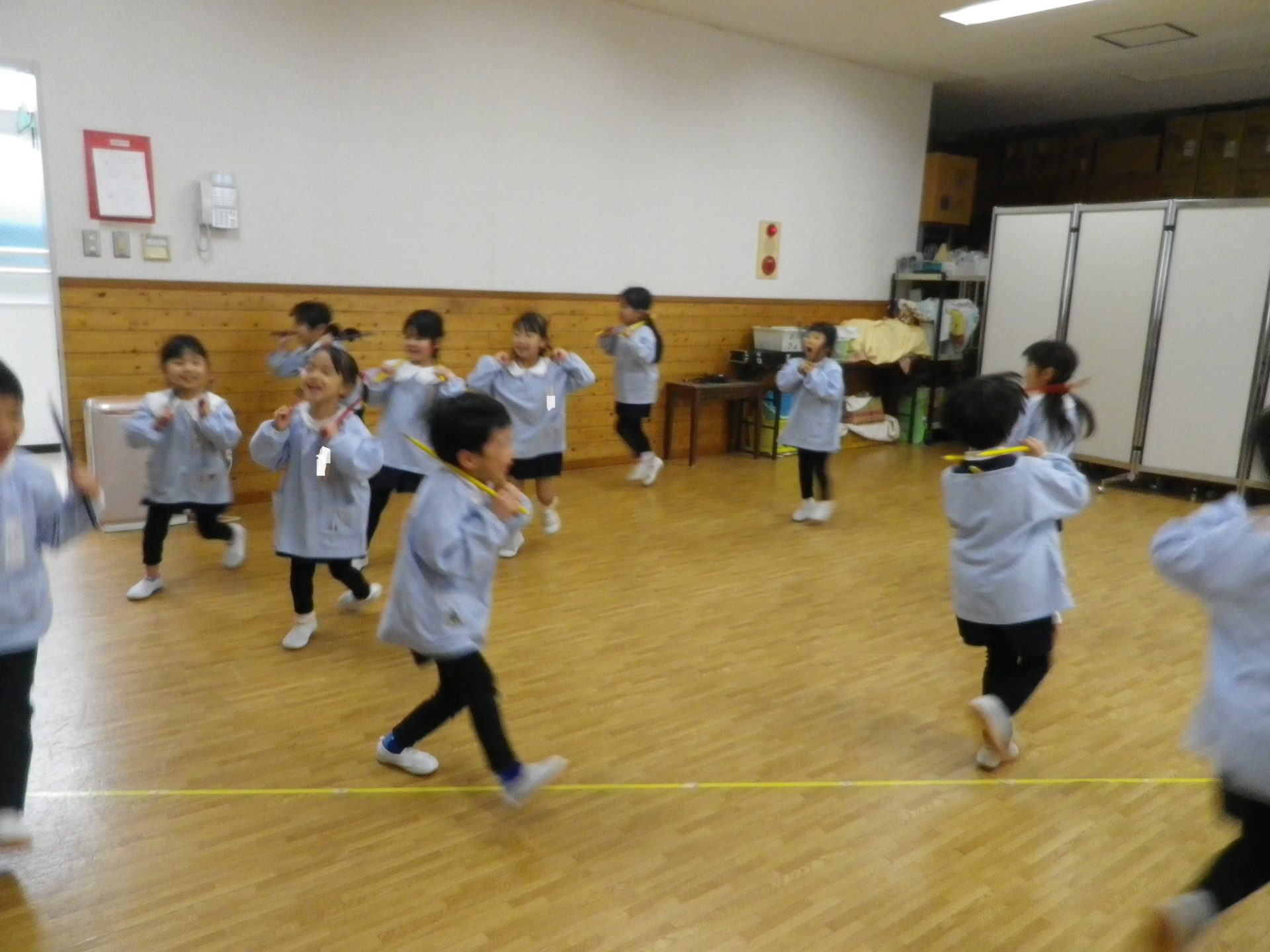 カスタネットも上手に鳴らせるようになってきました。名前もよく覚えています。