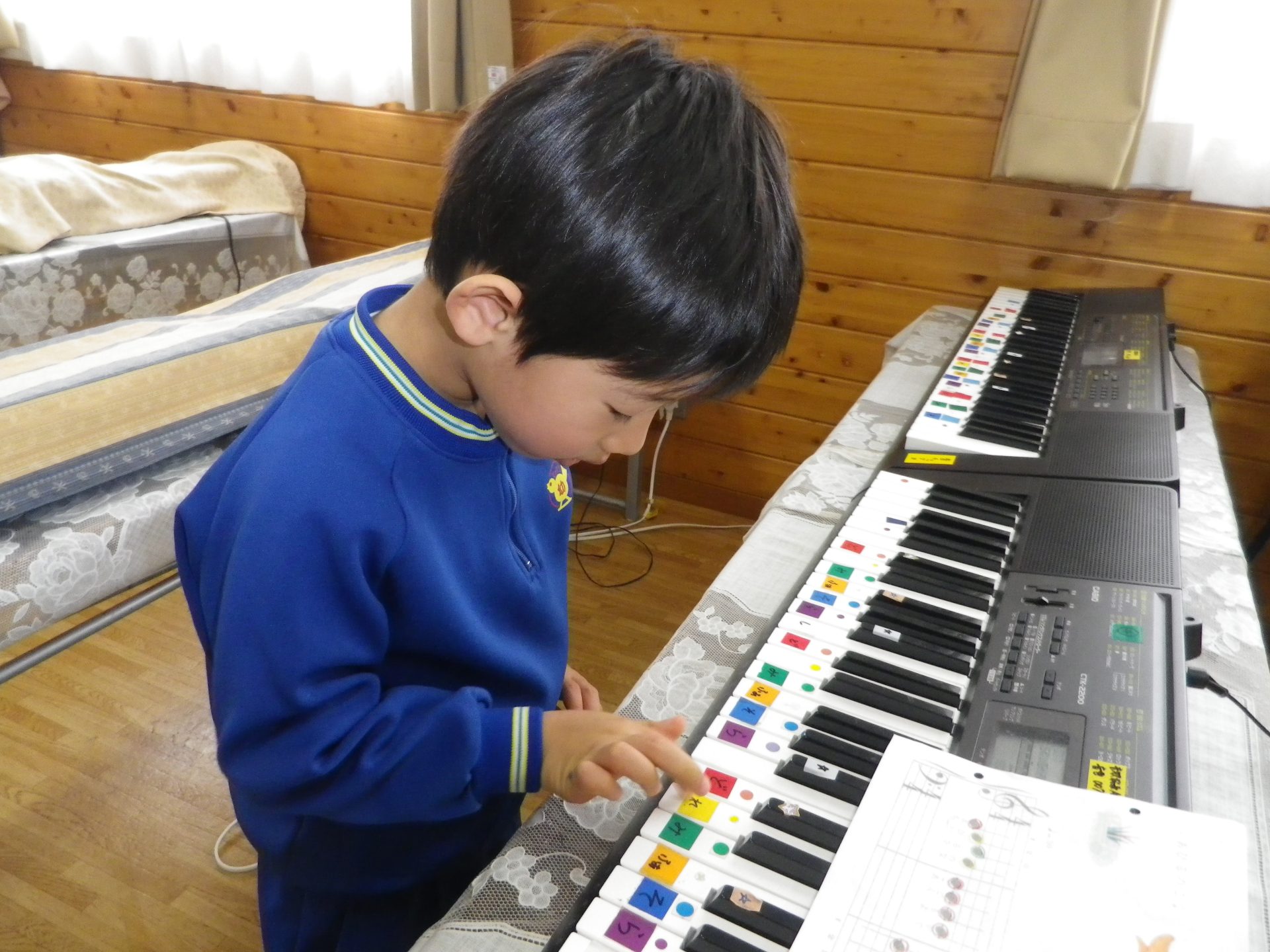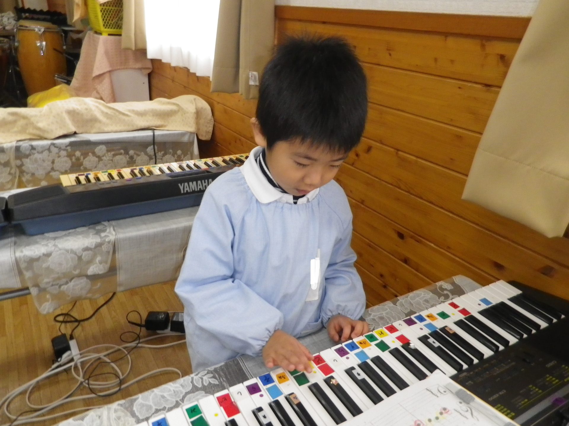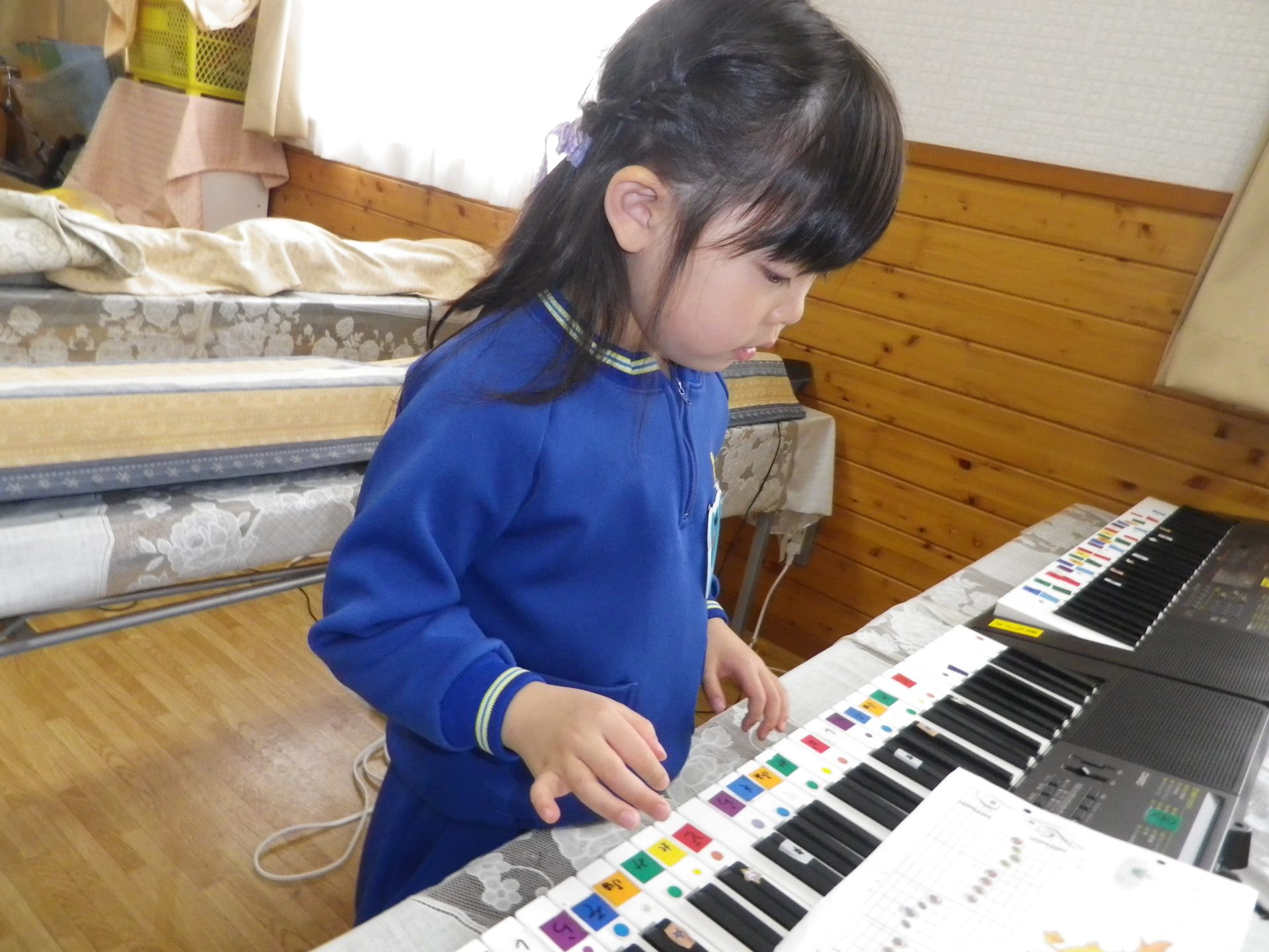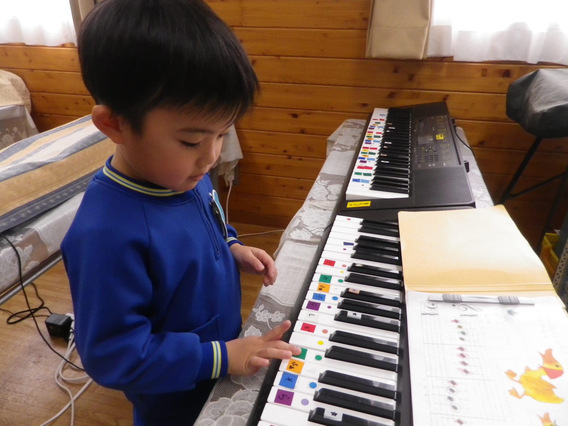 右手と左手を交互に使って、キーボード奏もがんばっていますよ。