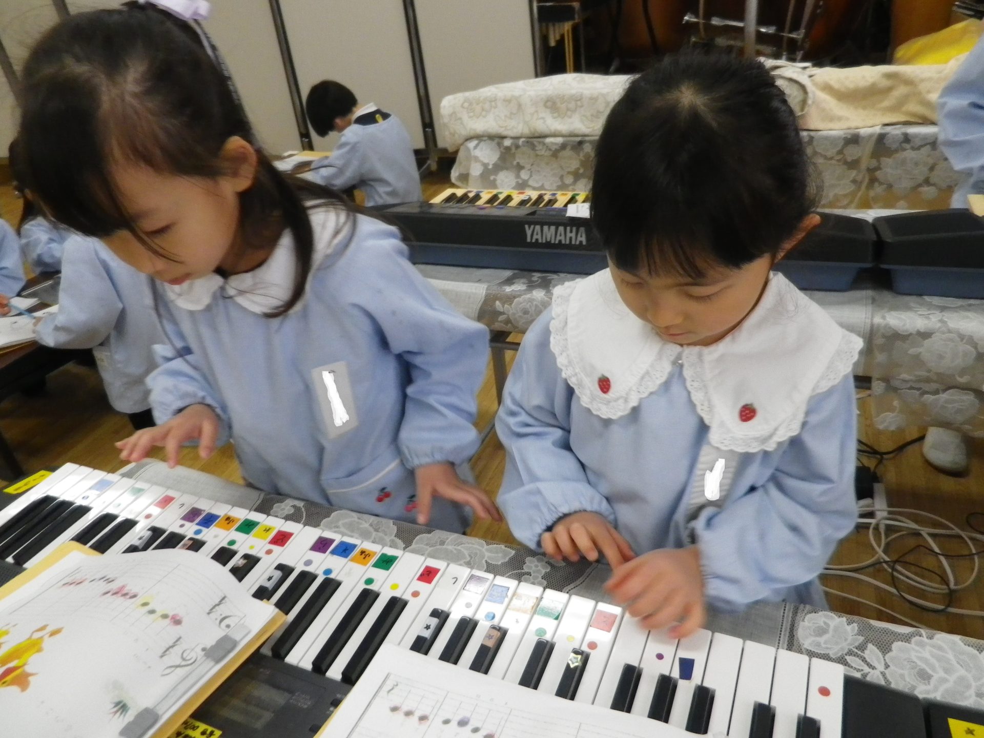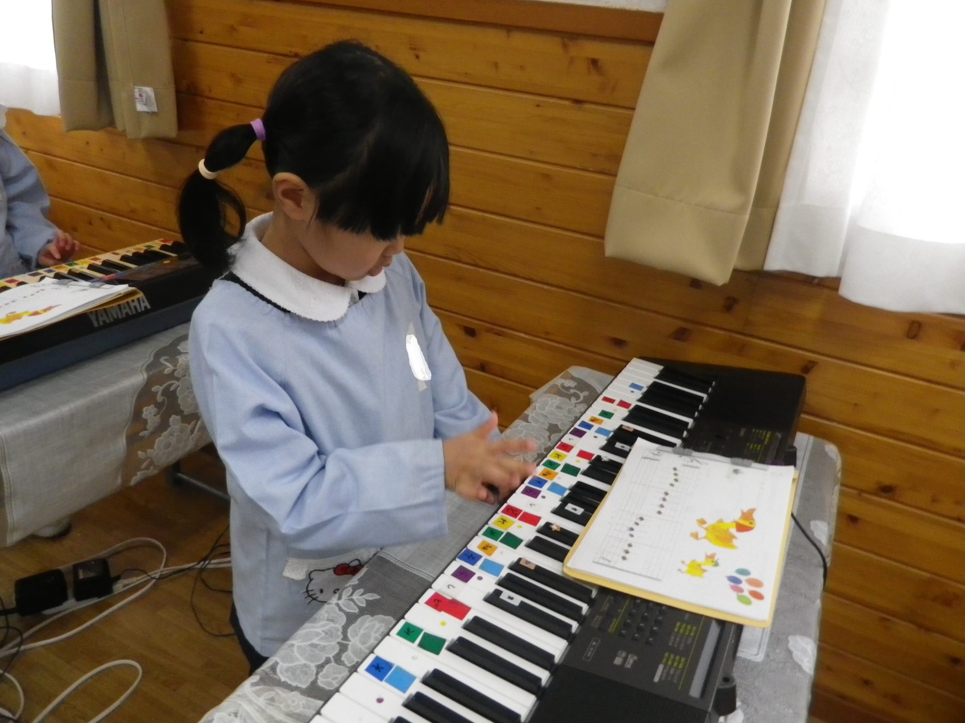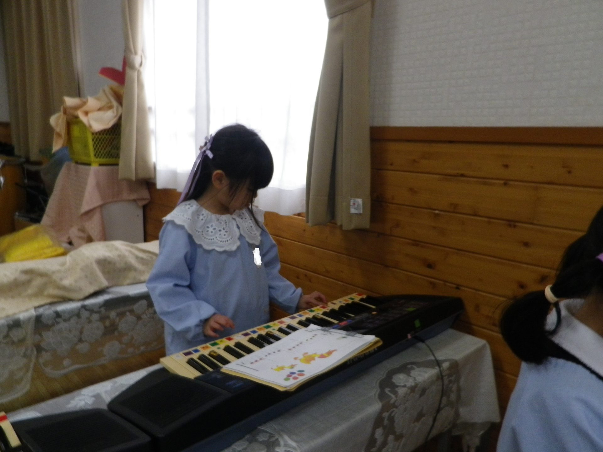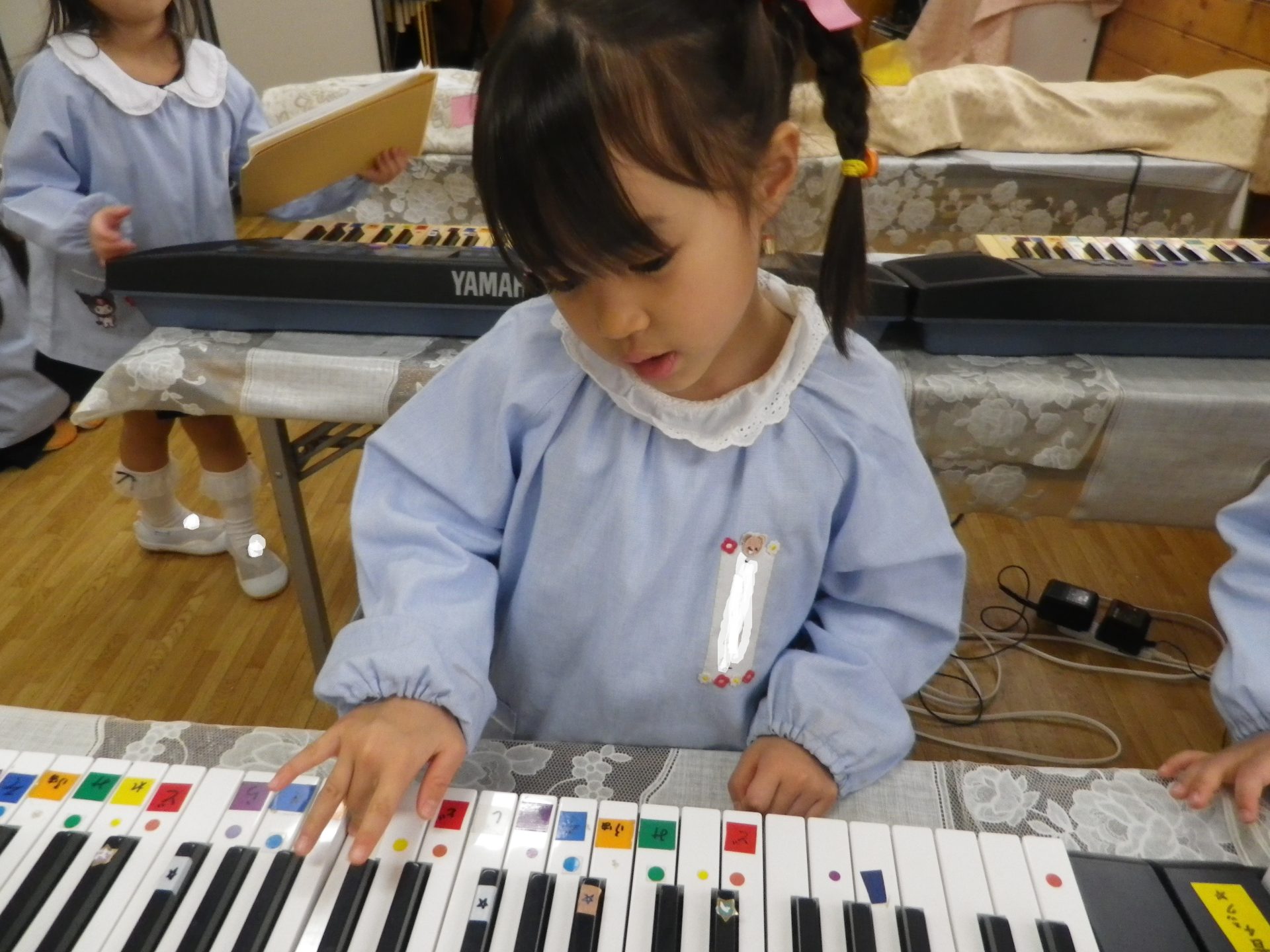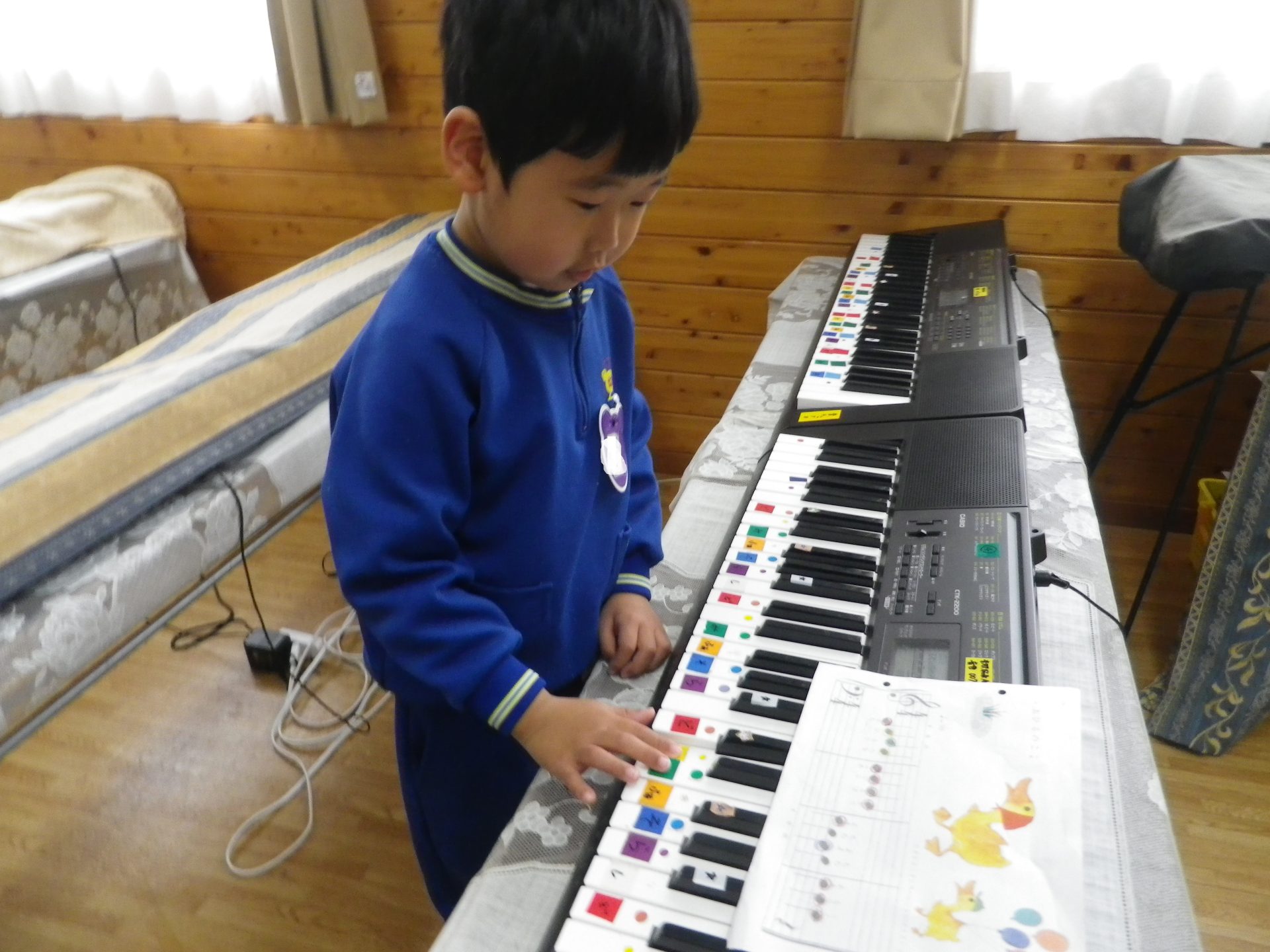 右手と左手を交互に使って、キーボード奏もがんばっていますよ。