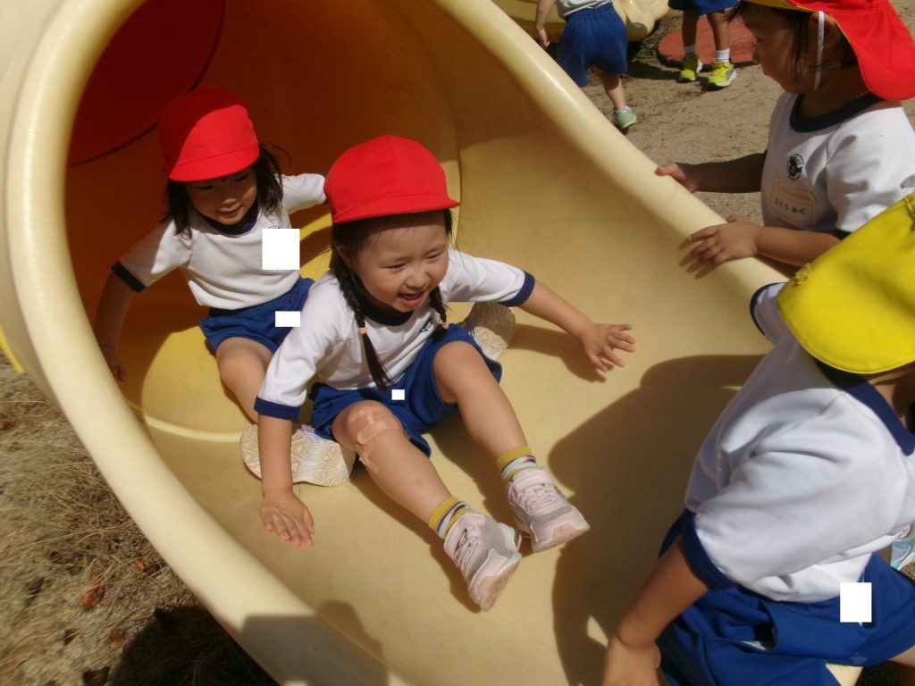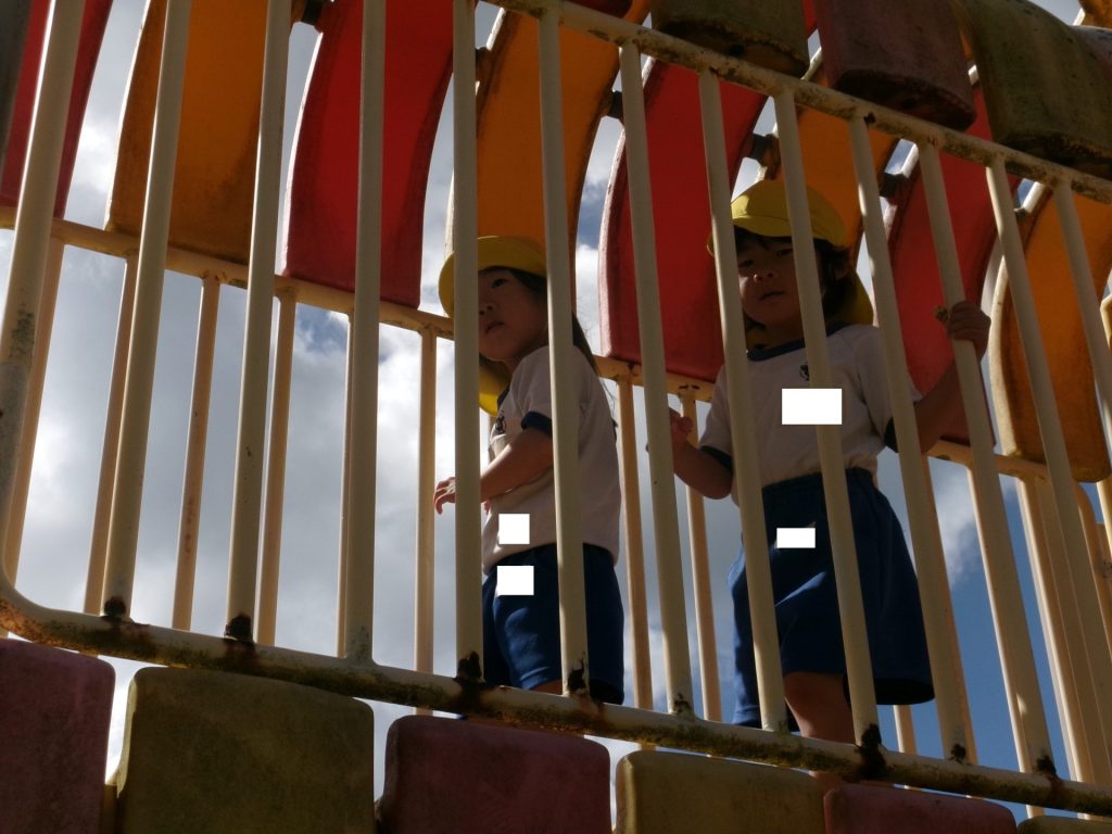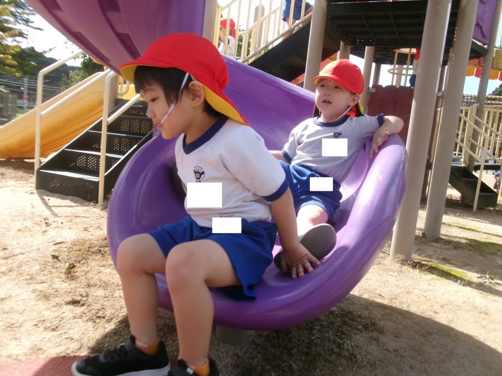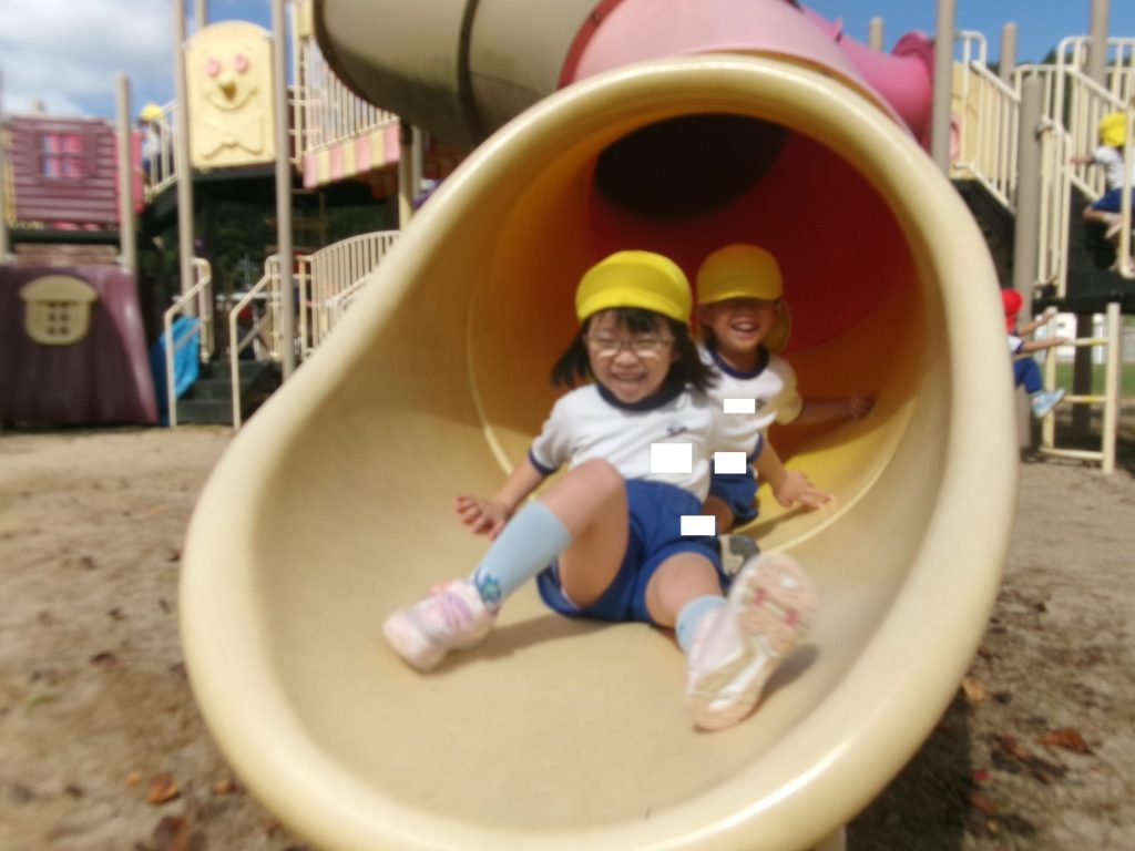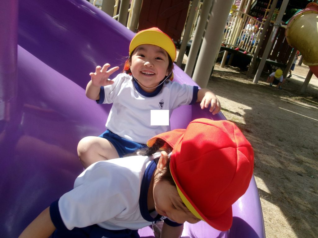 大きな遊具があり、友達と一緒にたくさん体を動かして遊びました。