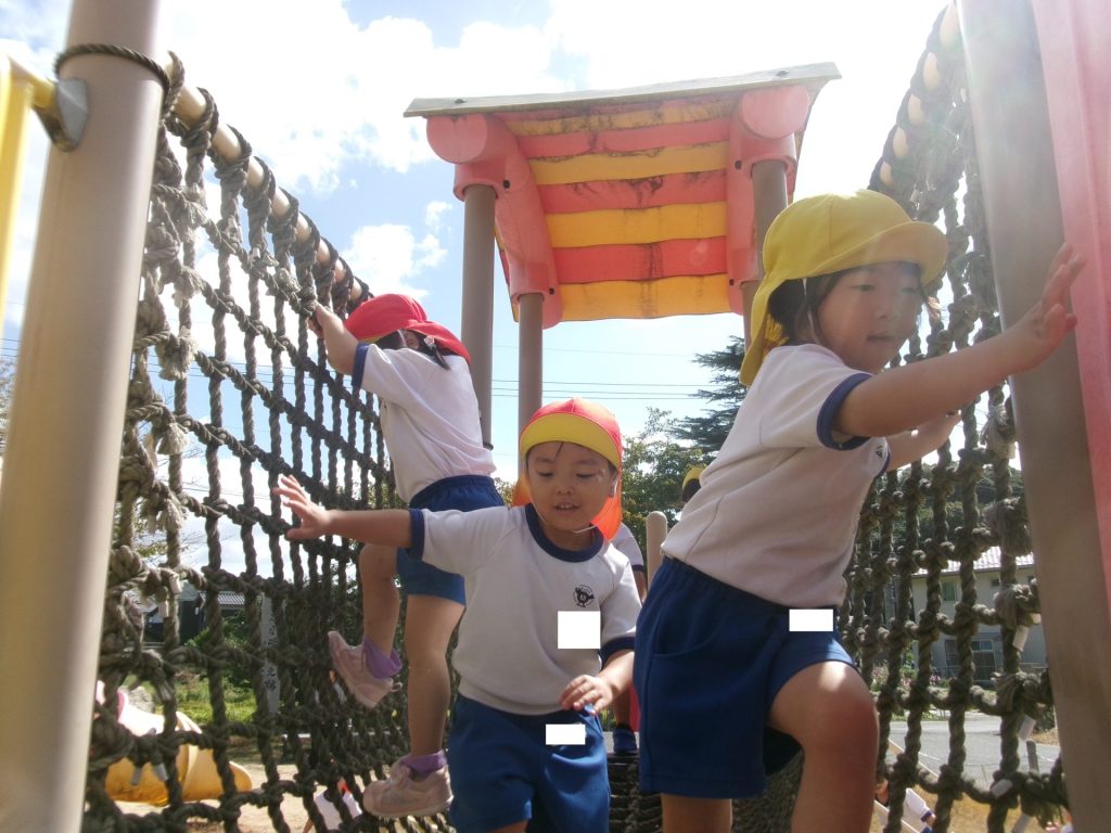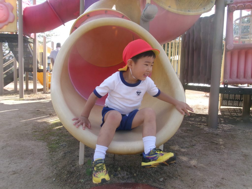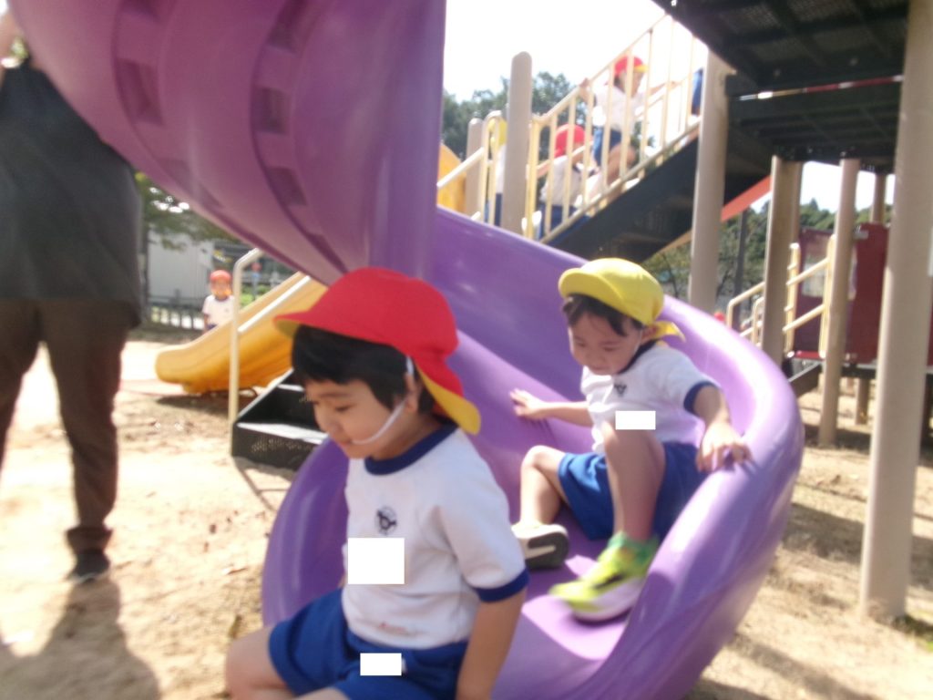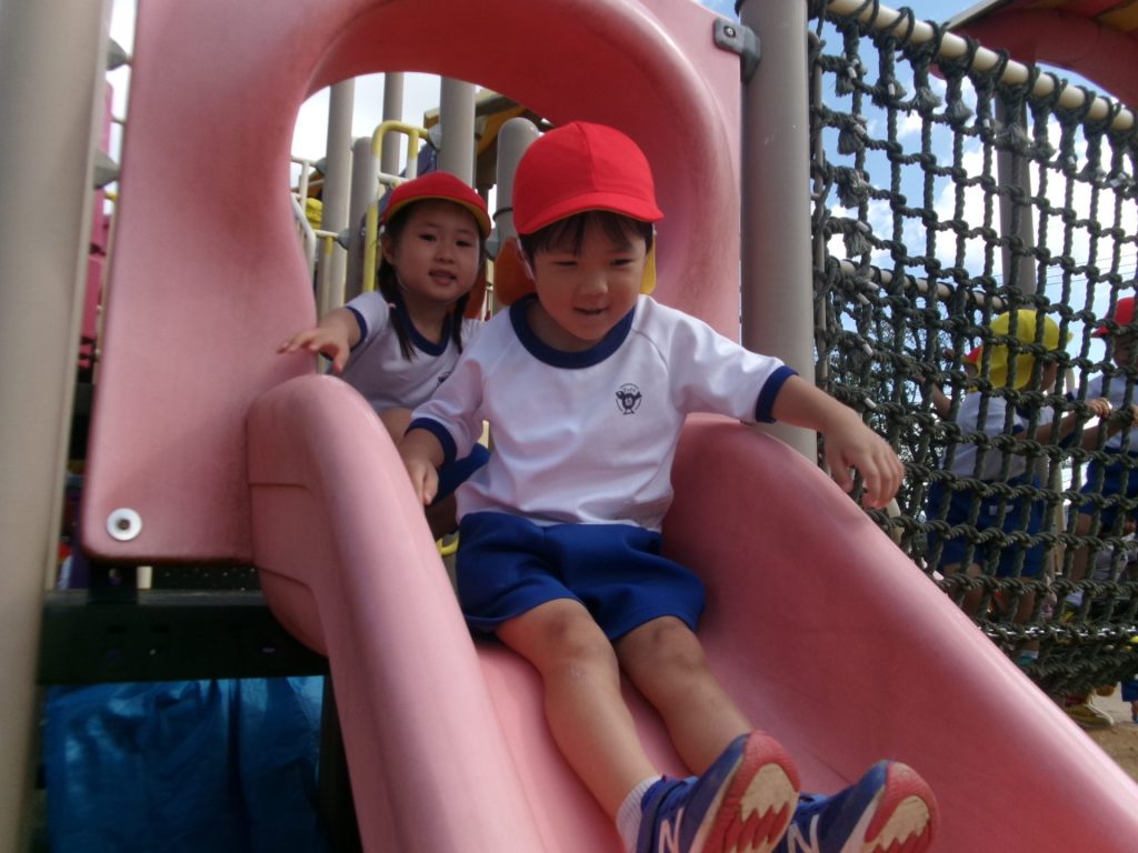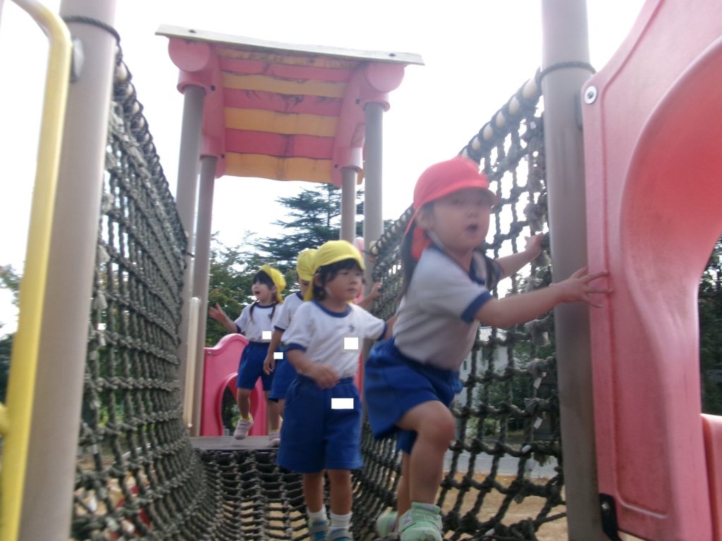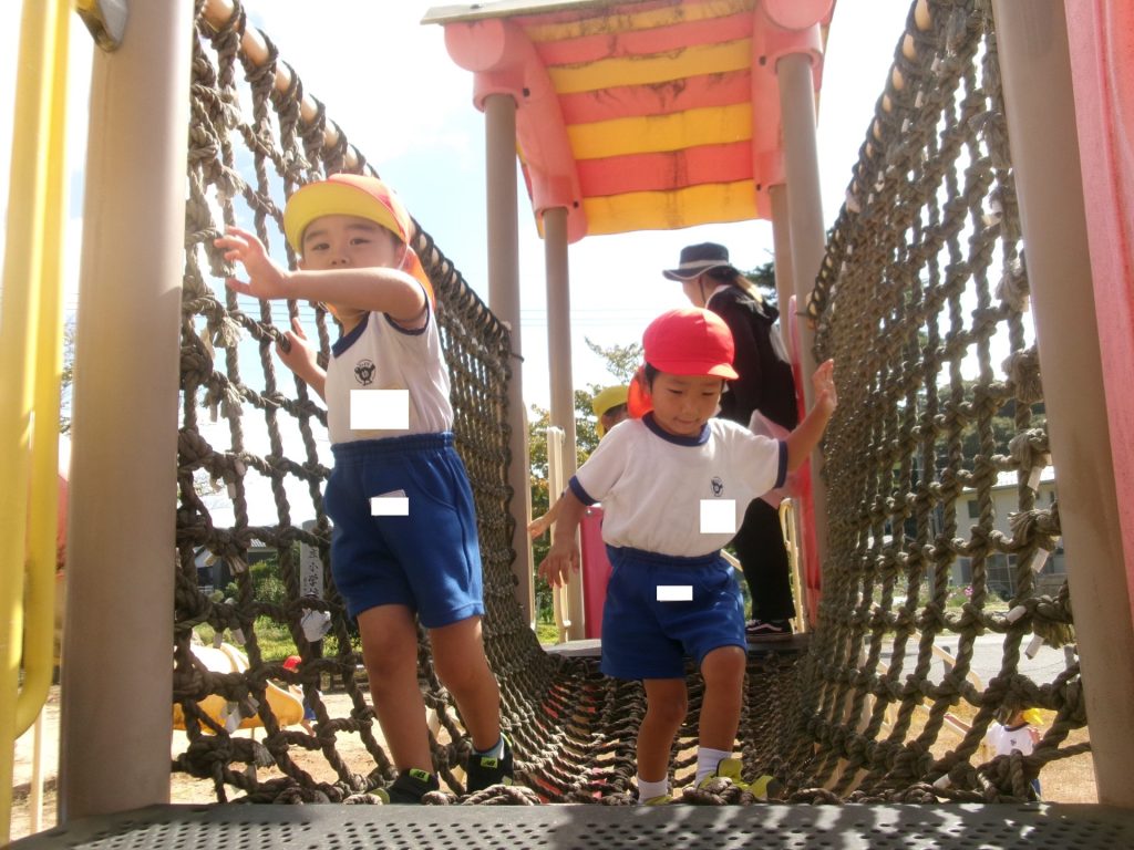 大きな遊具があり、友達と一緒にたくさん体を動かして遊びました。