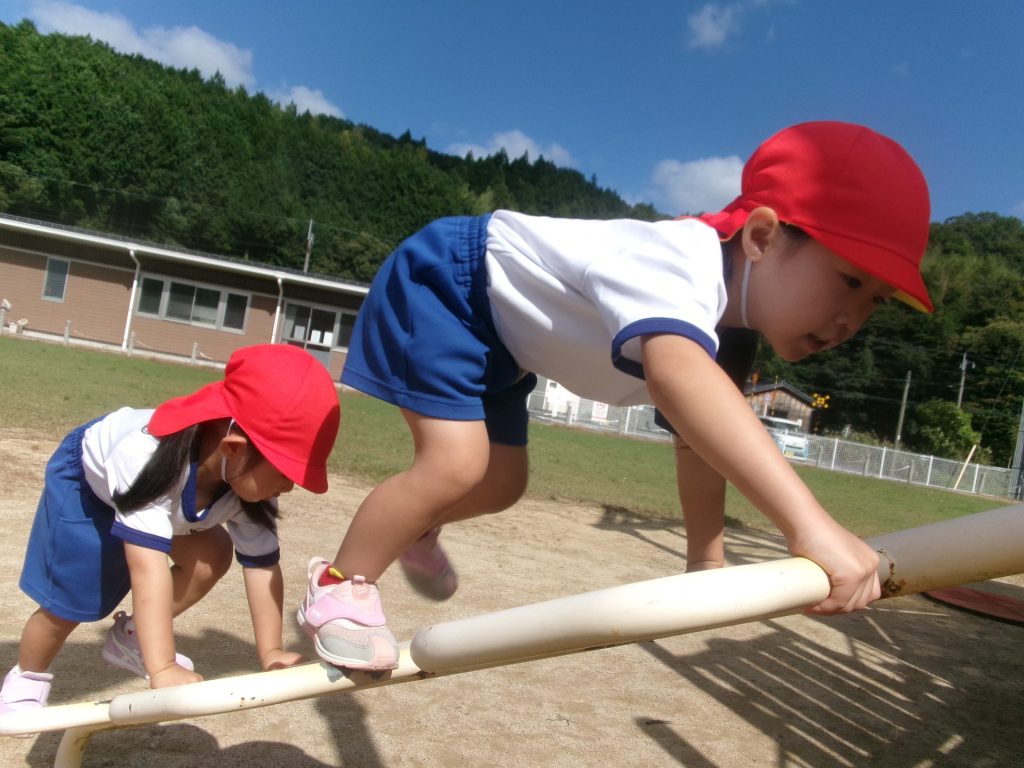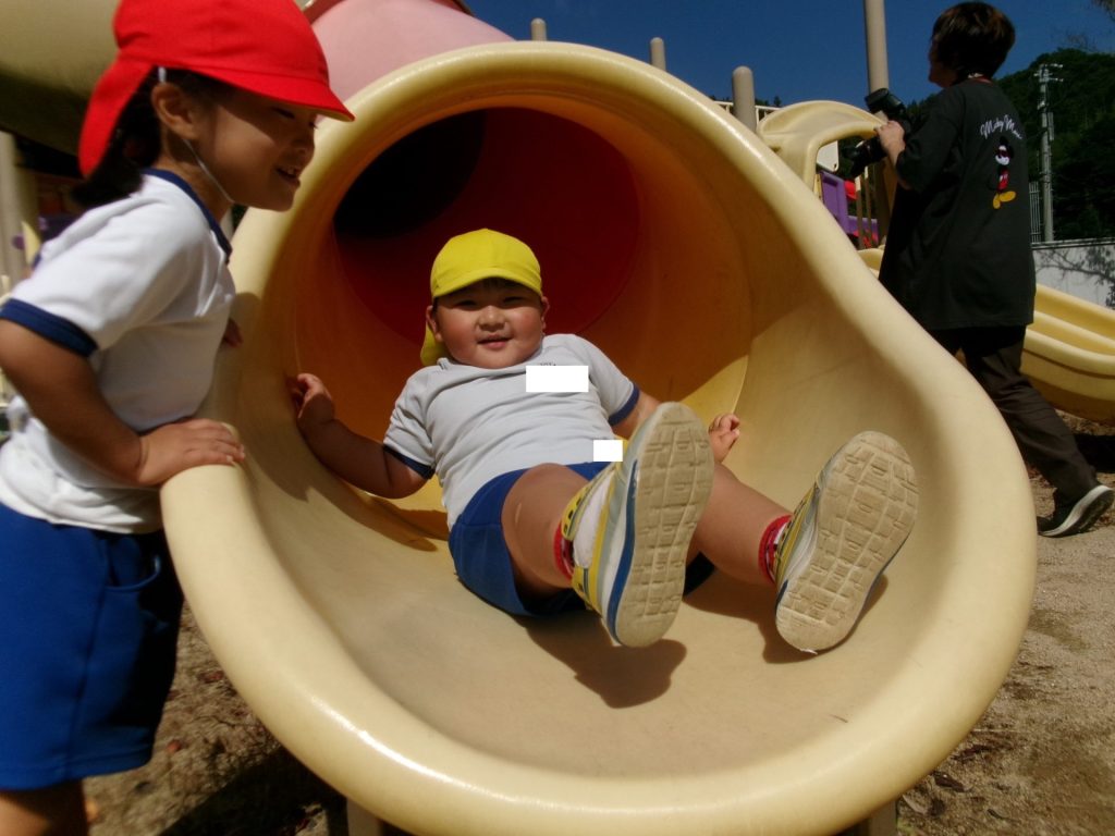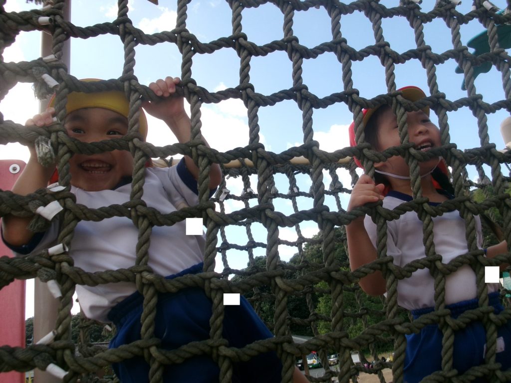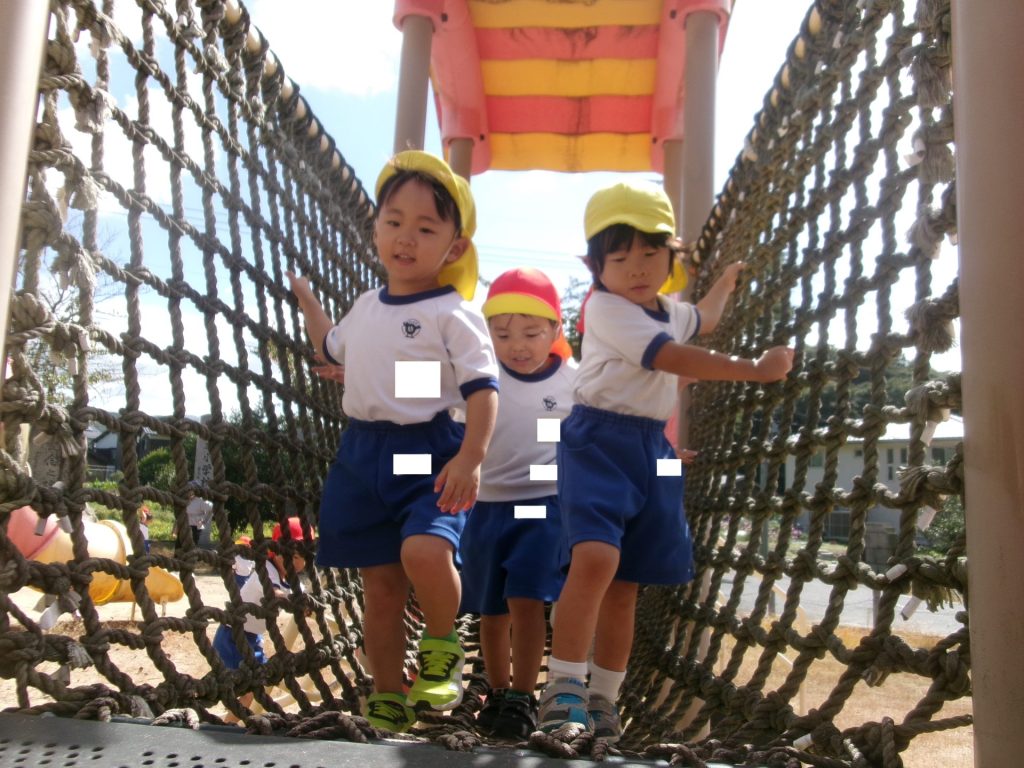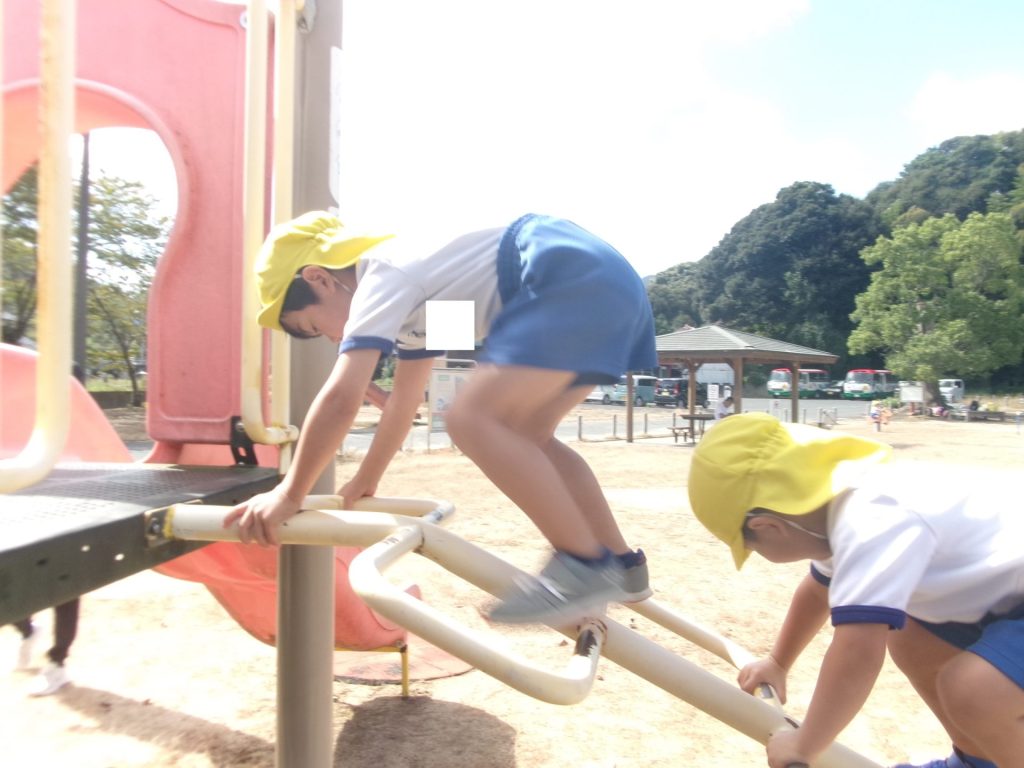 大きな遊具があり、友達と一緒にたくさん体を動かして遊びました。