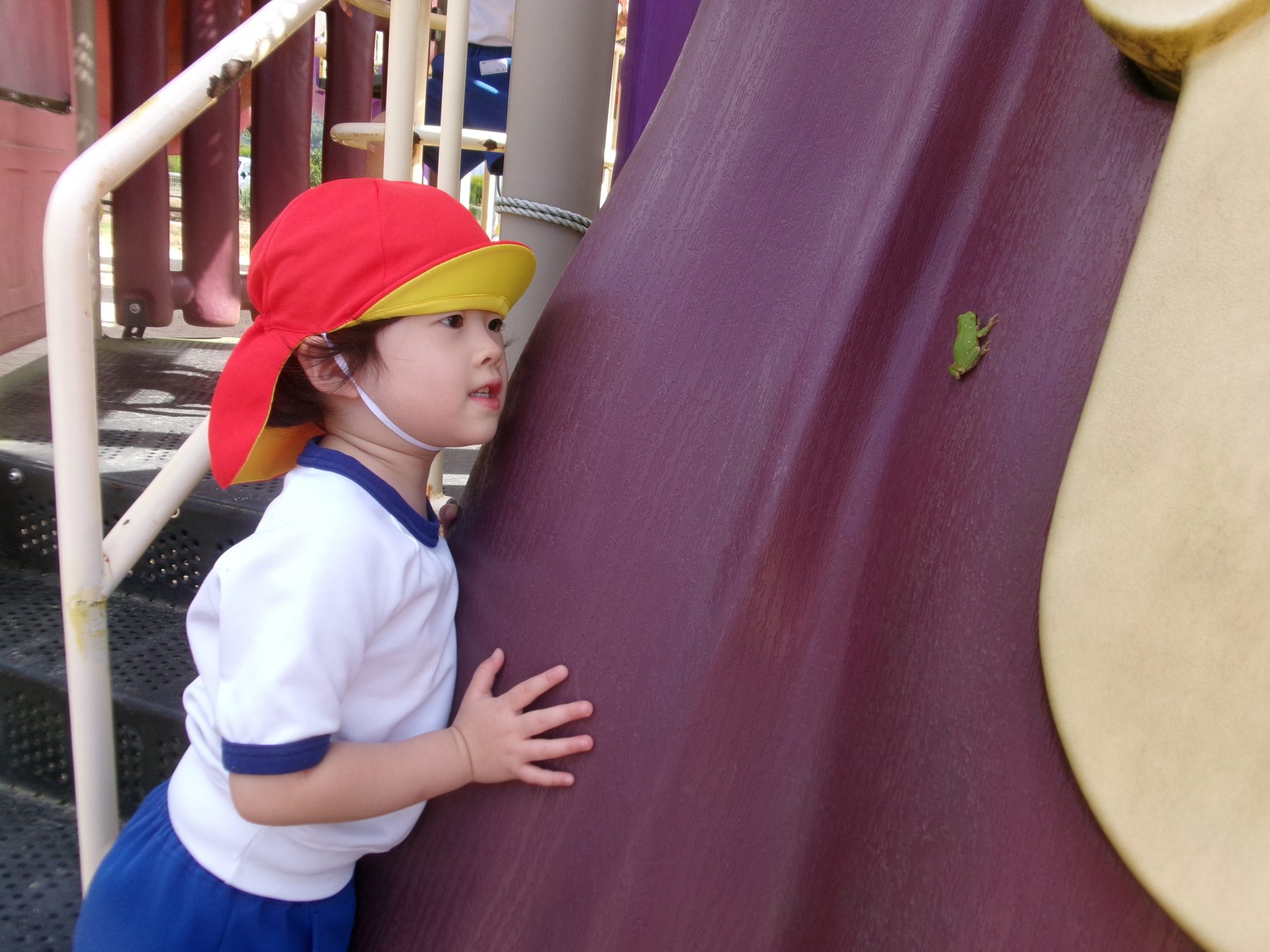 大きな遊具があり、友達と一緒にたくさん体を動かして遊びました。