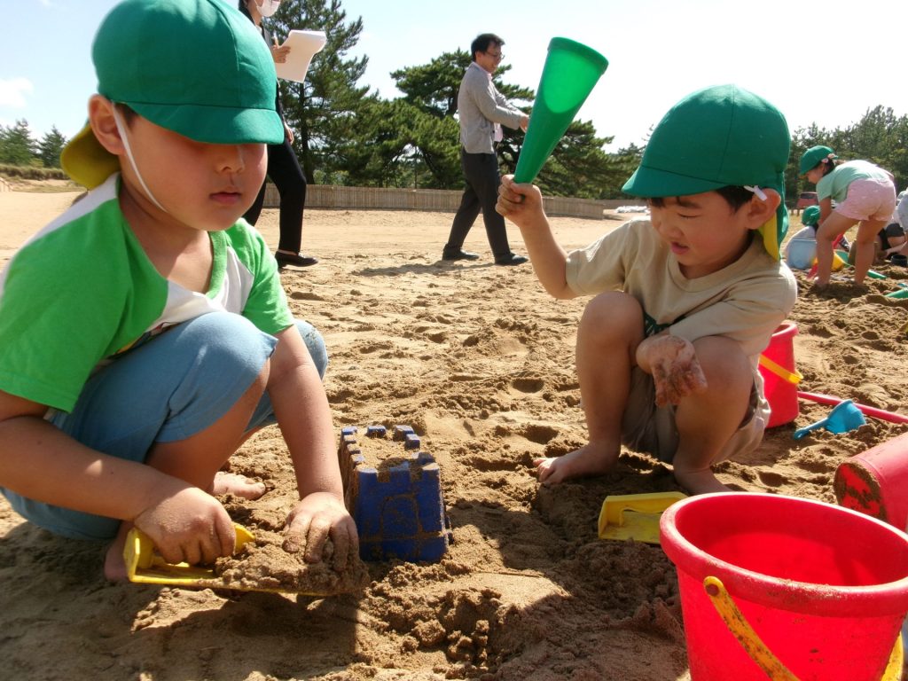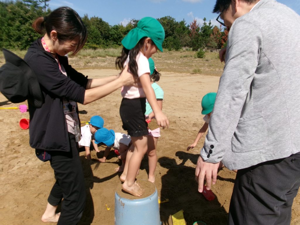 今日は園外保育で「すなばようちえん」の体験を行いました!いろんな用具を使って砂遊びをたっぷり楽しみました♪