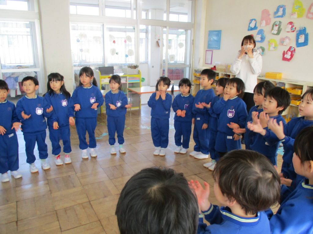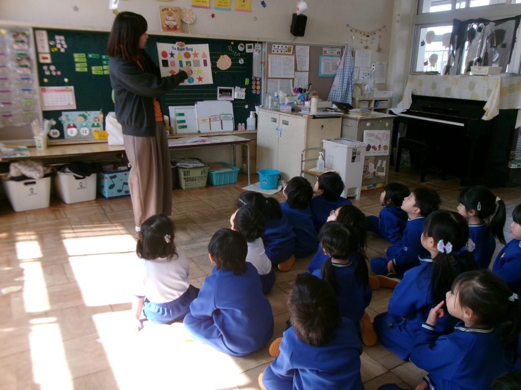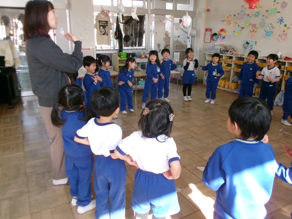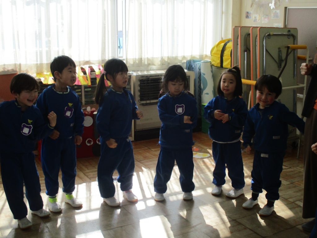 年中組最後の英語教室がありました。楽しい音楽に合わせてノリノリで歌いながら楽しく英語に触れました♪
