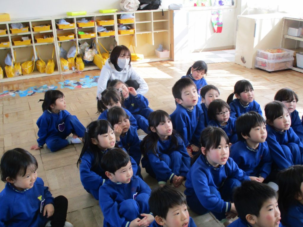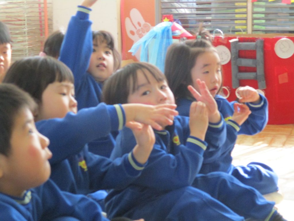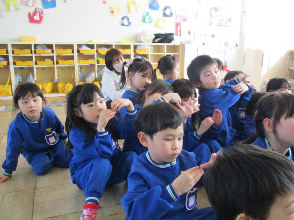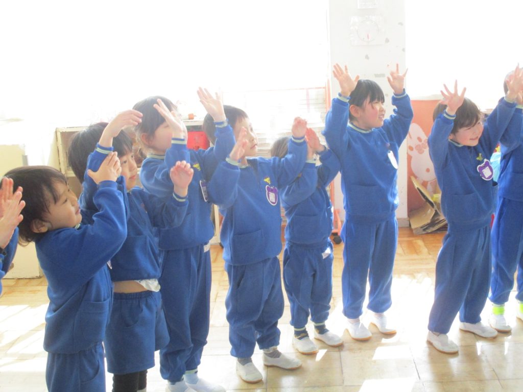 年中組最後の英語教室がありました。楽しい音楽に合わせてノリノリで歌いながら楽しく英語に触れました♪