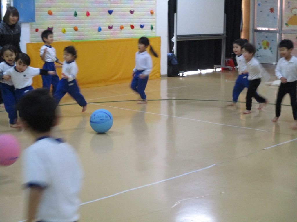 今日は、体育教室がありました!子ども達の大好きなドッジボール(#^^#)ルールを守りながら友達と一緒に楽しみました。まずは、先生がボールを転がします!