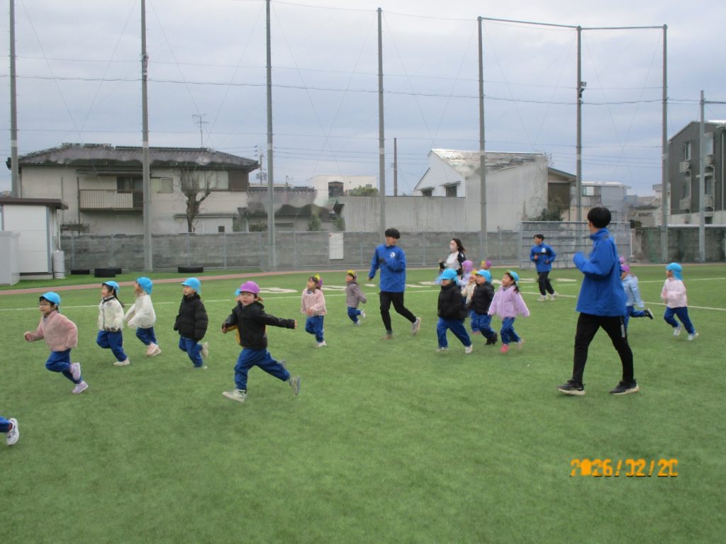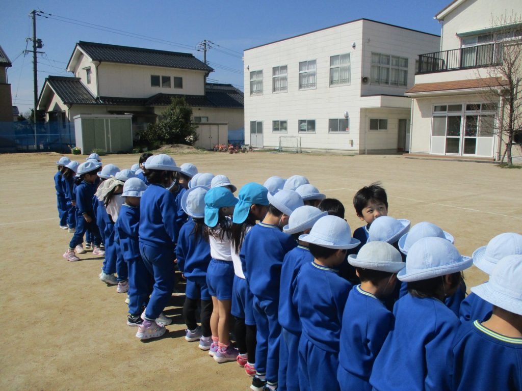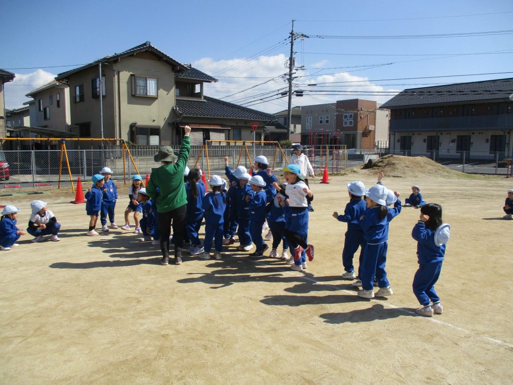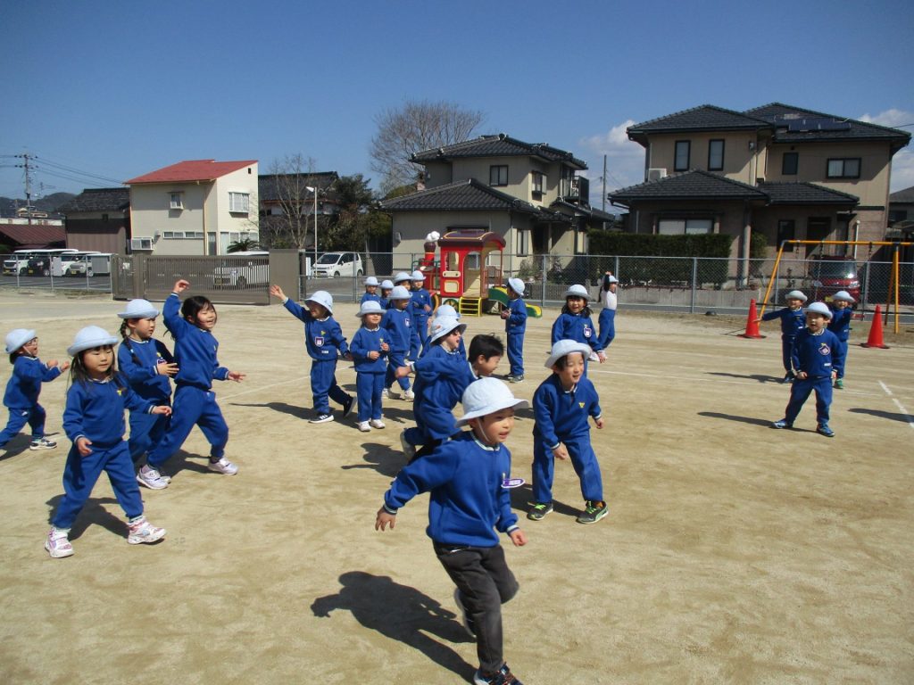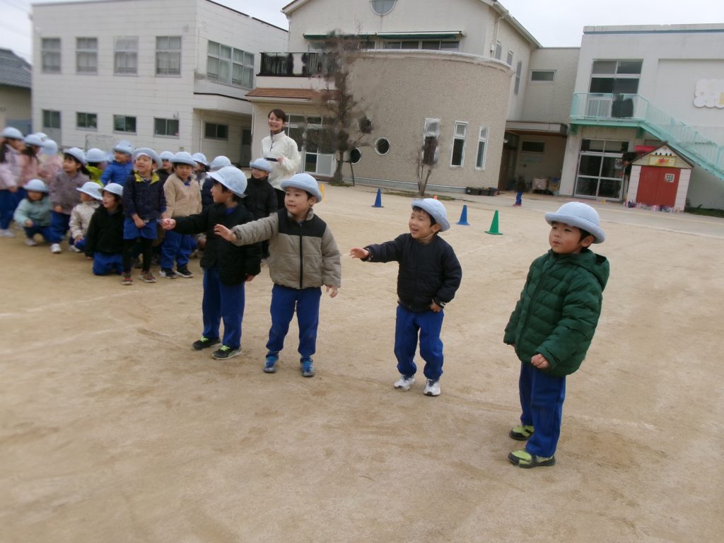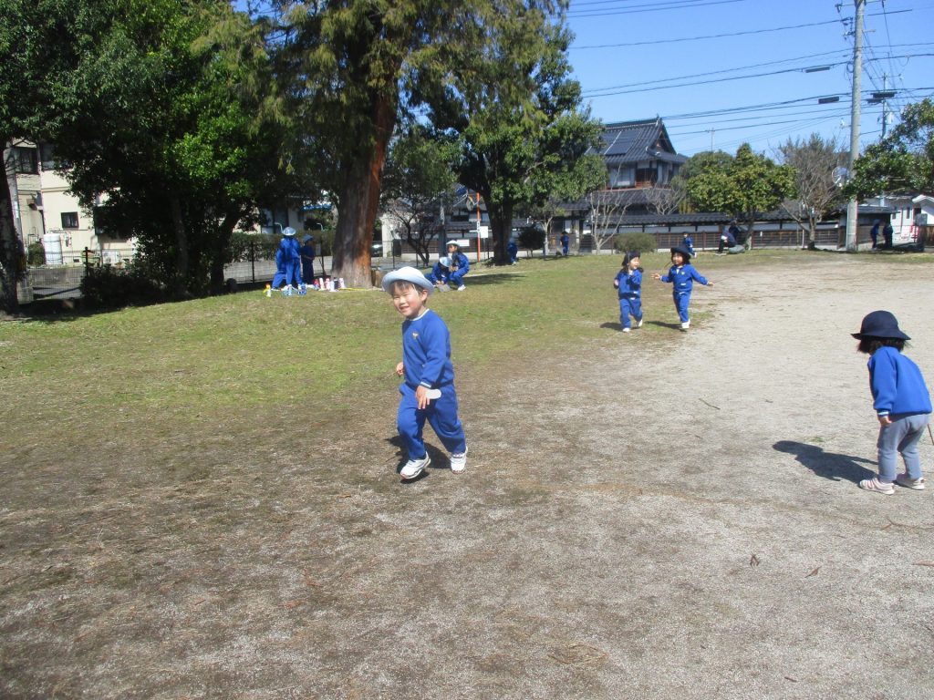 3学期に入り、マーチングの練習を始めました。年長組のお兄さんお姉さんの姿を見て憧れを抱いていた子ども達は、「マーチングの練習しようか!」と言うと「よっしゃー!」と喜んでいます😊まずは、基本動作から始めました。気を付け・休め、できるかな?笛の音に合わせて「や!」と元気な掛け声が響きます。