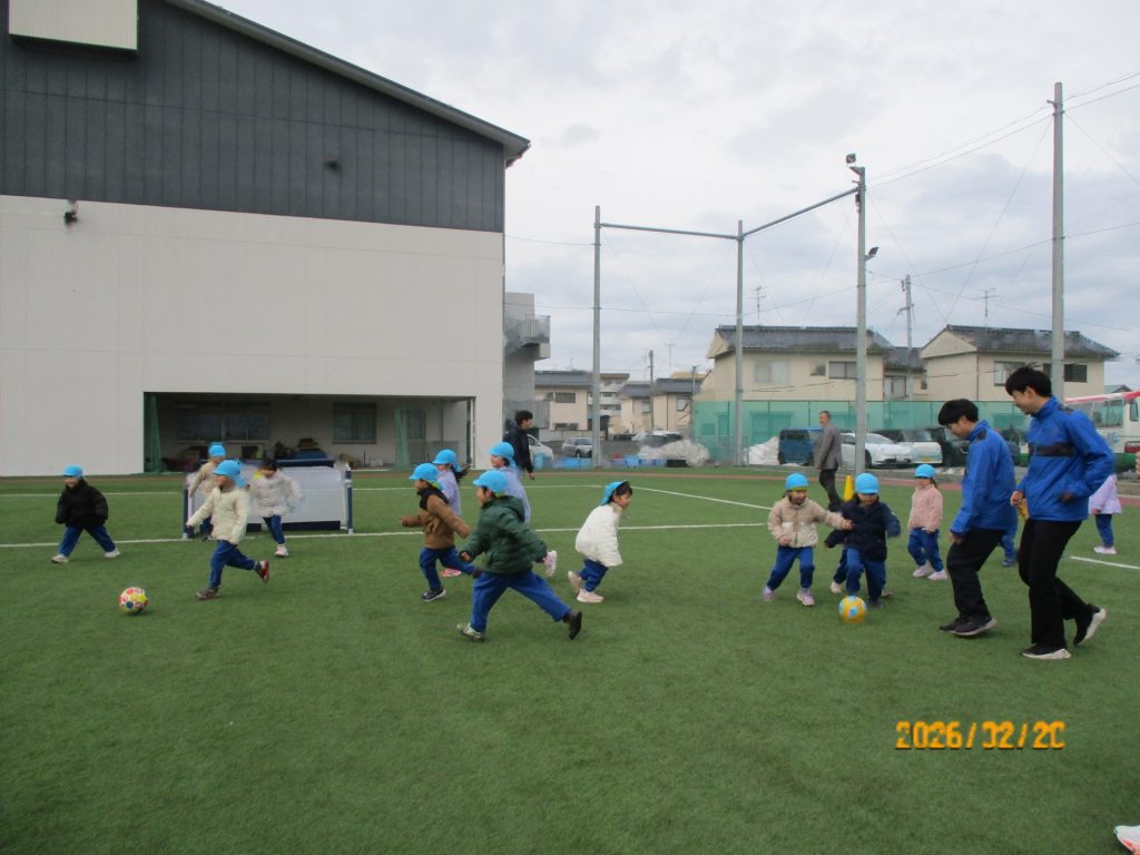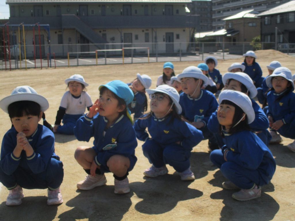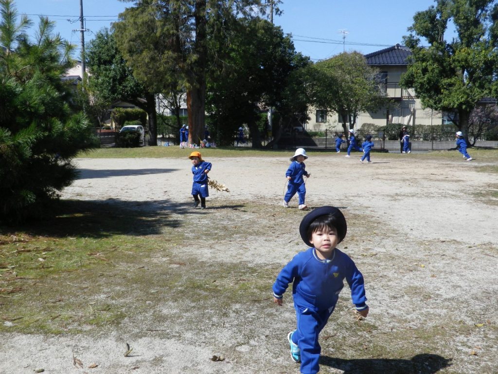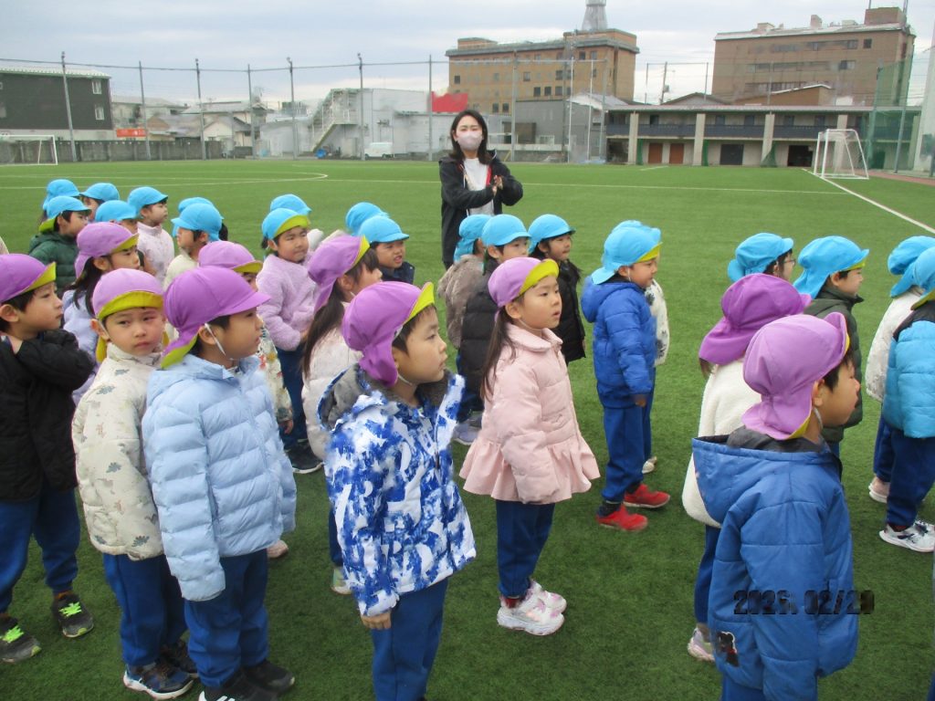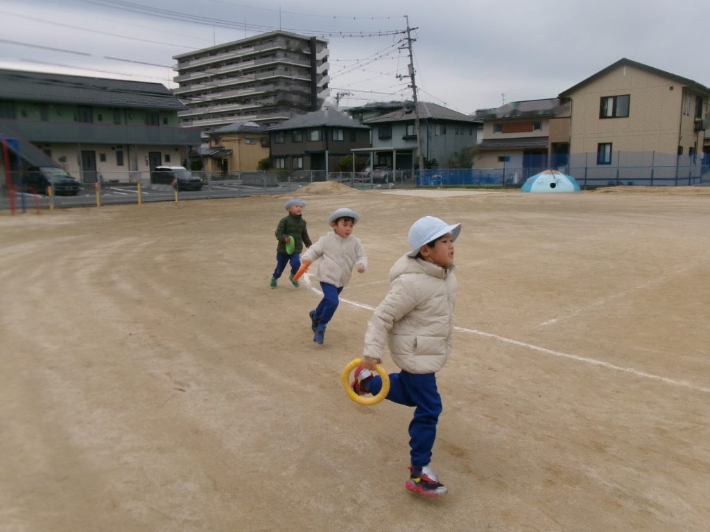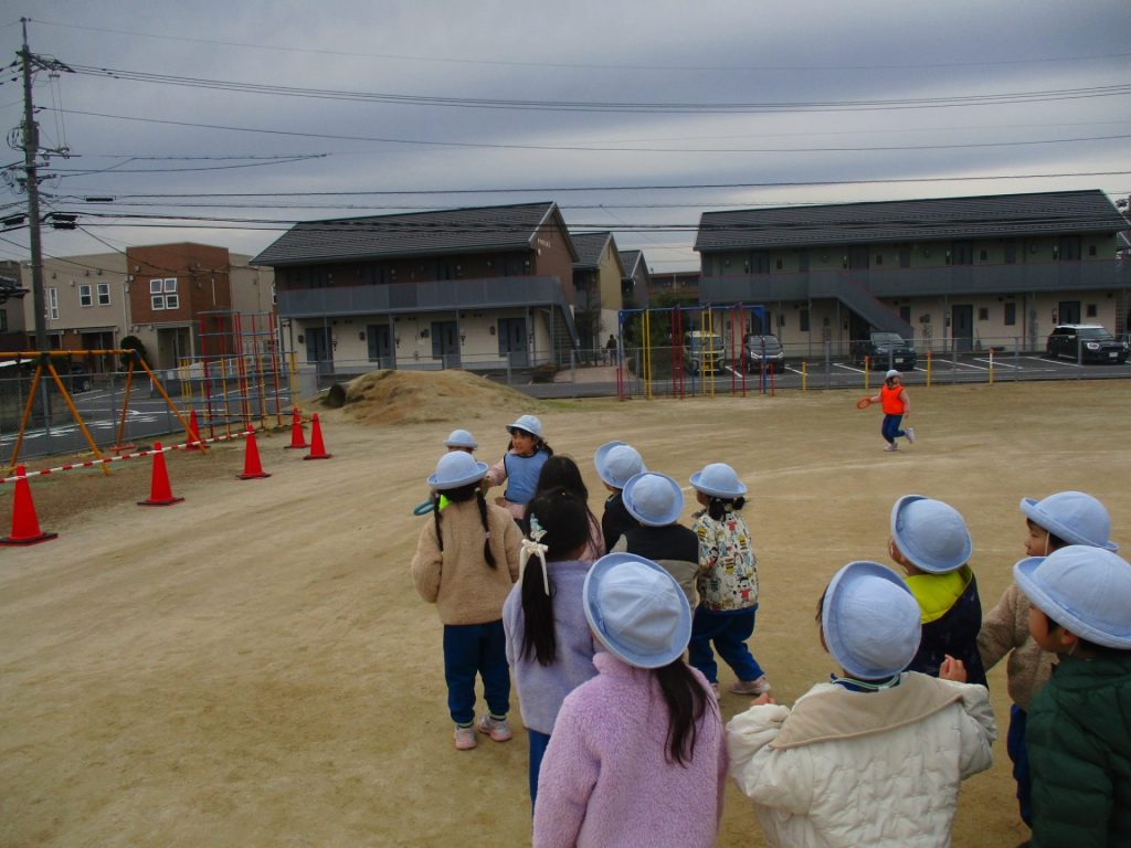 3学期に入り、マーチングの練習を始めました。年長組のお兄さんお姉さんの姿を見て憧れを抱いていた子ども達は、「マーチングの練習しようか!」と言うと「よっしゃー!」と喜んでいます😊まずは、基本動作から始めました。気を付け・休め、できるかな?笛の音に合わせて「や!」と元気な掛け声が響きます。