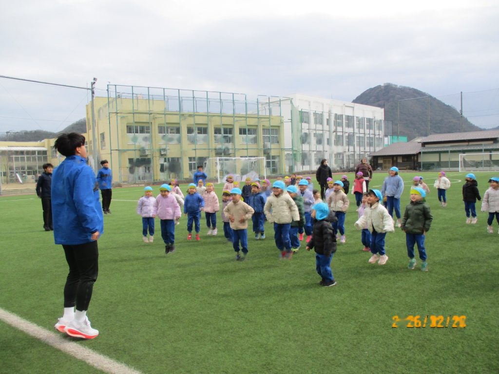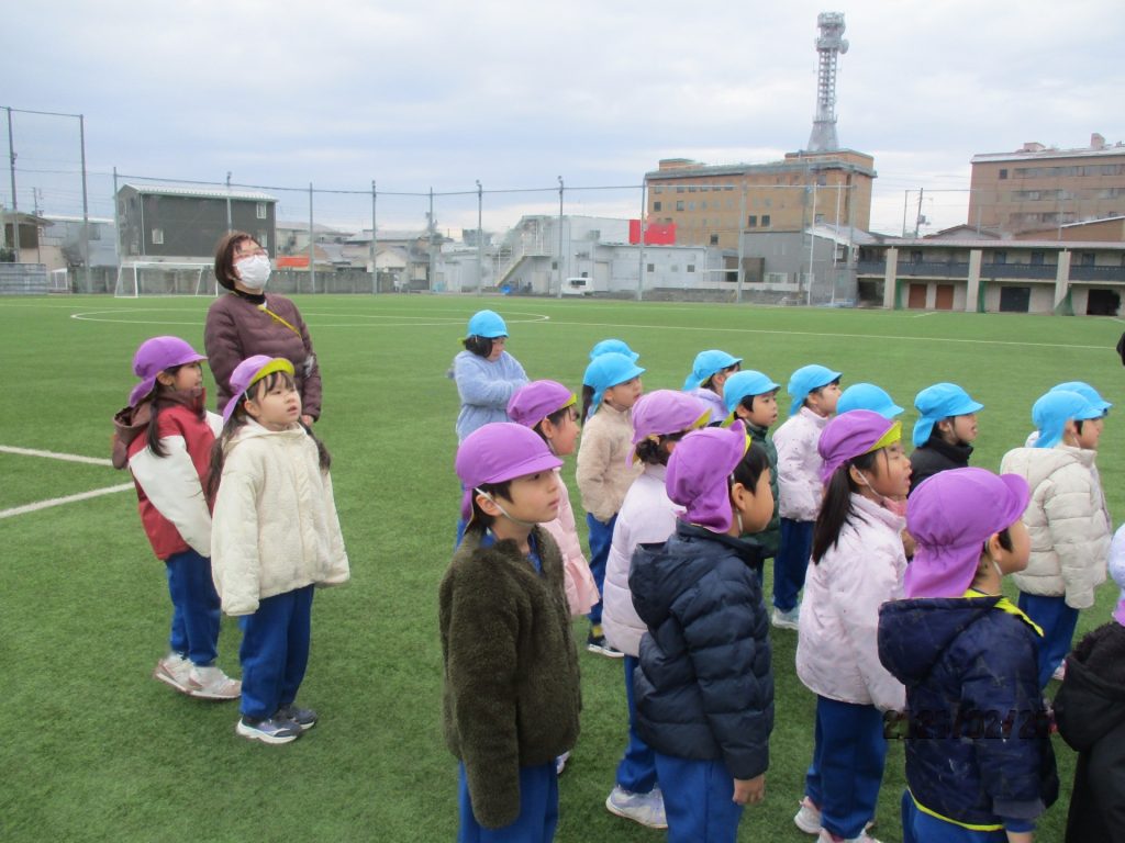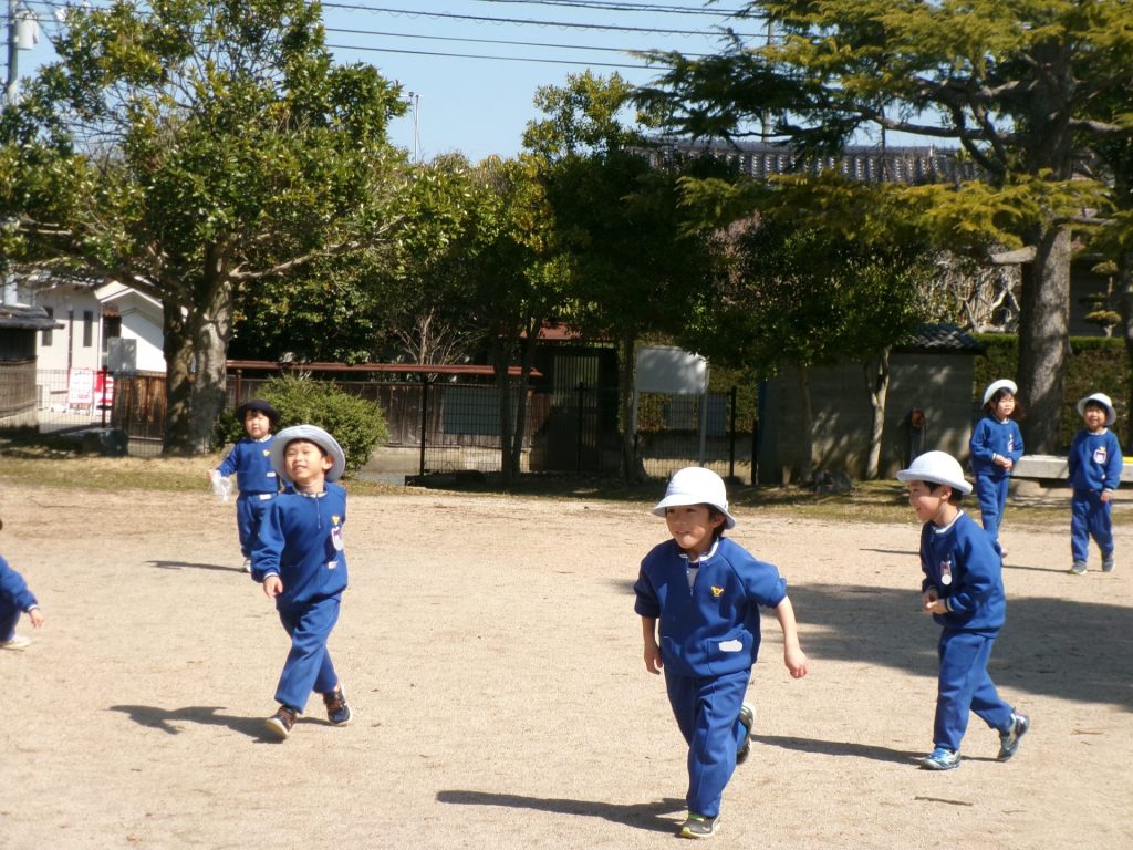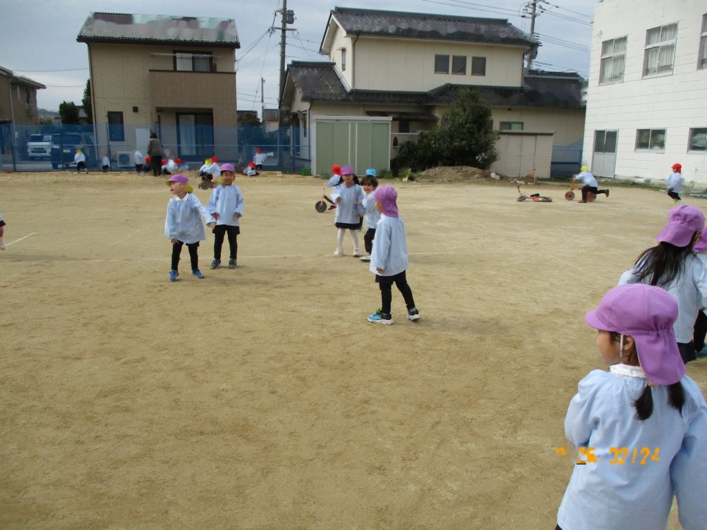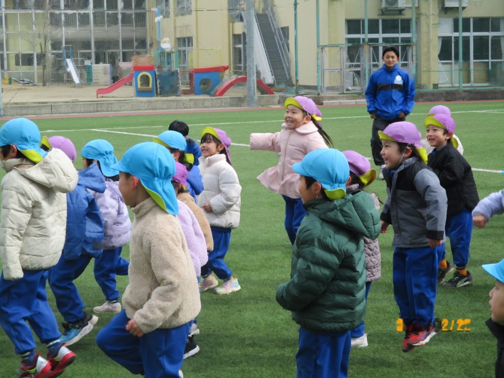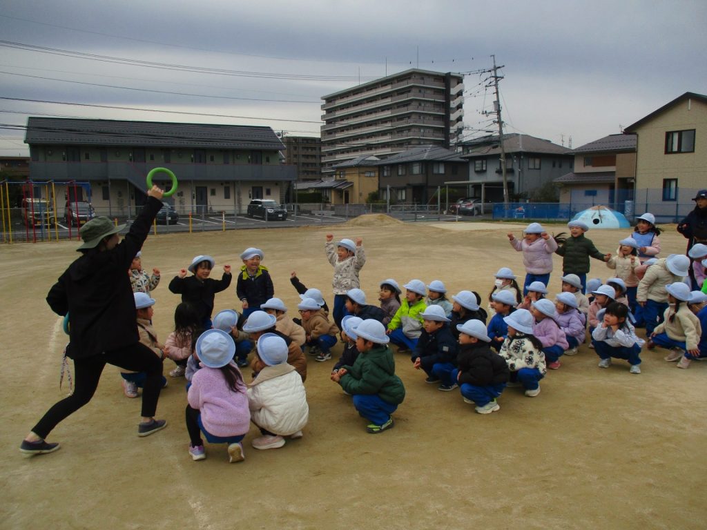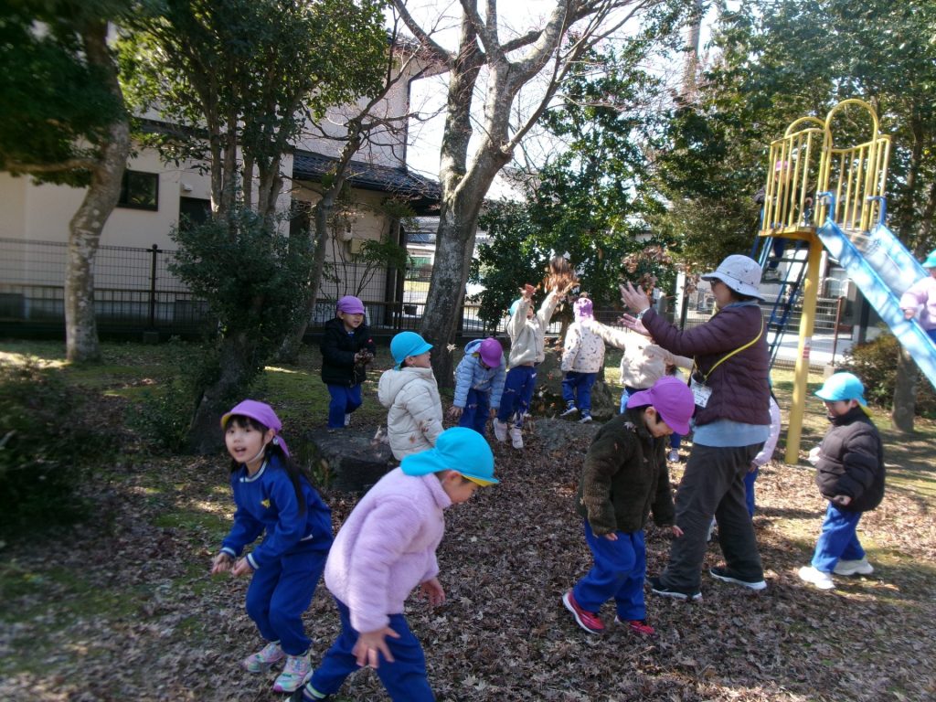 3学期に入り、マーチングの練習を始めました。年長組のお兄さんお姉さんの姿を見て憧れを抱いていた子ども達は、「マーチングの練習しようか!」と言うと「よっしゃー!」と喜んでいます😊まずは、基本動作から始めました。気を付け・休め、できるかな?笛の音に合わせて「や!」と元気な掛け声が響きます。