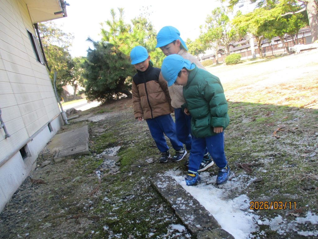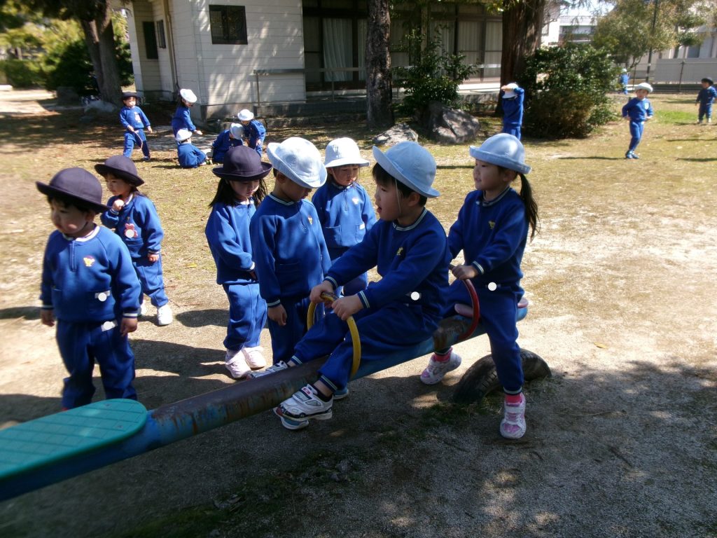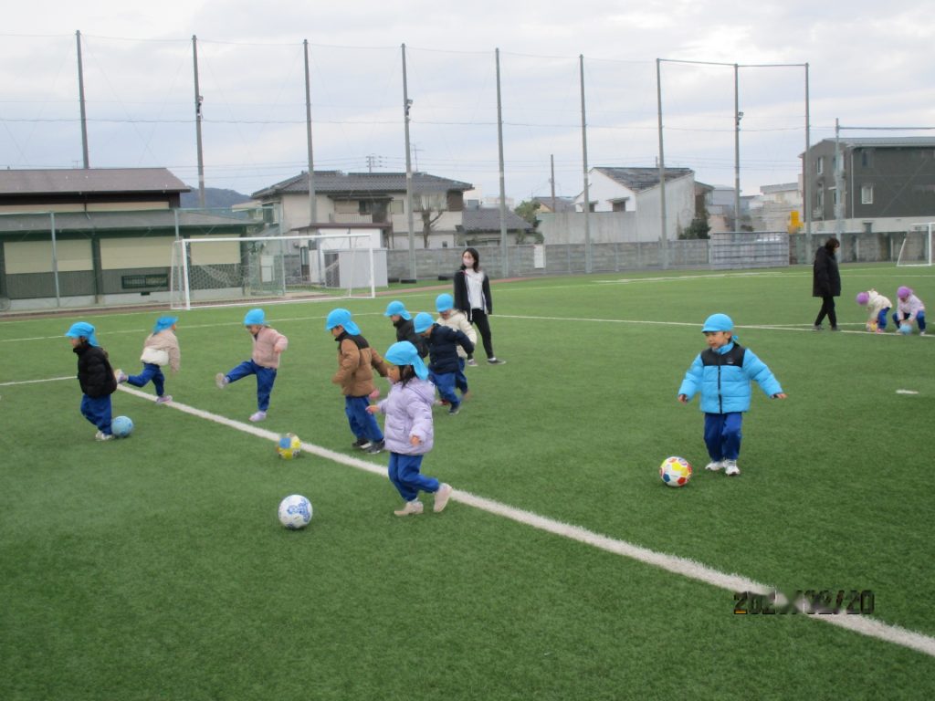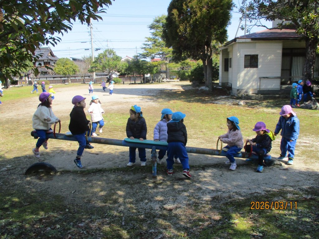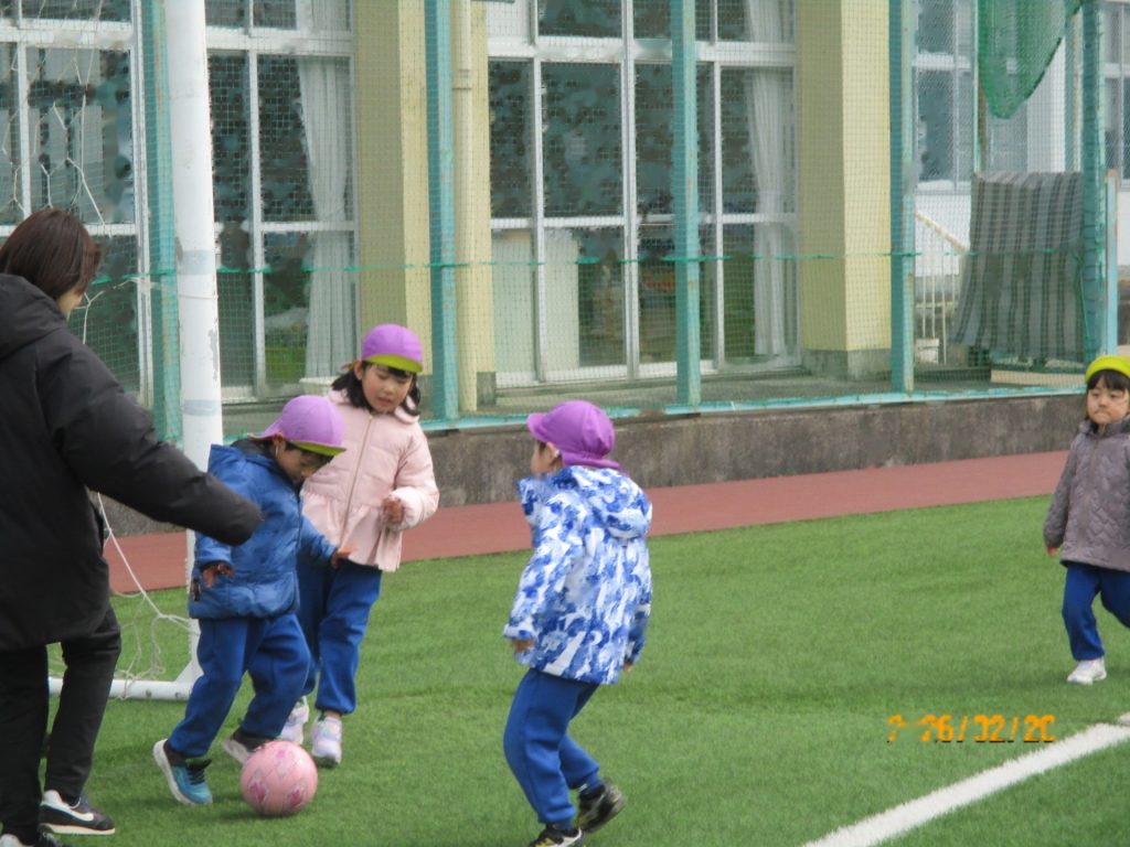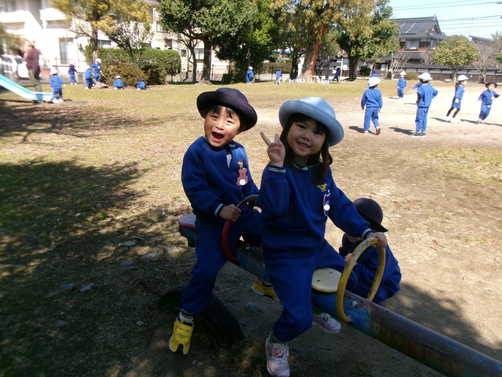 3学期に入り、マーチングの練習を始めました。年長組のお兄さんお姉さんの姿を見て憧れを抱いていた子ども達は、「マーチングの練習しようか!」と言うと「よっしゃー!」と喜んでいます😊まずは、基本動作から始めました。気を付け・休め、できるかな?笛の音に合わせて「や!」と元気な掛け声が響きます。
