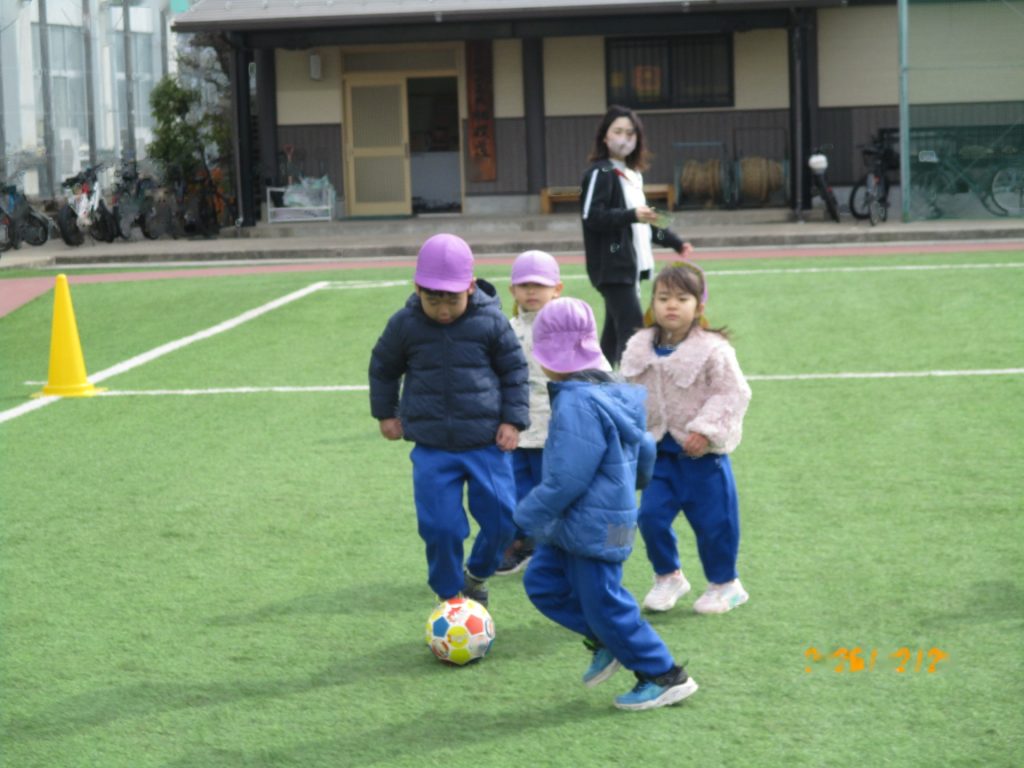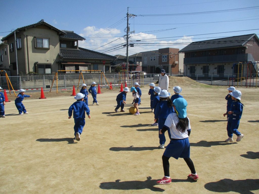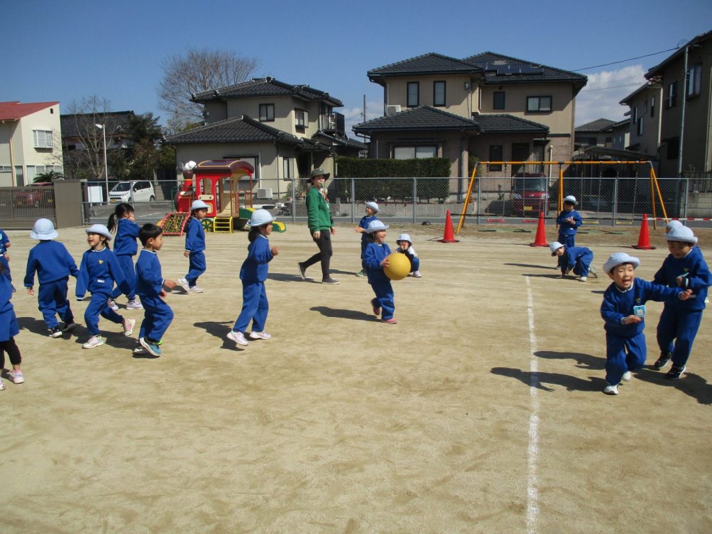 少しずつ暖かい日が増えてきました。天気のいい日は園庭に出掛けて元気に遊んでいます!今回はドッヂボールを楽しんでいる様子をお届けします!