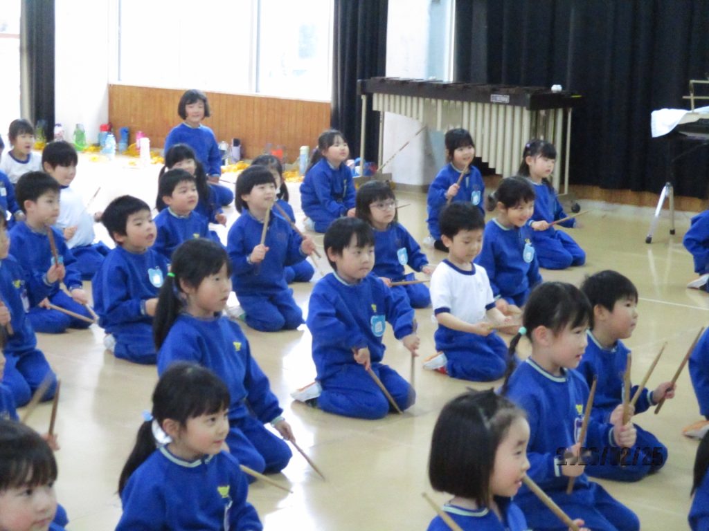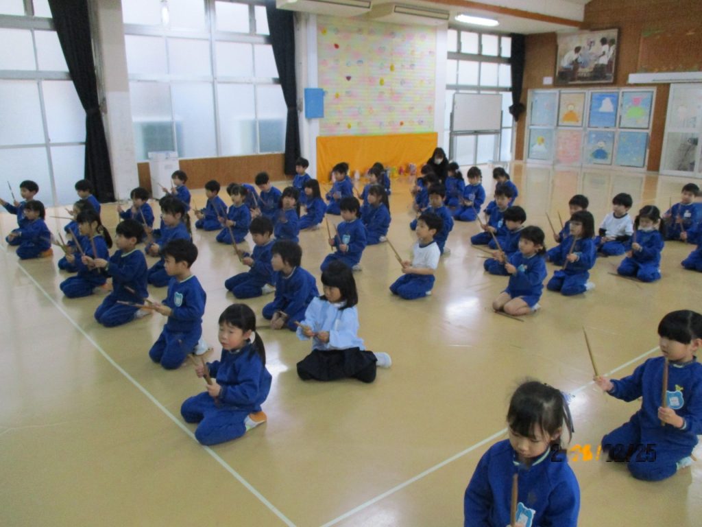 最後にバチ遊びをしました。実際の物を持つと大喜びの様子でした😊