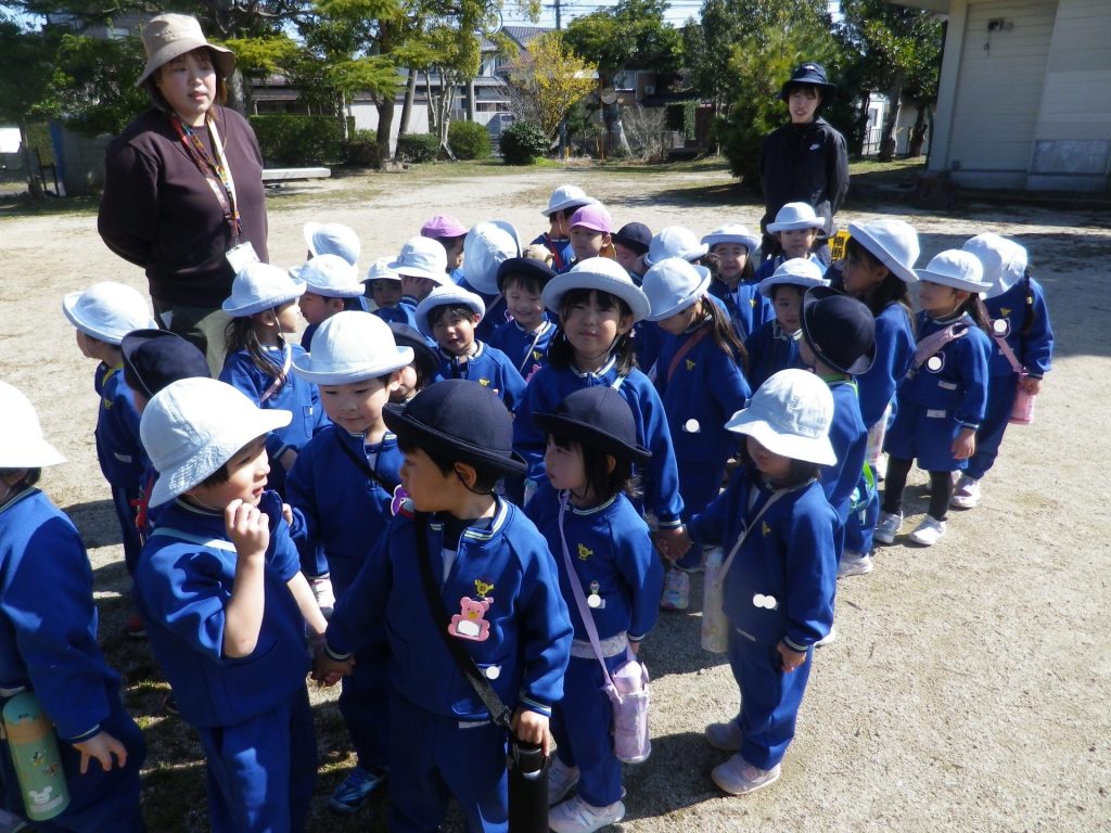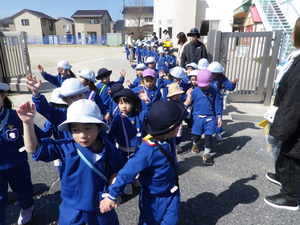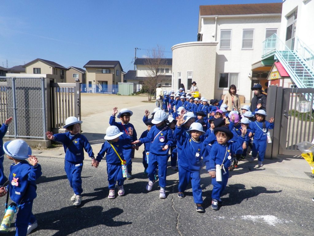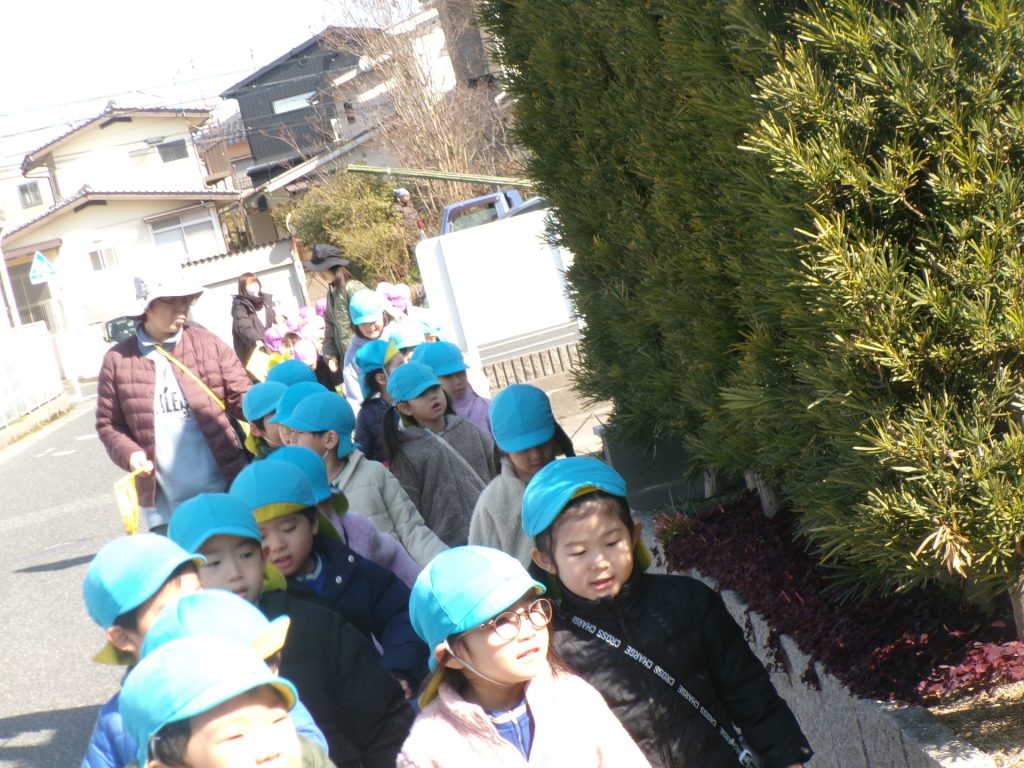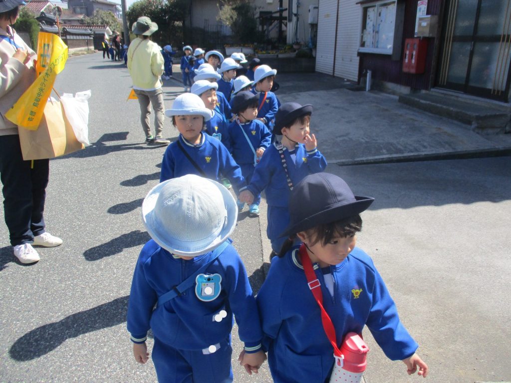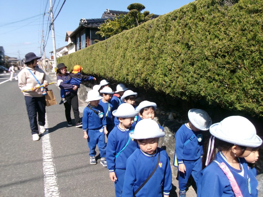 年中さんと2歳さんで近くの公園まで歩いて行きました。お兄さん、お姉さんが優しく手を繋いでくれたり、声をかけてくれたりして、嬉しそうに歩く2歳さんでした♪