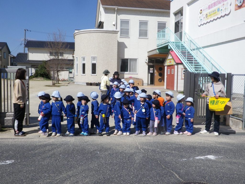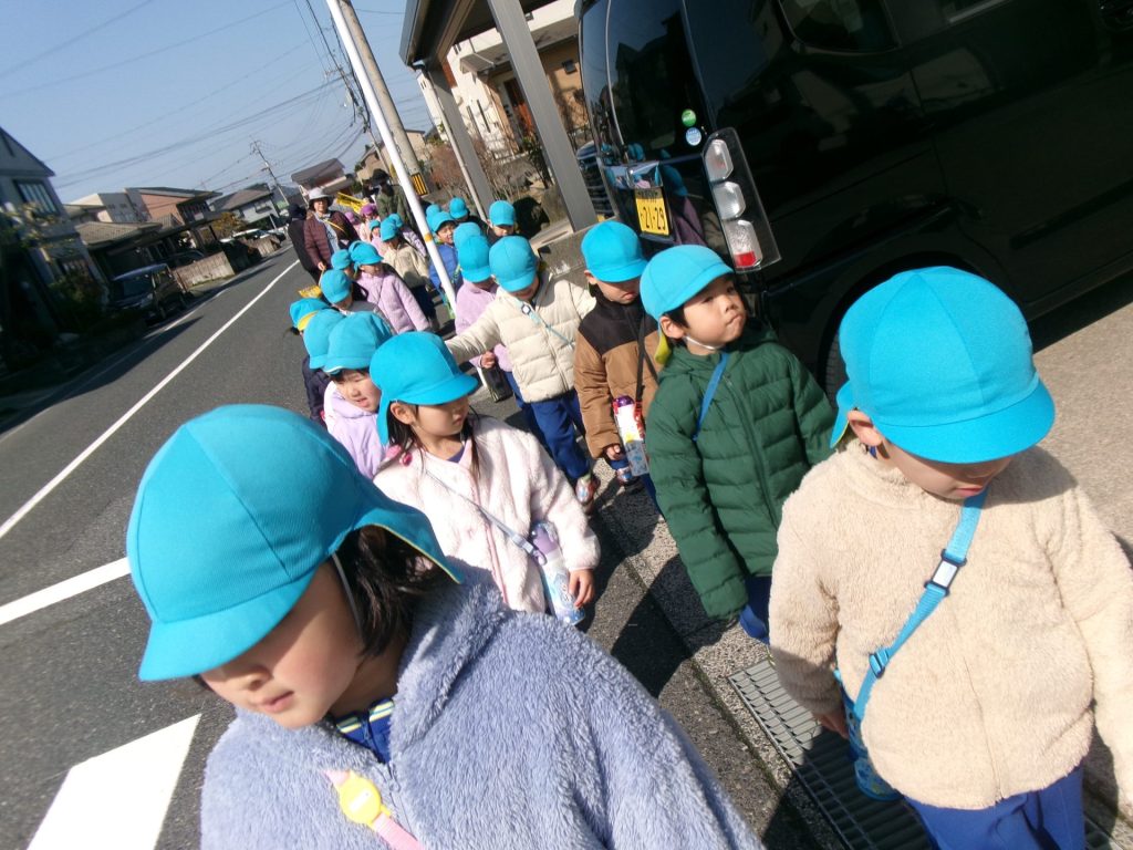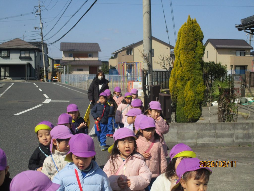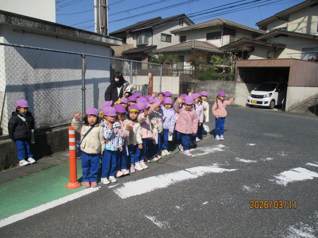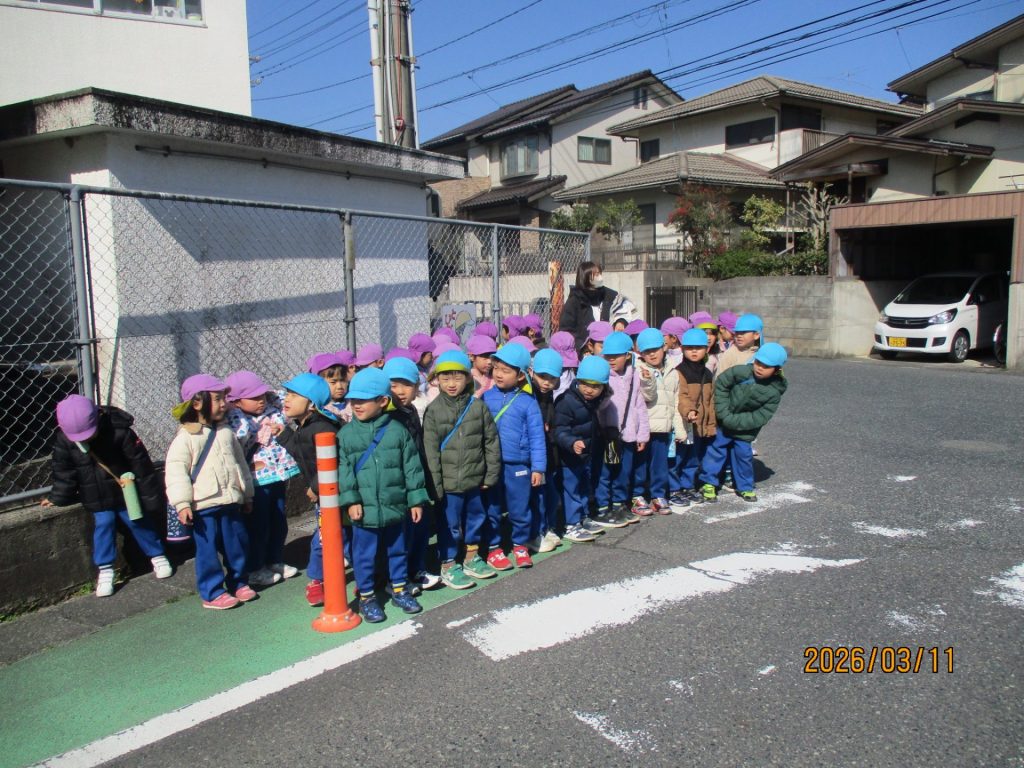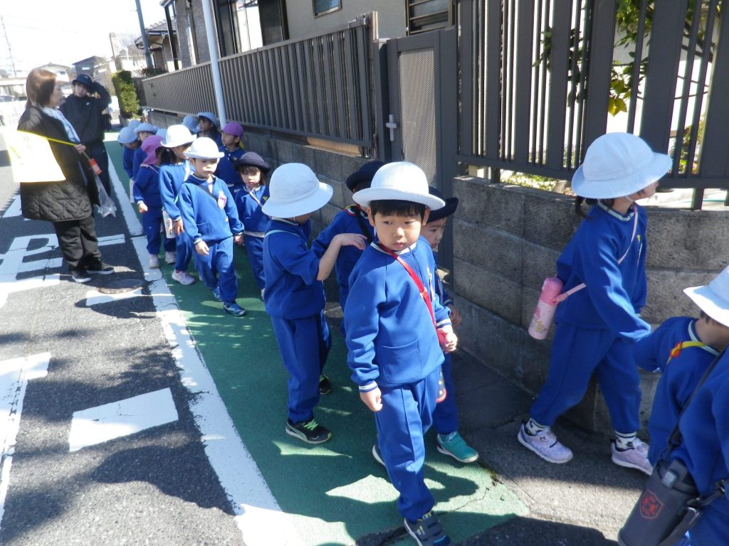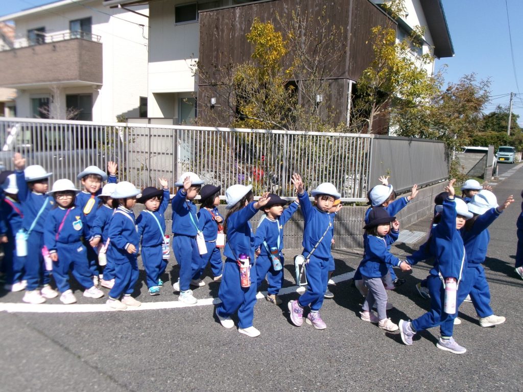 道路の端を歩くことや、横断歩道では車が来ていないか右と左を確認してから手をあげて渡ることなど、交通ルールを子ども達と確認してから出かけました。