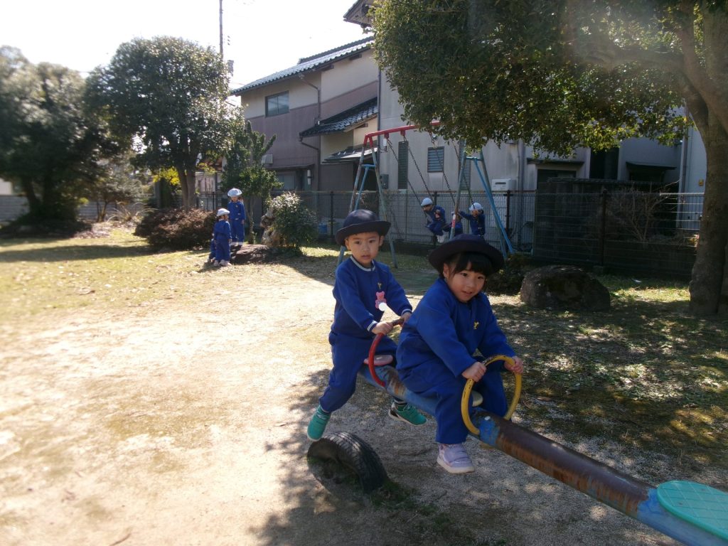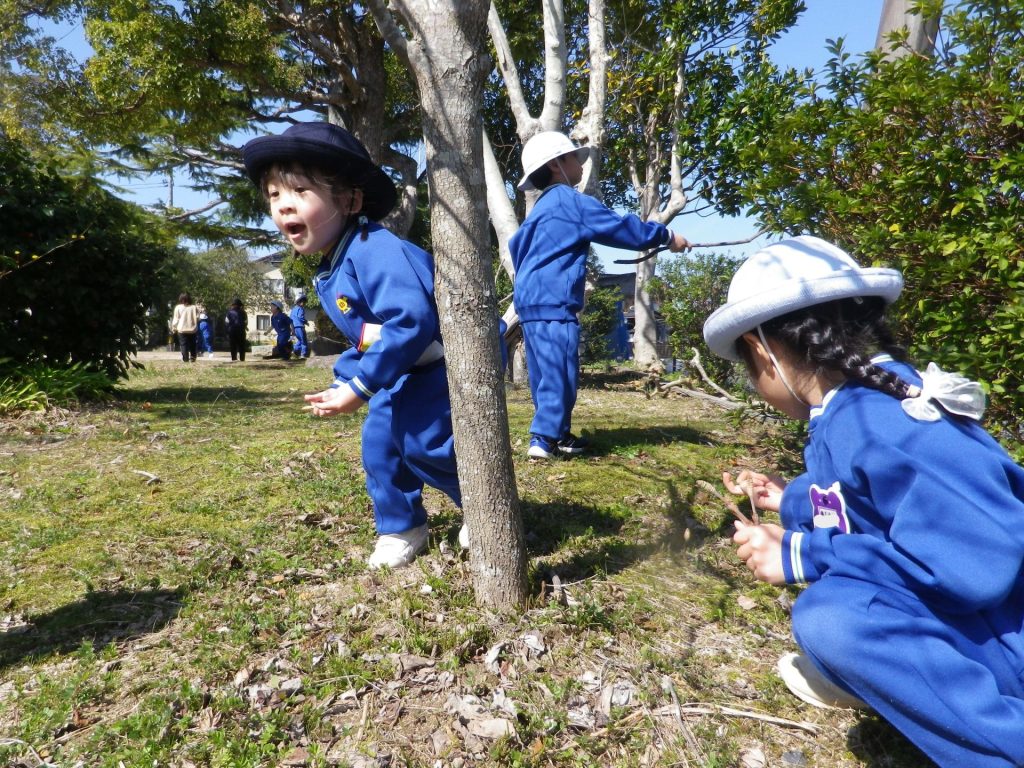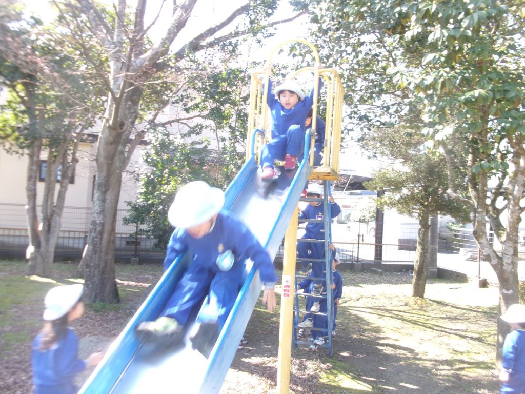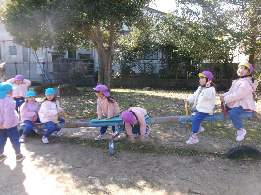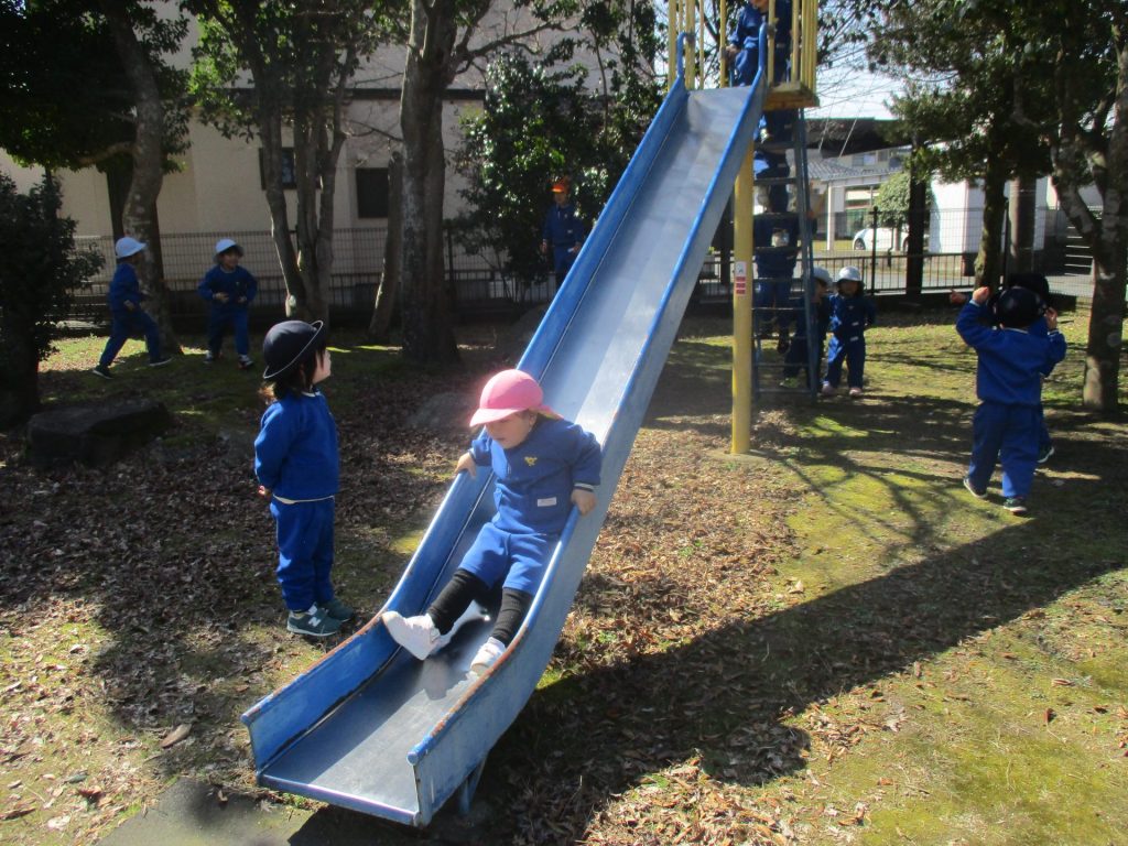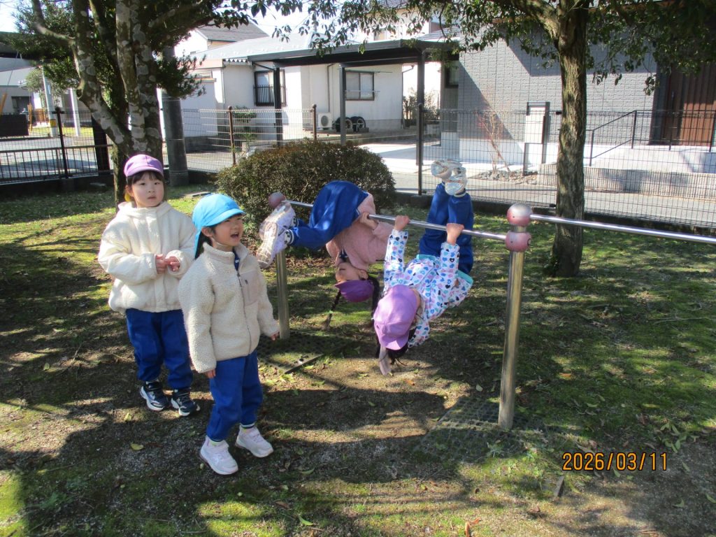 公園に到着!好きな遊具を見つけて遊んだり、氷鬼や春見つけを楽しんだりする子ども達でした。なんとつくしも発見しました!春を感じながらたっぷりと楽しみました♪