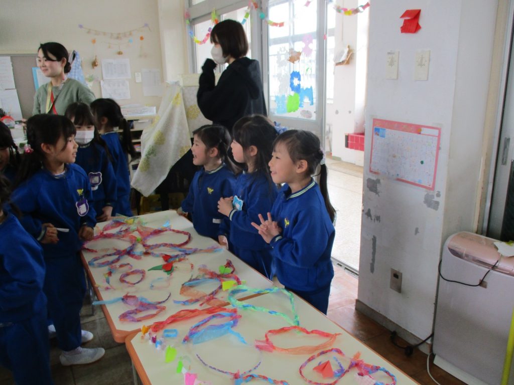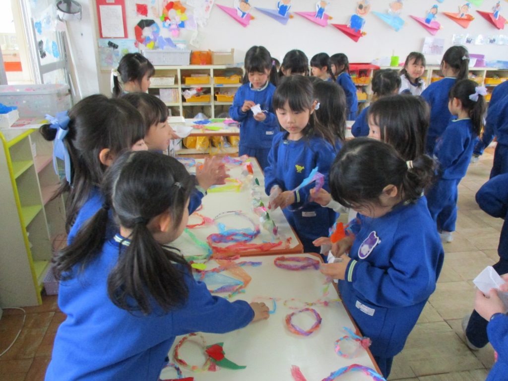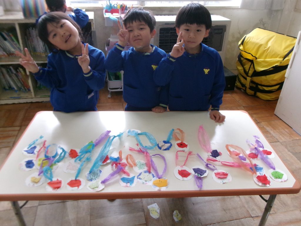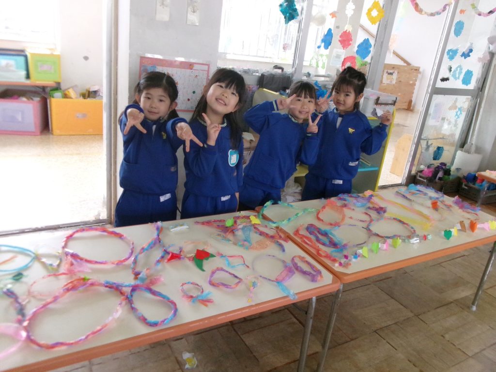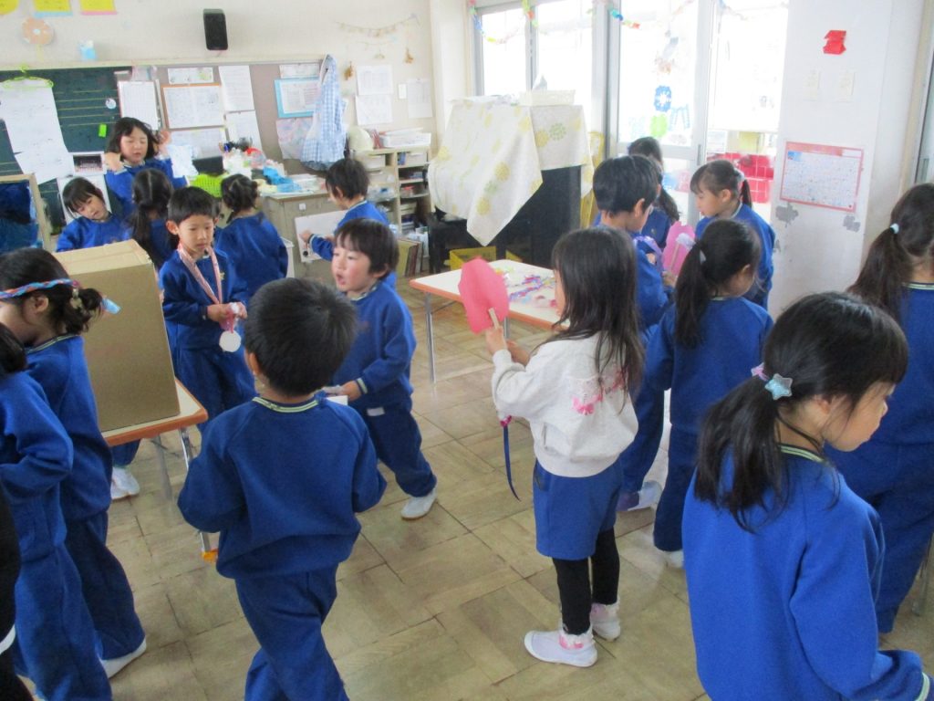 年中組でおみせやさんごっこをしました!すみれ組では「のりものやさん・れすとらん・さかなやさん・はなやさん・ふくやさん」ゆり組では「すいぞくかん・あくせさりーやさん・ゆきのけっしょうやさん・げーむこーなー」がオープンしました!一年間いろいろな制作で身についた力を発揮して友達と一緒に作ってきました!お客さんは来てくれるかな?「いらっしゃいませ!!」