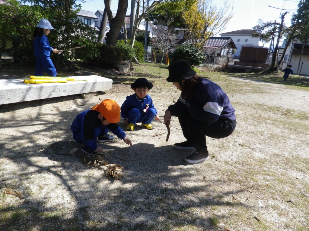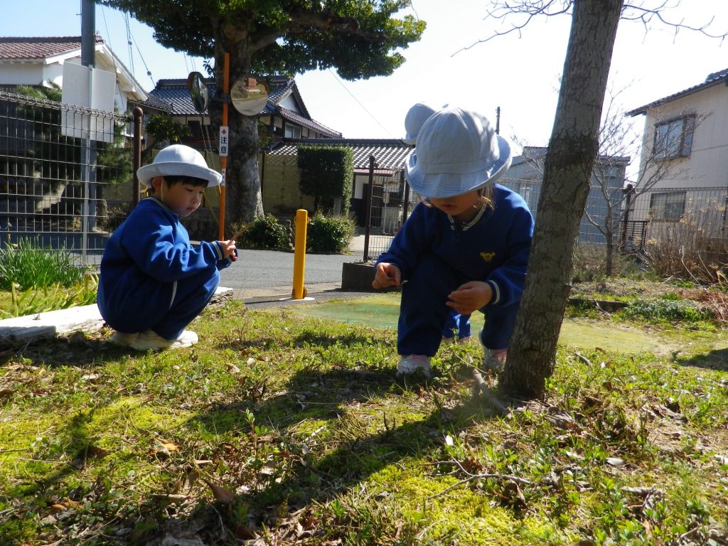 そして!公園には「春」が😊つくしを見つけて「春見つけだ!年長組になるんだ!」と大喜びでした!