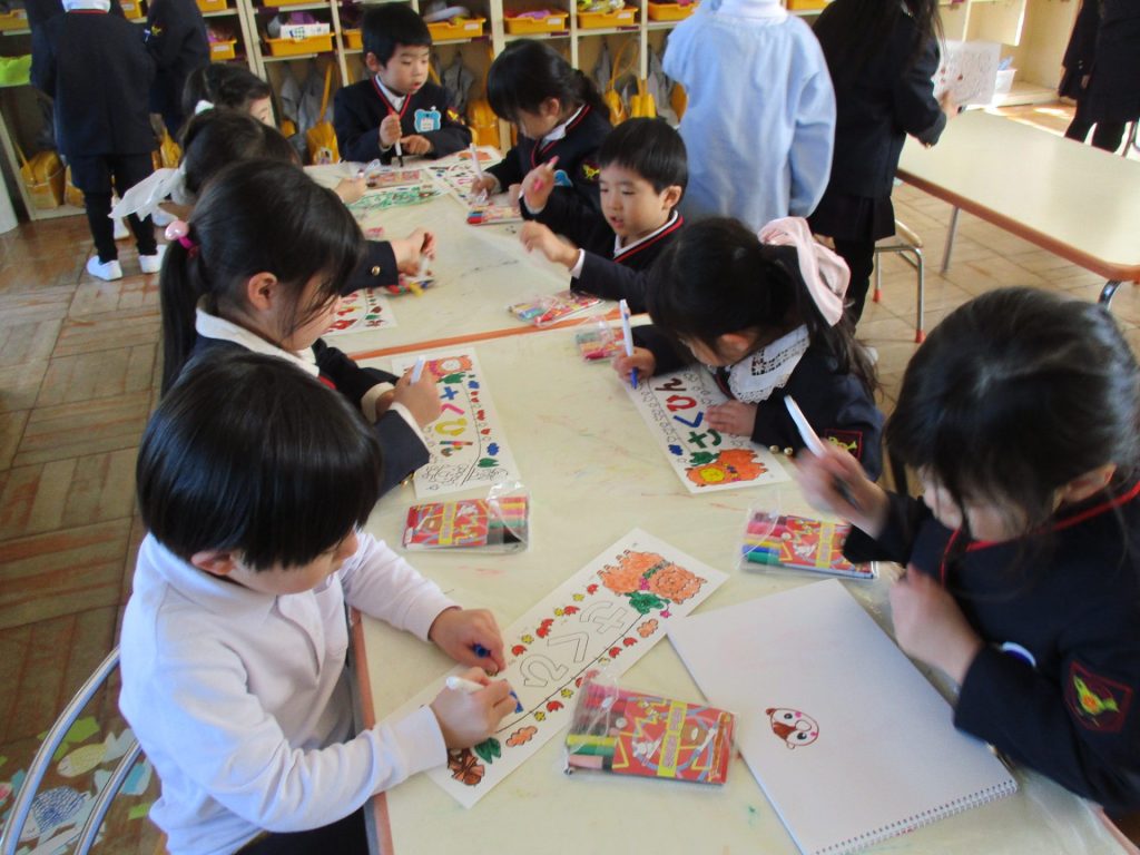 ちなみに・・・「さくひん」の文字も丁寧に塗っていました☆文字を細かく虹色に塗るお友達が多かったです(#^^#)
