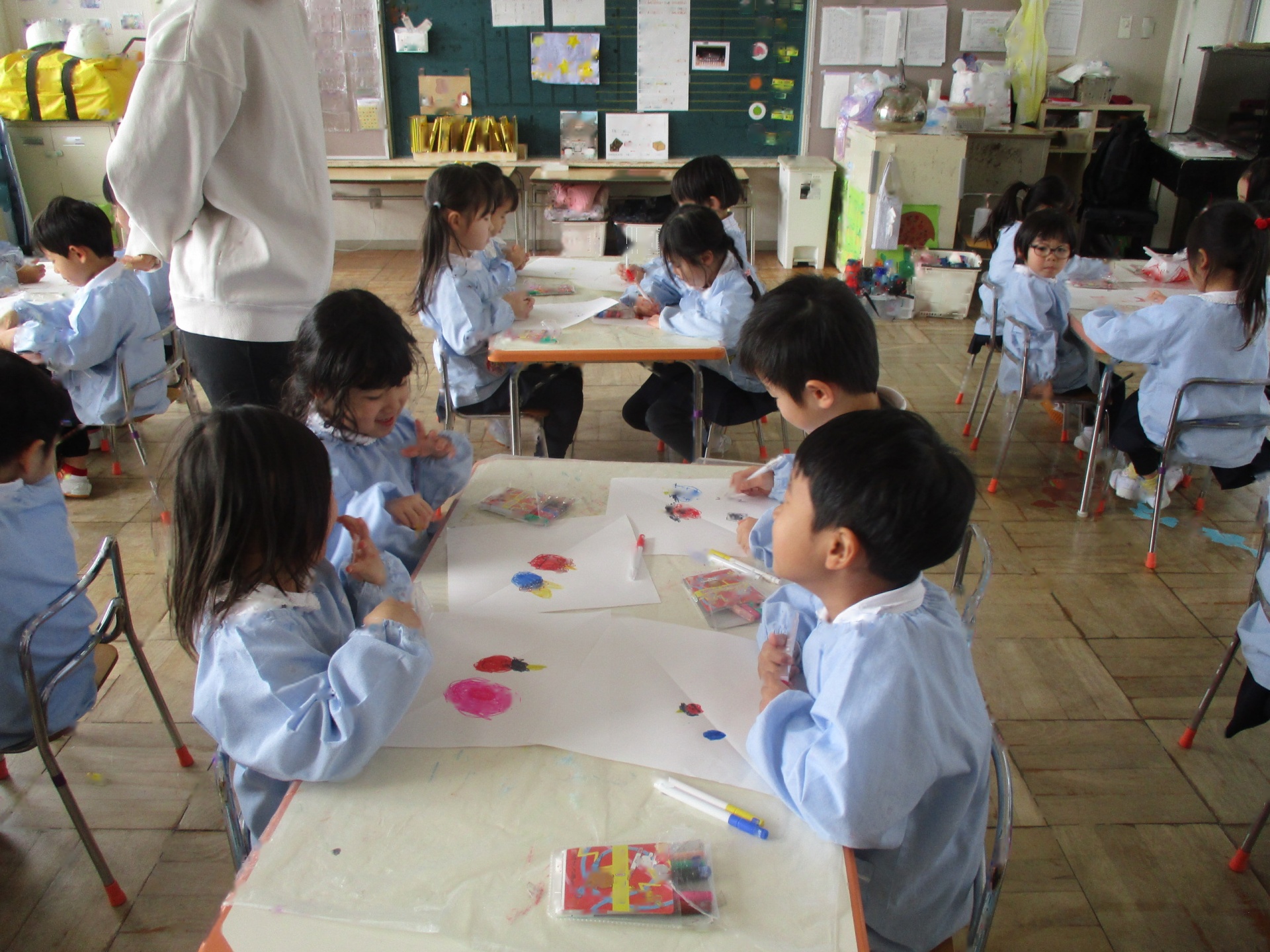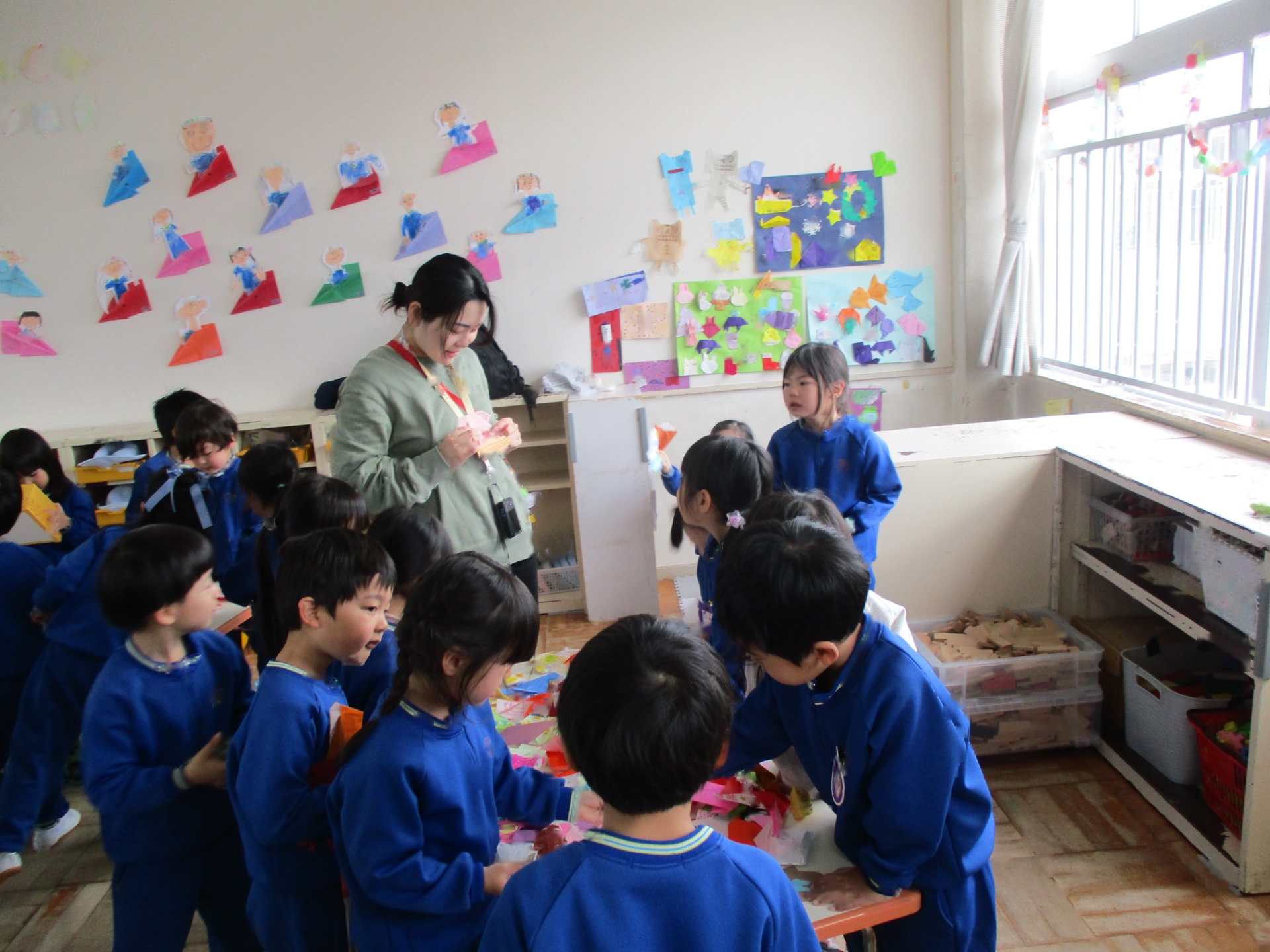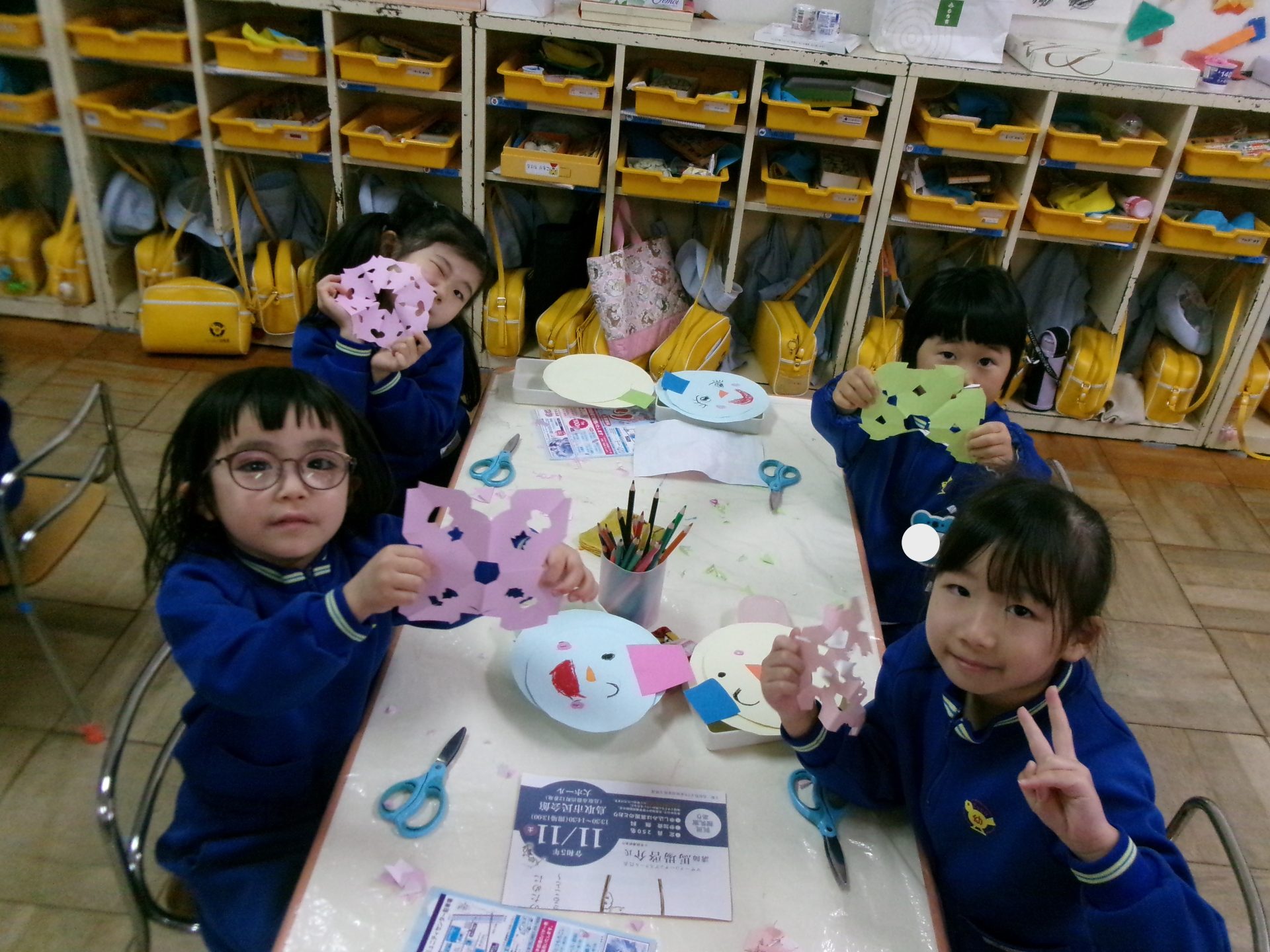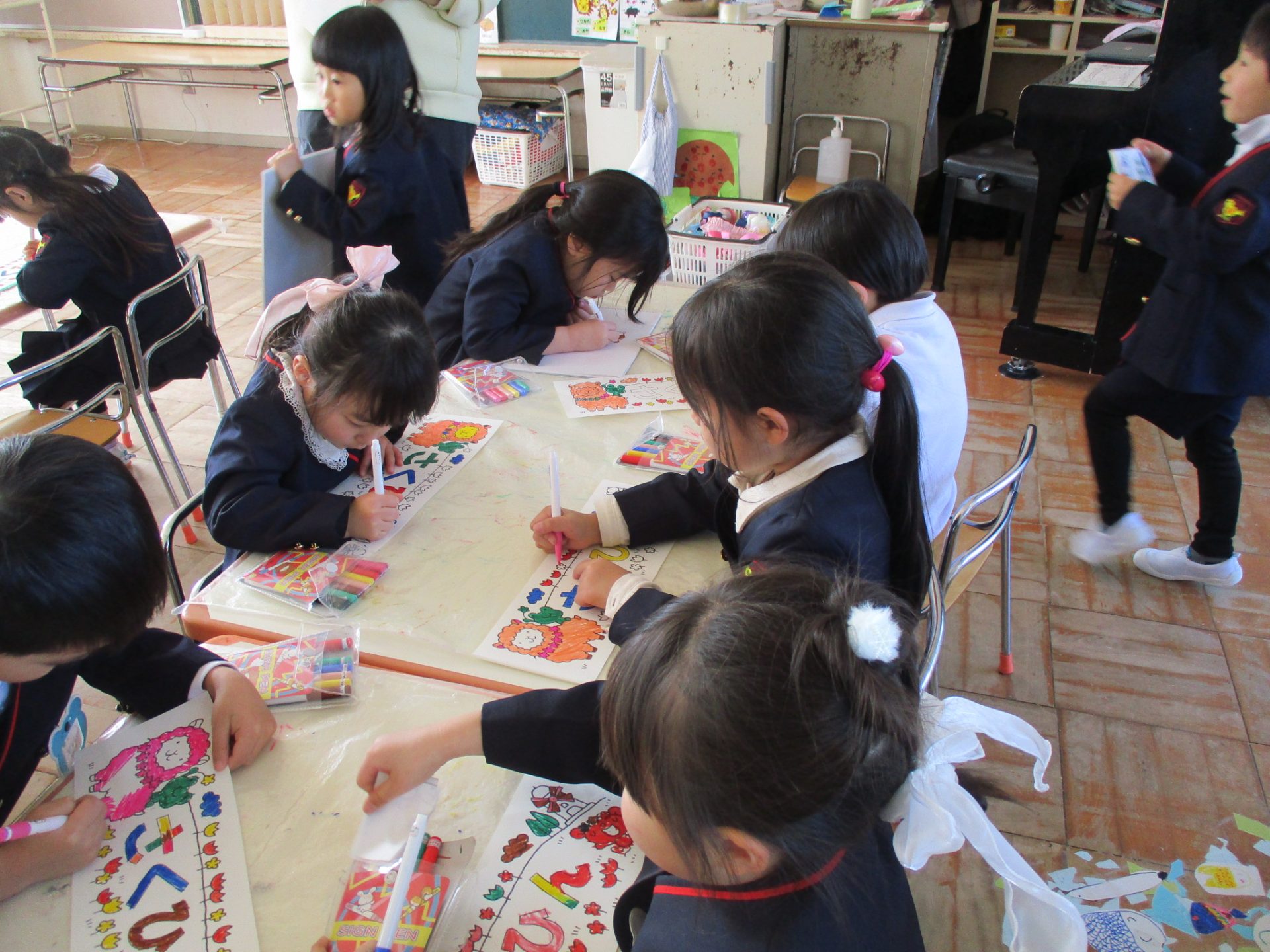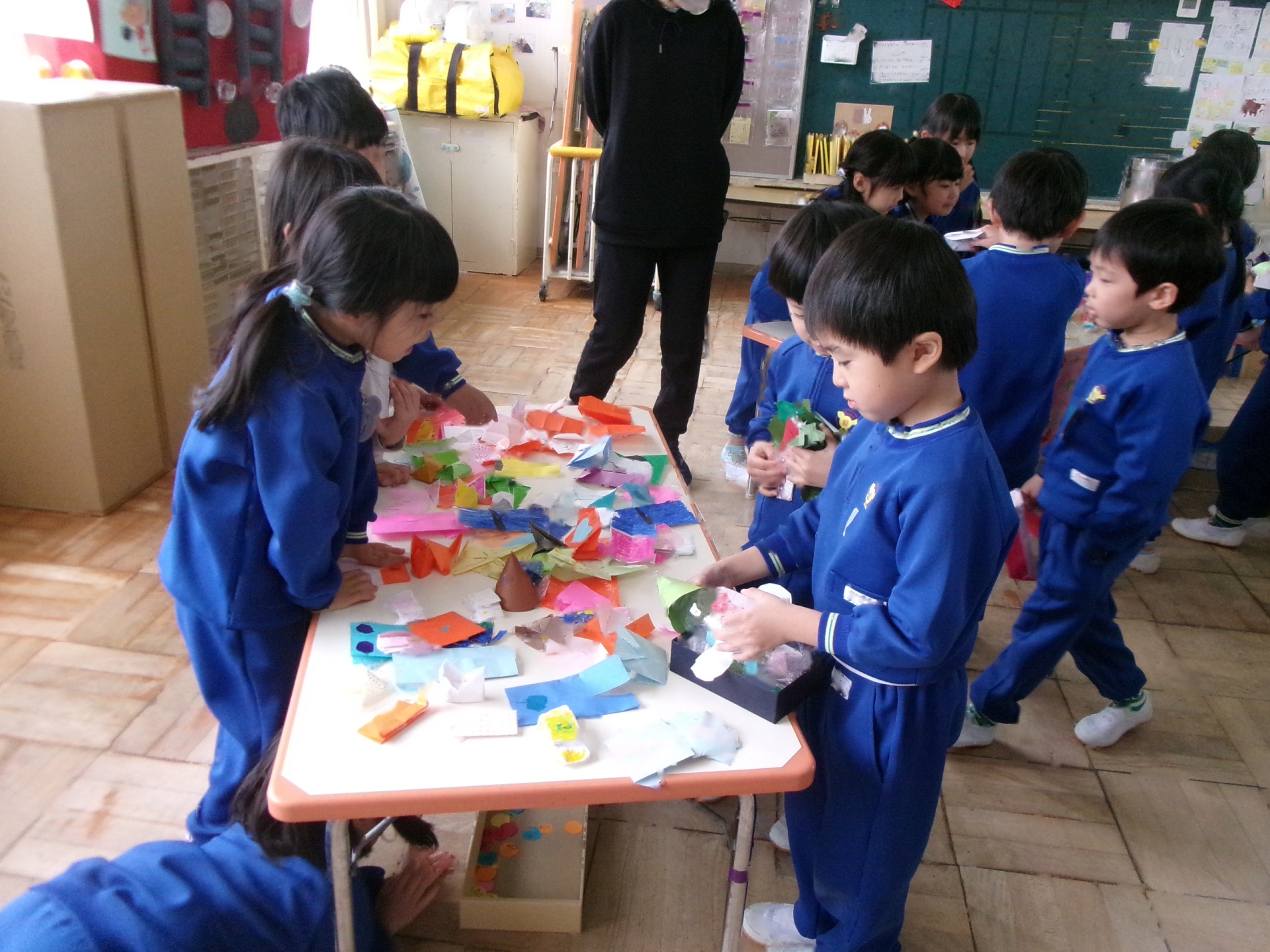 先日の節分に向けて、年中組は升を作りました。大きな紙に節分に関する絵を描き、それを折りました。日ごろの遊びで折り紙を楽しんでいるため、難しい折り方にも楽しんで取り組む姿が見られましたよ😊