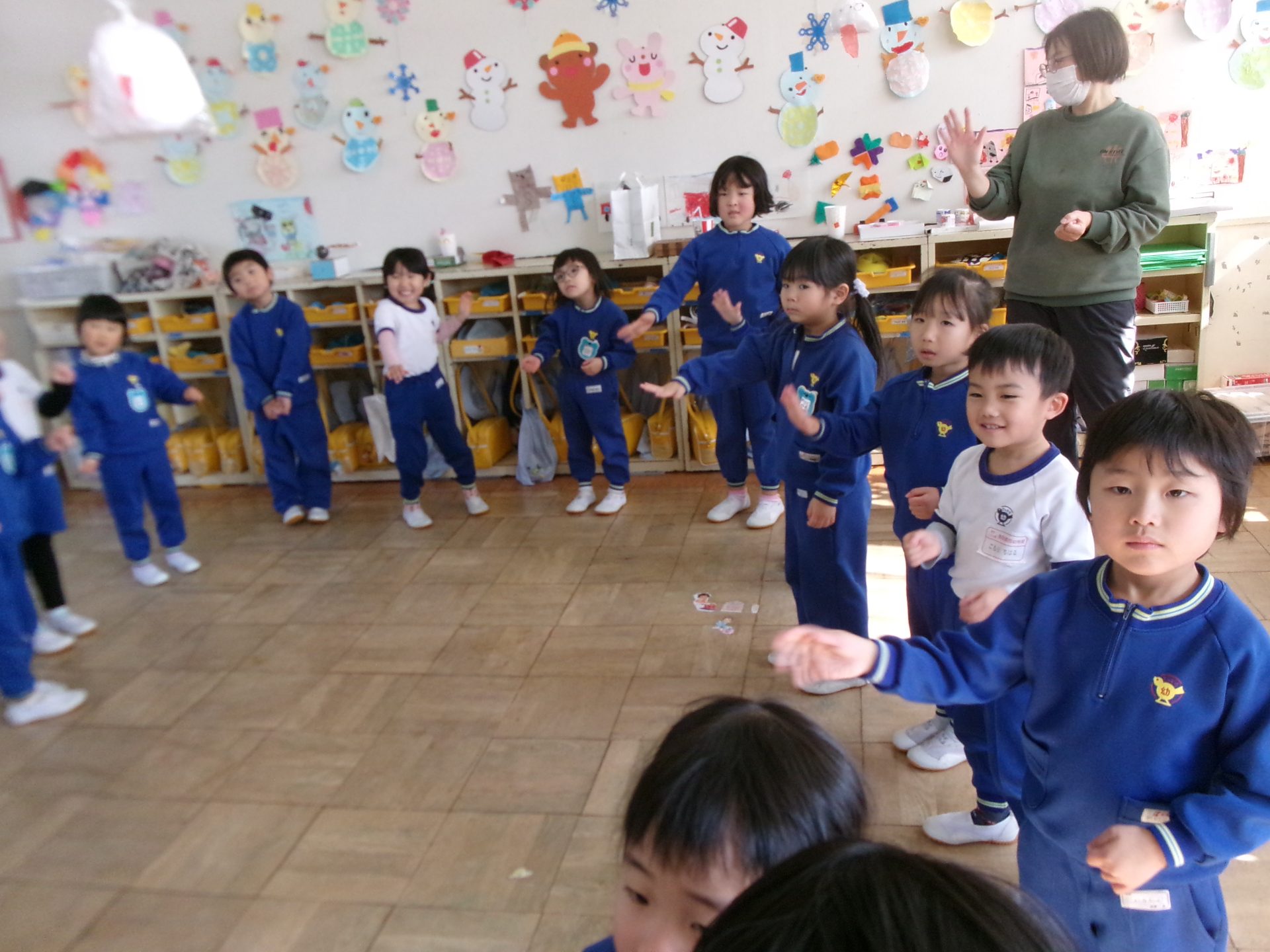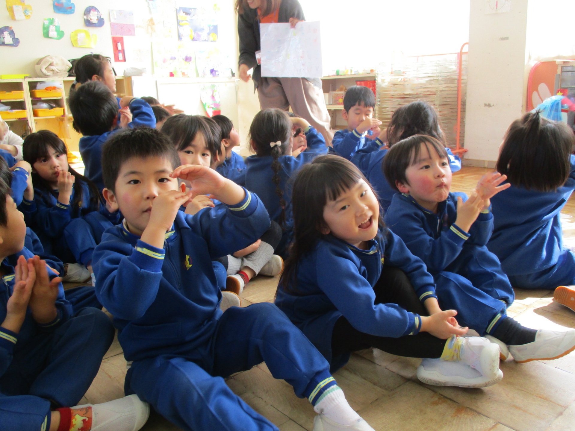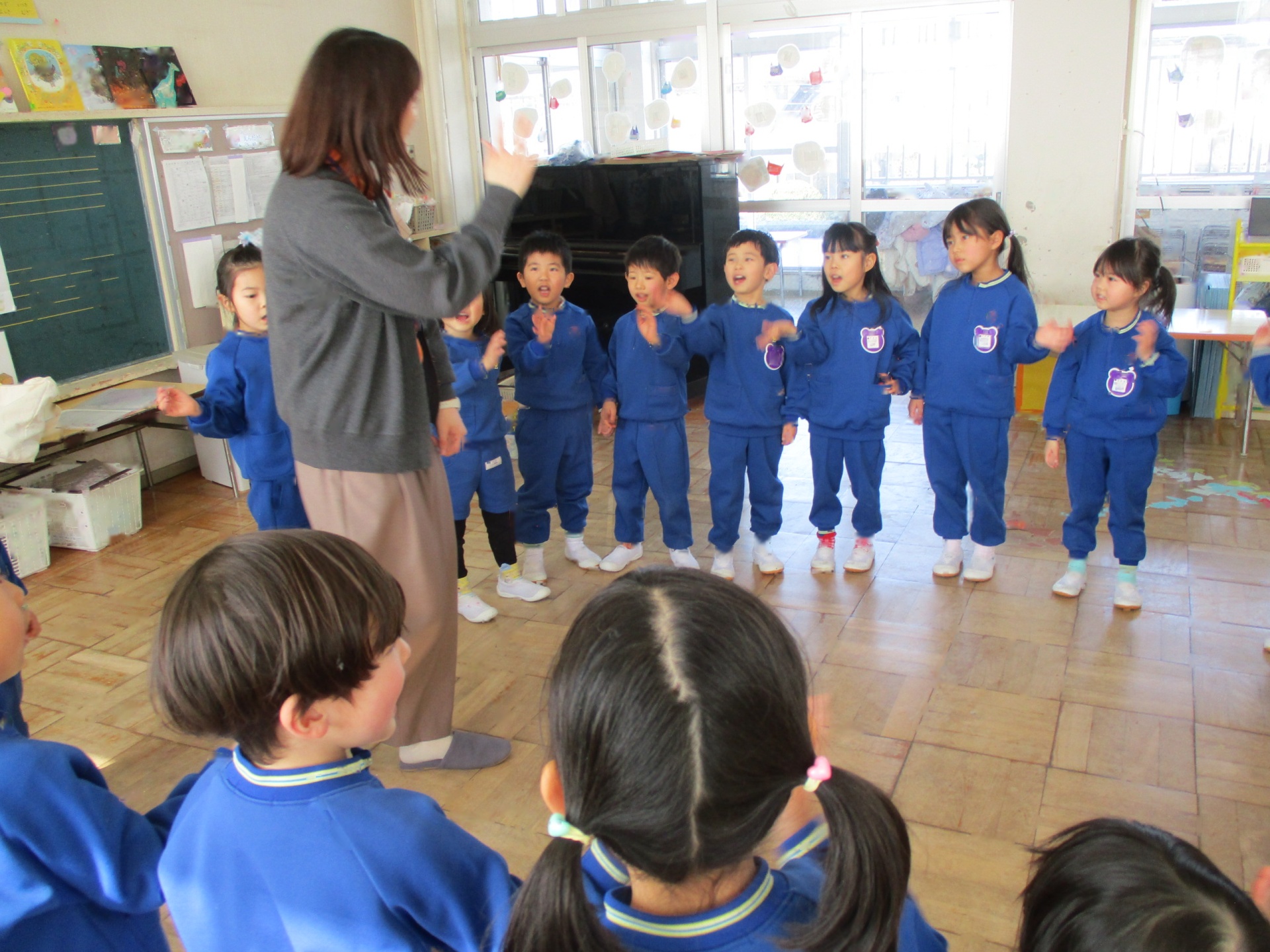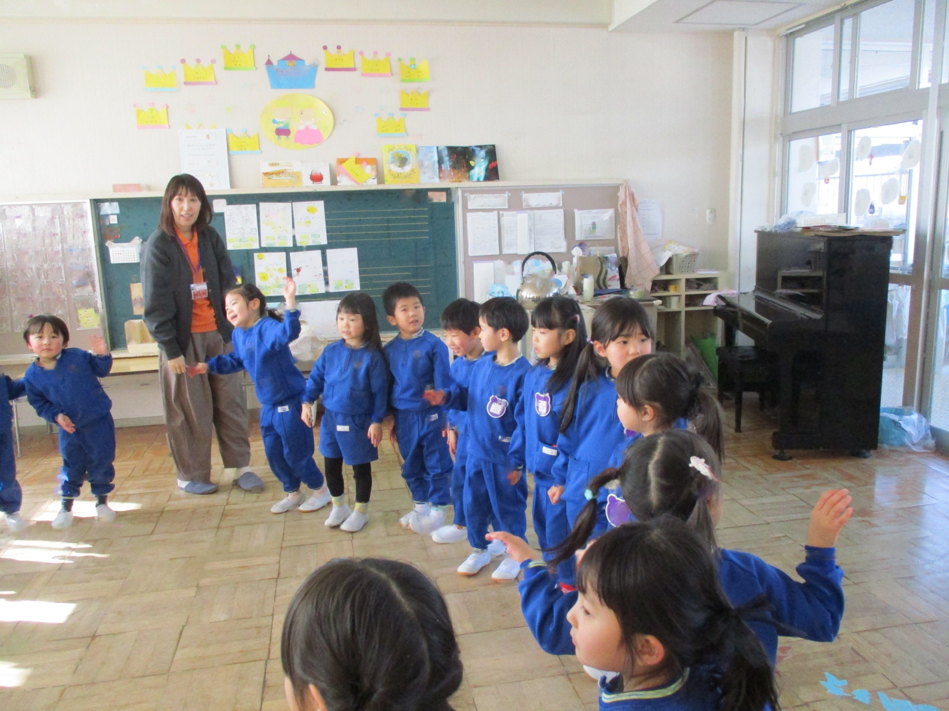 年中組最後の英語教室がありました。楽しい音楽に合わせてノリノリで歌いながら楽しく英語に触れました♪