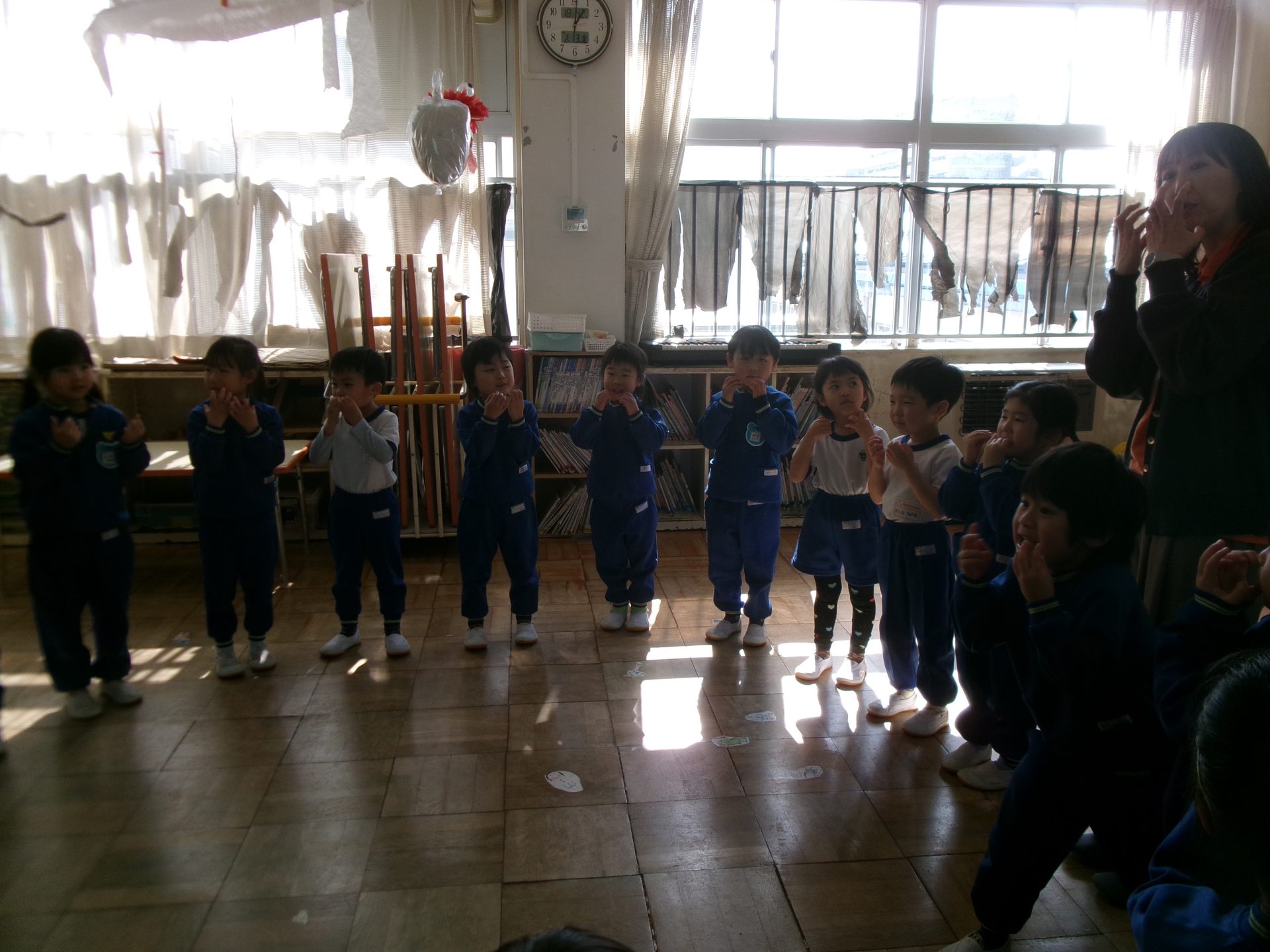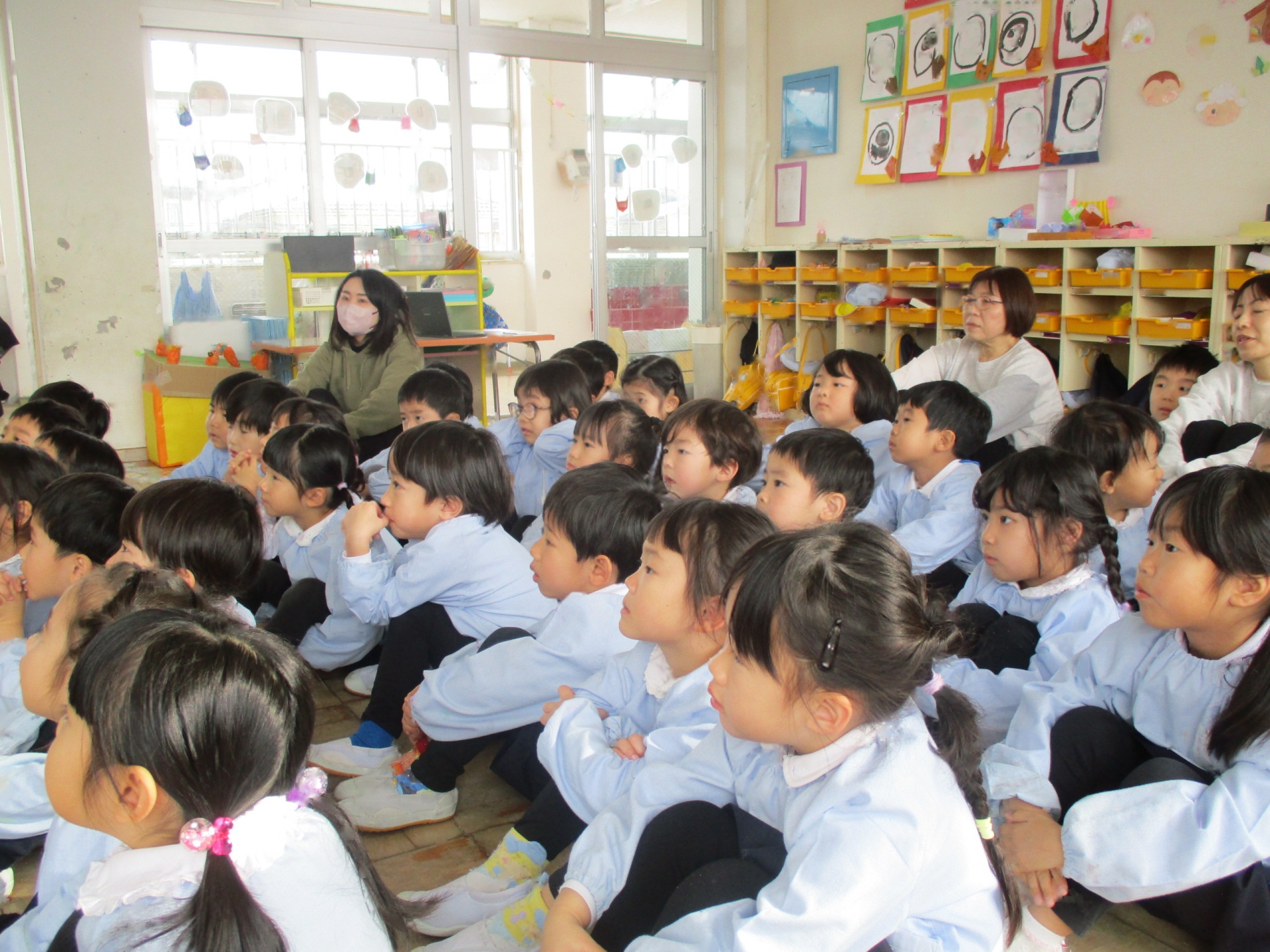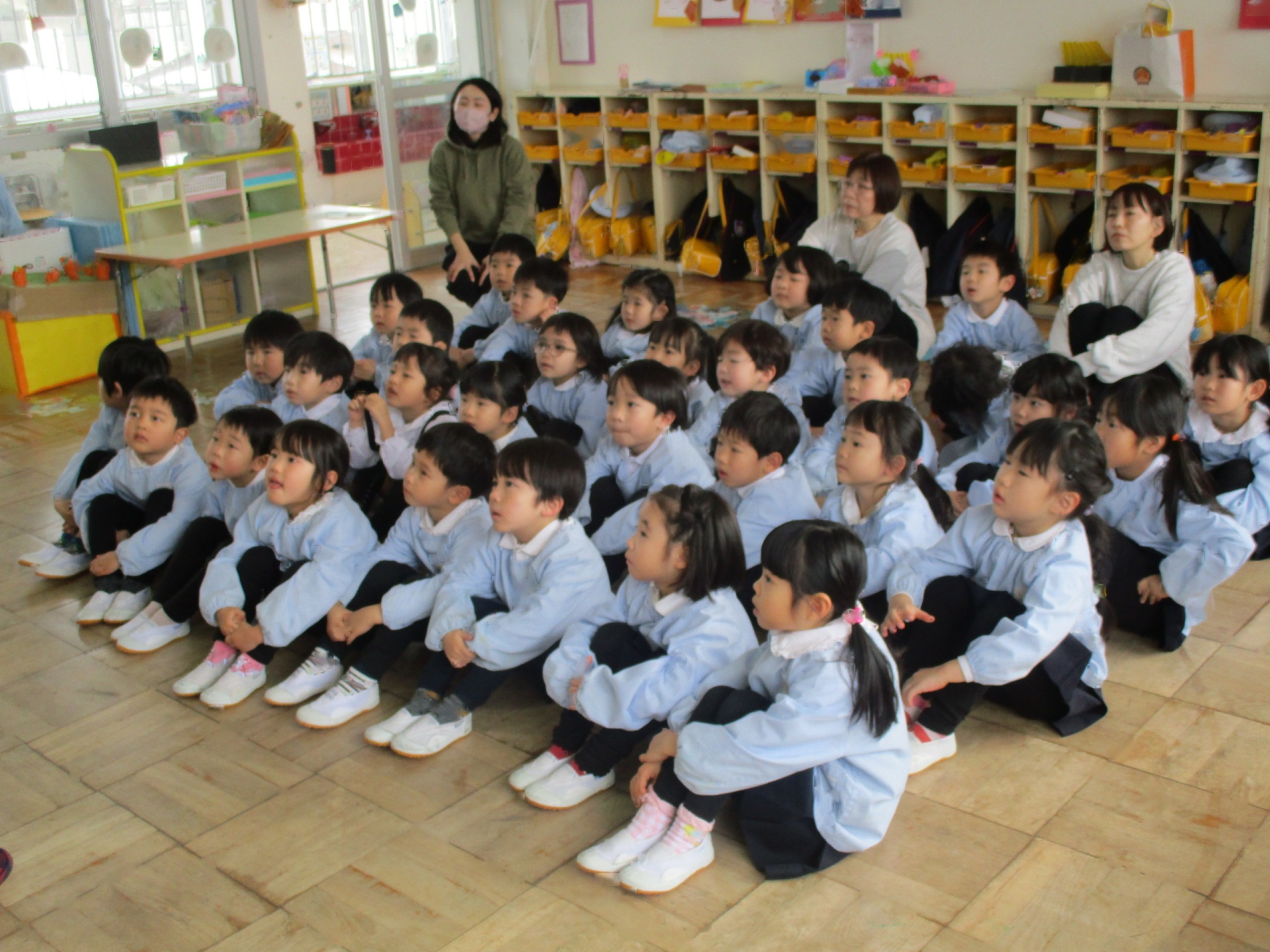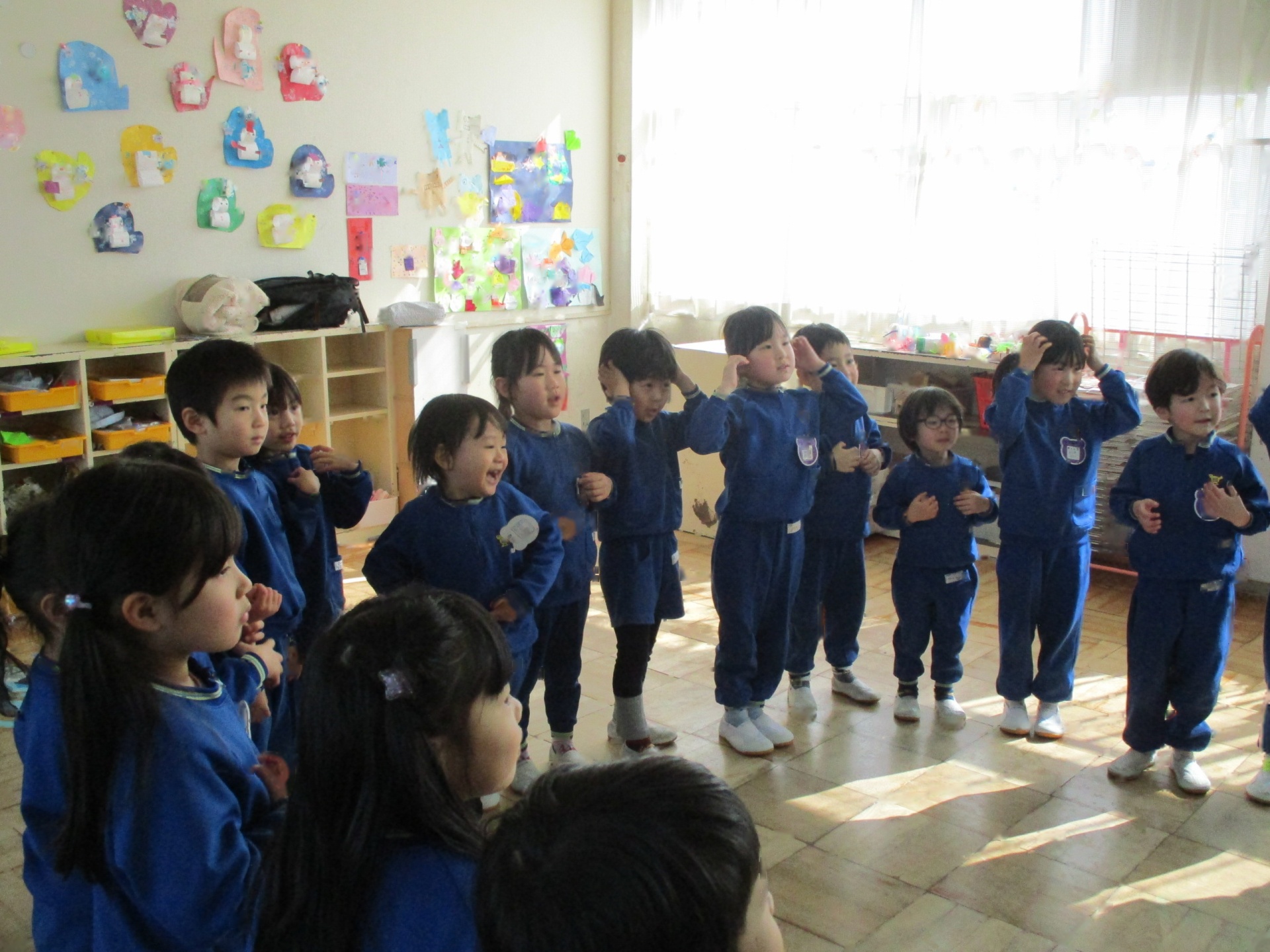 年中組最後の英語教室がありました。楽しい音楽に合わせてノリノリで歌いながら楽しく英語に触れました♪