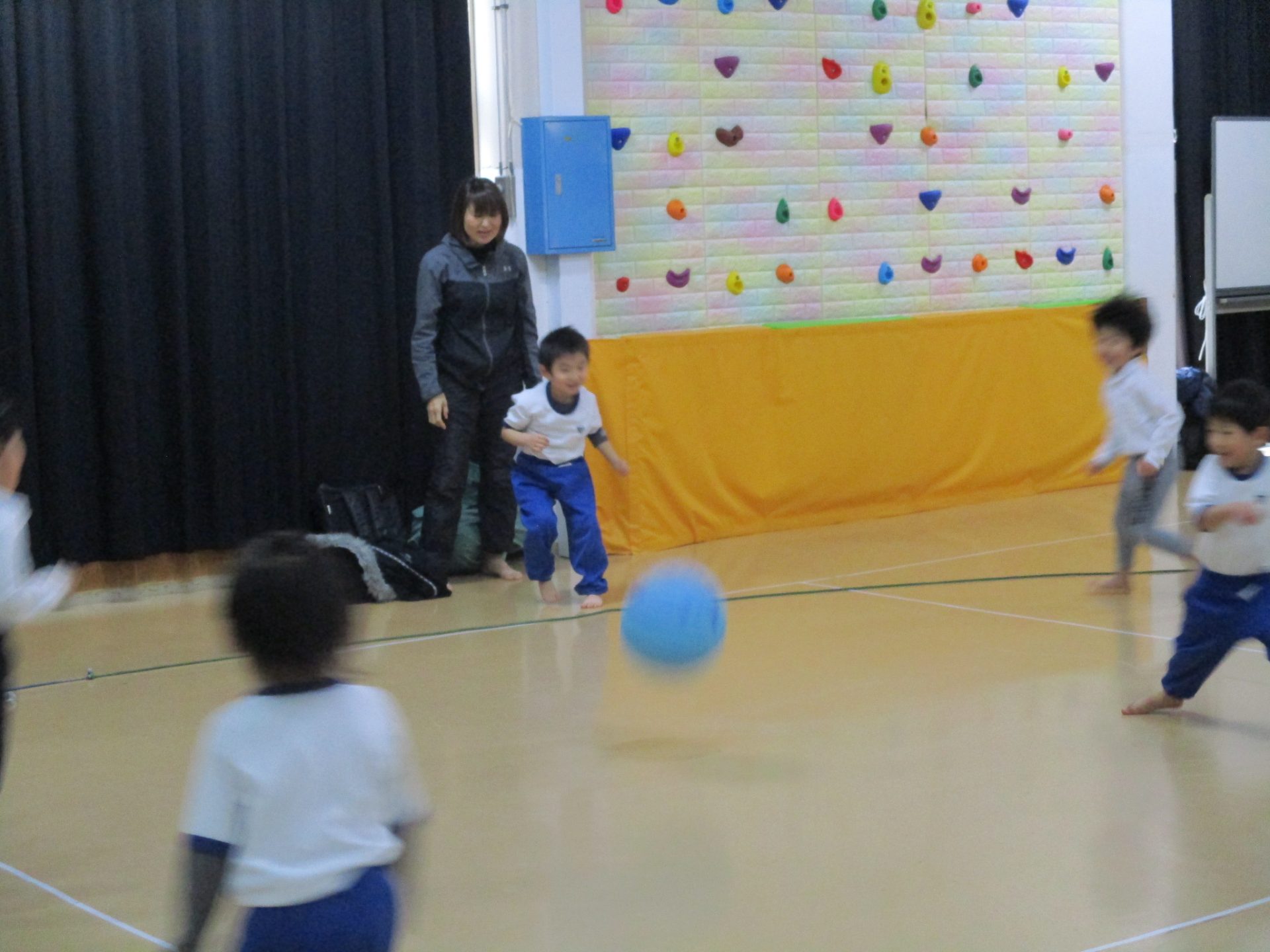 今日は、体育教室がありました!子ども達の大好きなドッジボール(#^^#)ルールを守りながら友達と一緒に楽しみました。まずは、先生がボールを転がします!