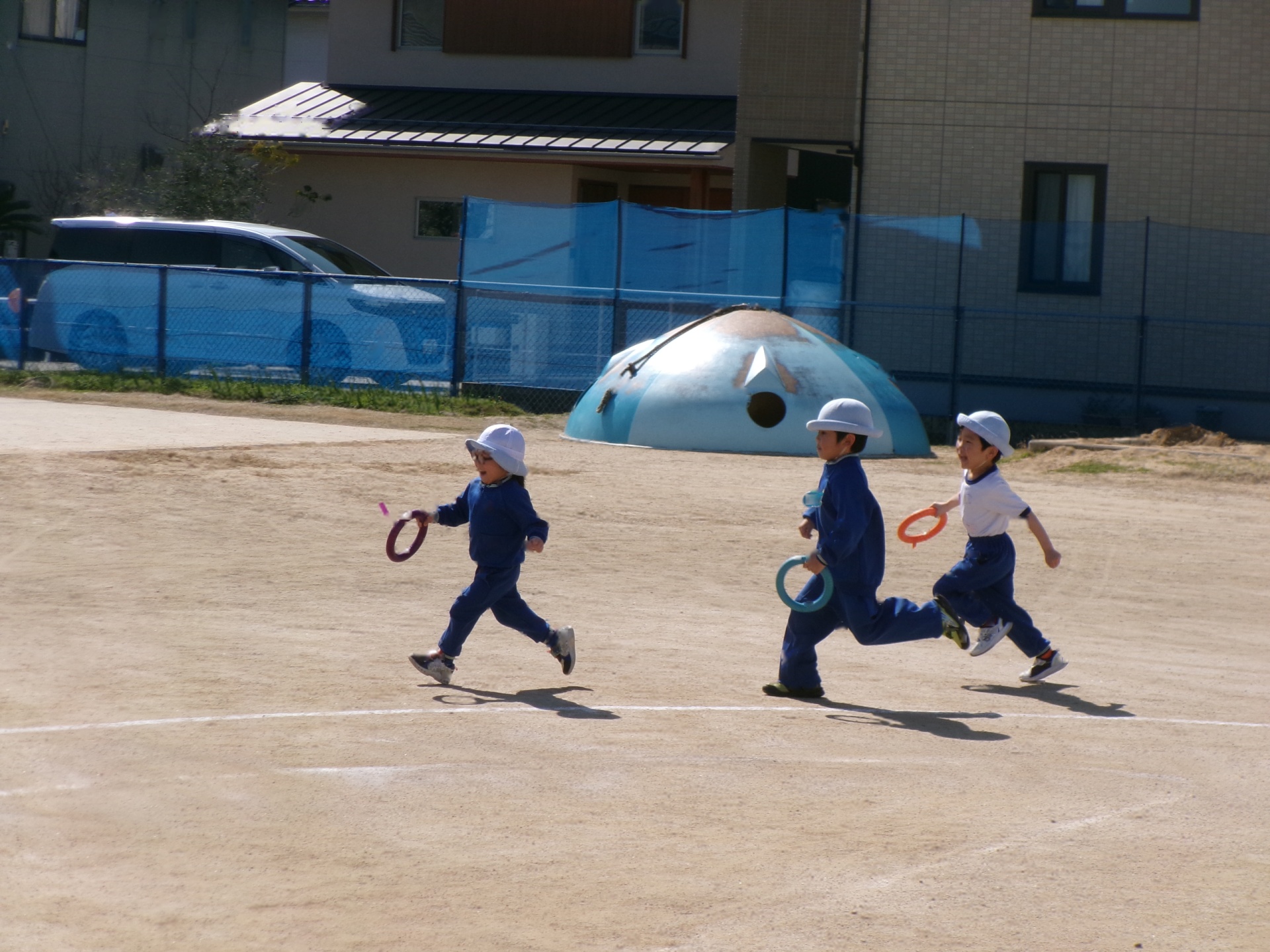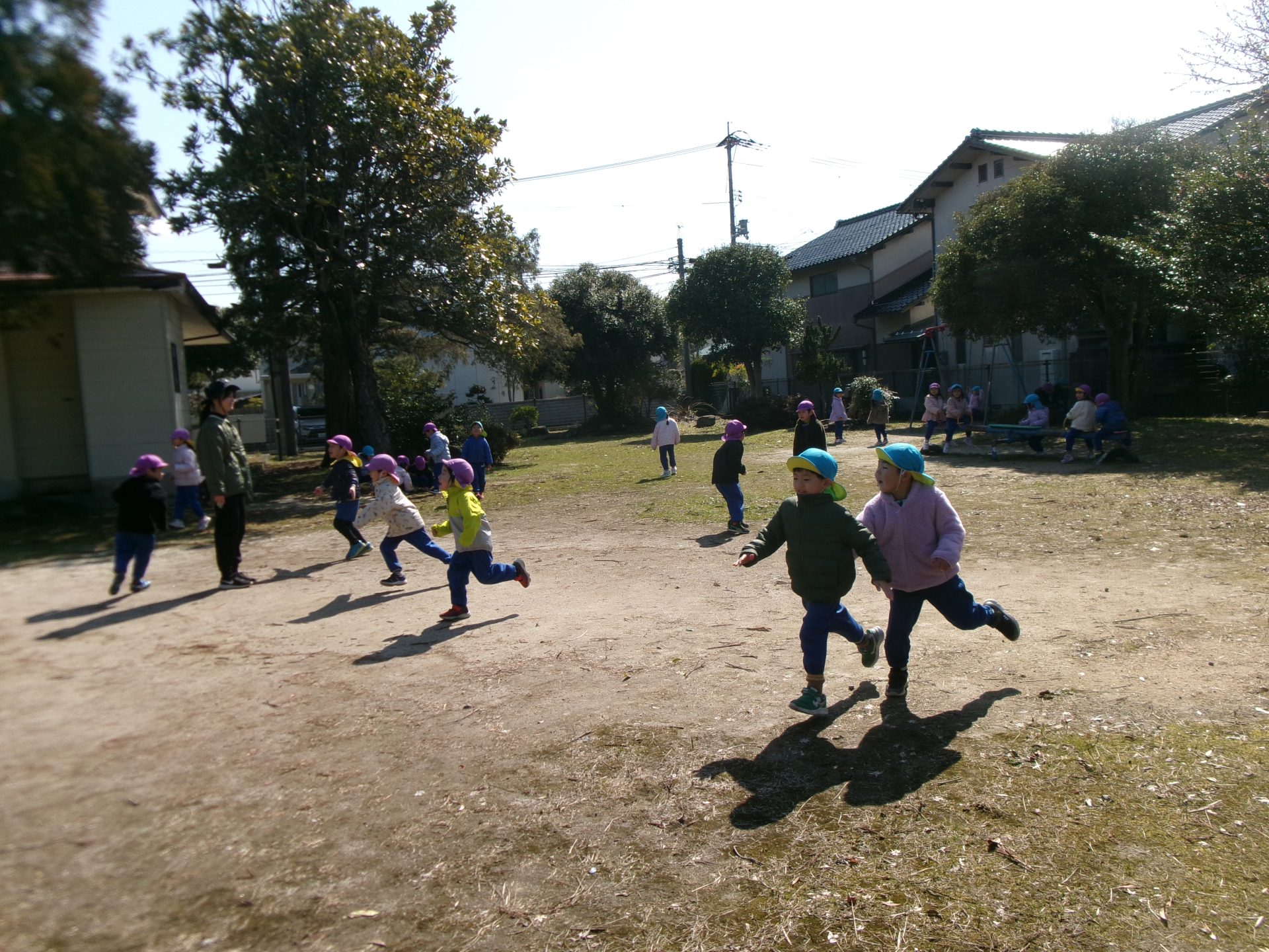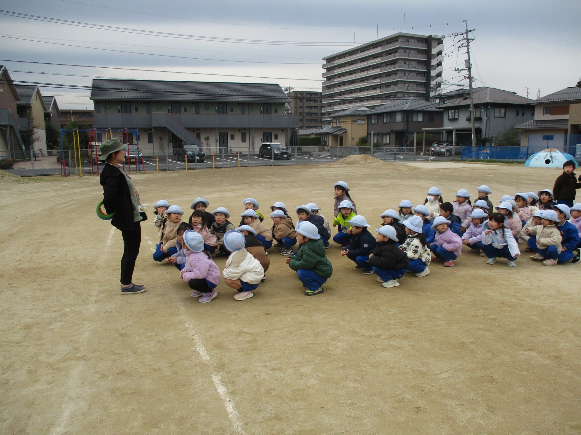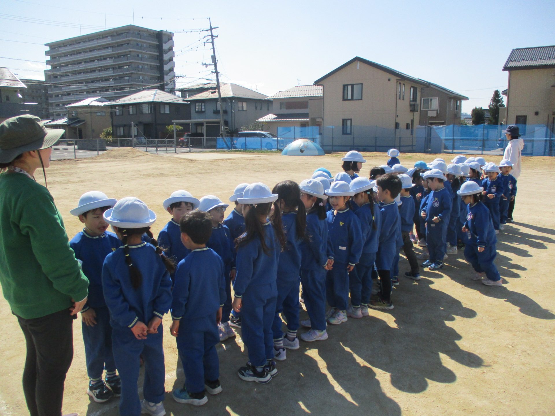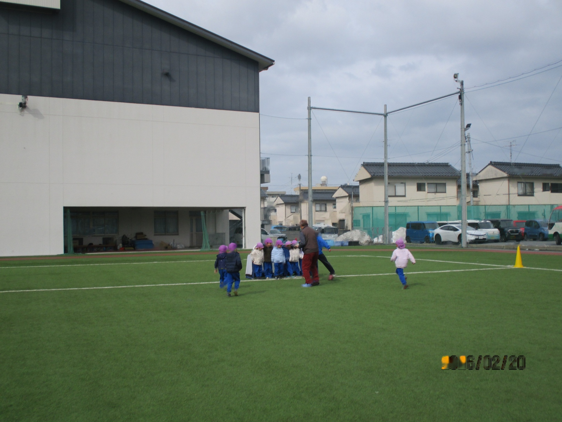 3学期に入り、マーチングの練習を始めました。年長組のお兄さんお姉さんの姿を見て憧れを抱いていた子ども達は、「マーチングの練習しようか!」と言うと「よっしゃー!」と喜んでいます😊まずは、基本動作から始めました。気を付け・休め、できるかな?笛の音に合わせて「や!」と元気な掛け声が響きます。