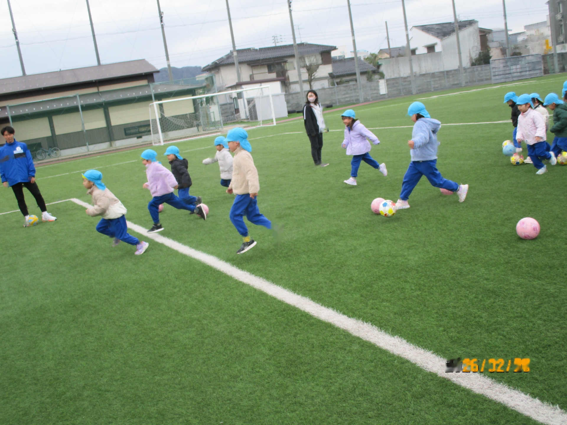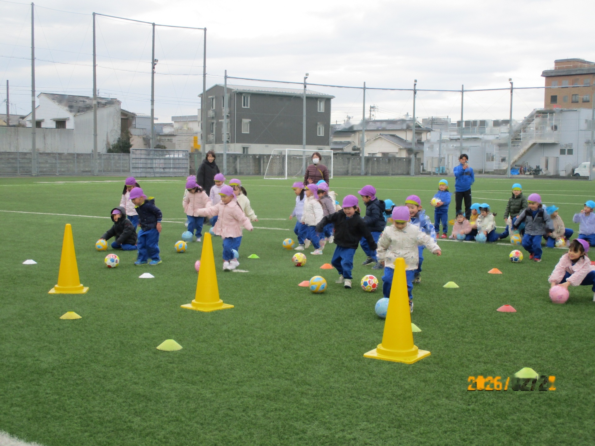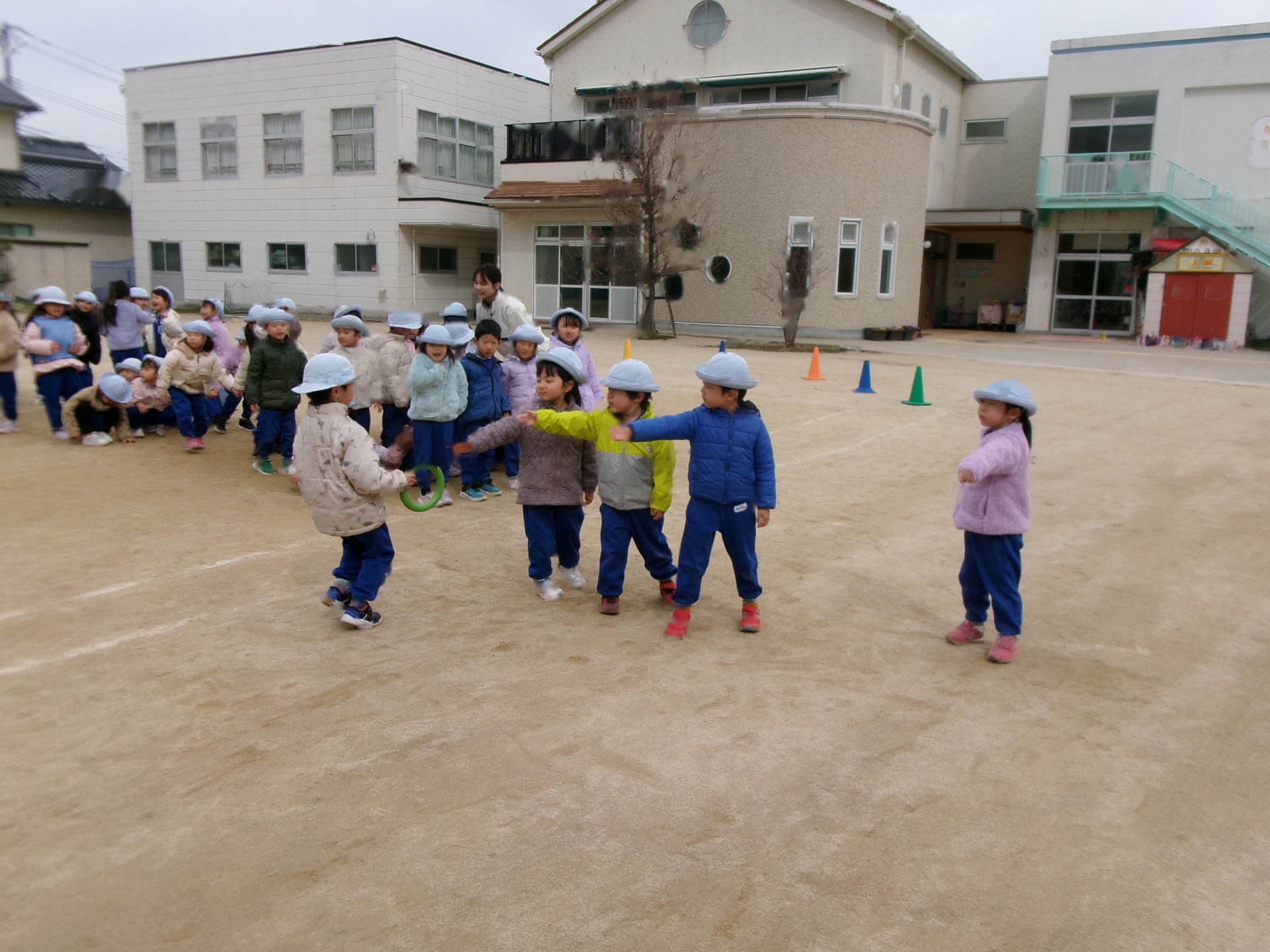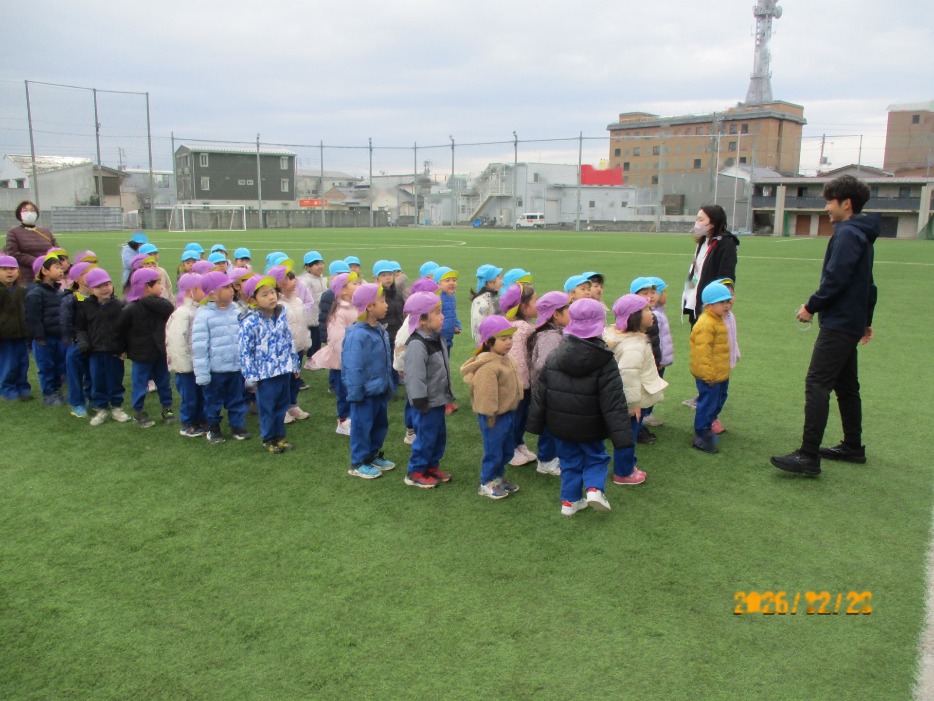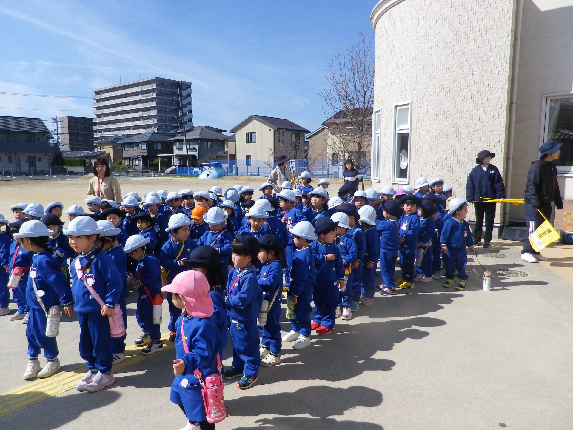 3学期に入り、マーチングの練習を始めました。年長組のお兄さんお姉さんの姿を見て憧れを抱いていた子ども達は、「マーチングの練習しようか!」と言うと「よっしゃー!」と喜んでいます😊まずは、基本動作から始めました。気を付け・休め、できるかな?笛の音に合わせて「や!」と元気な掛け声が響きます。