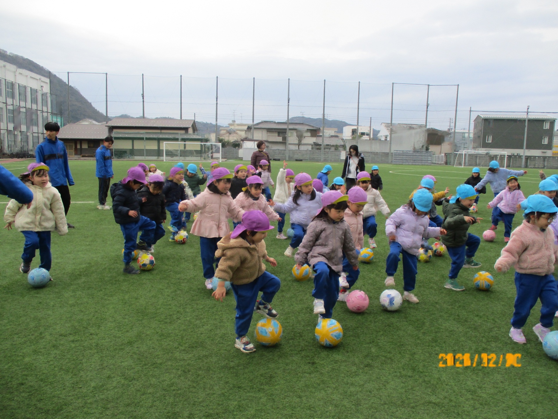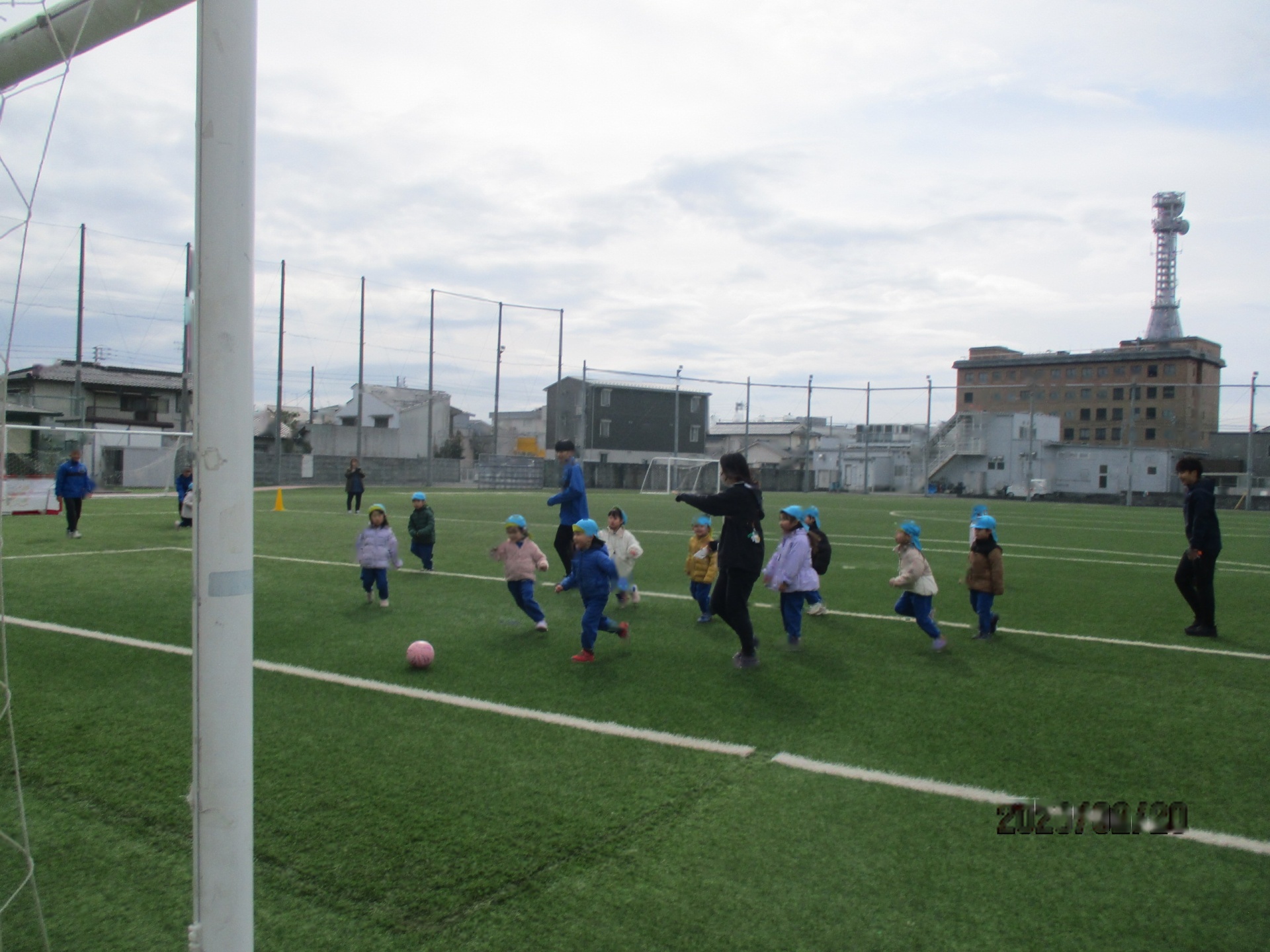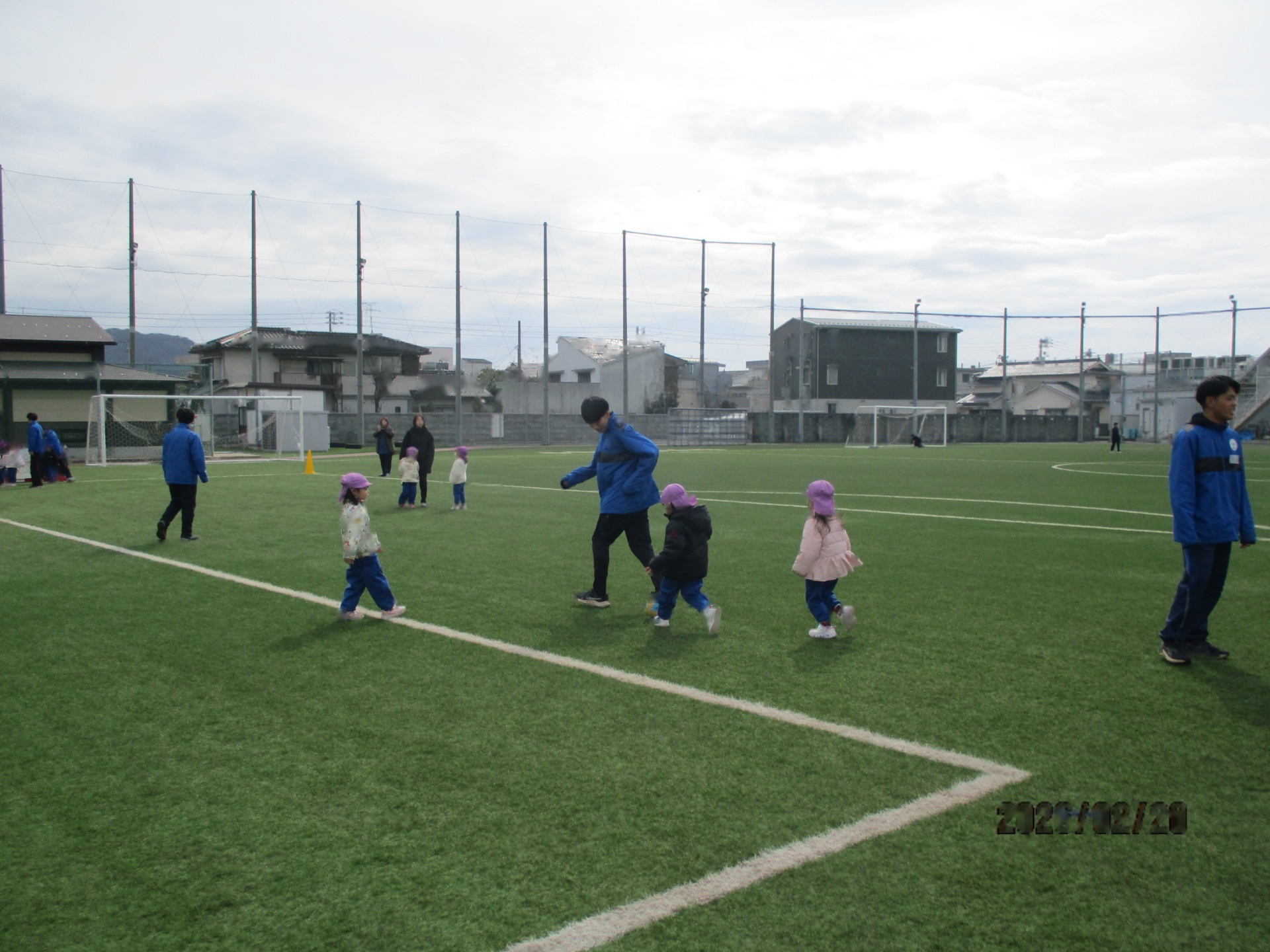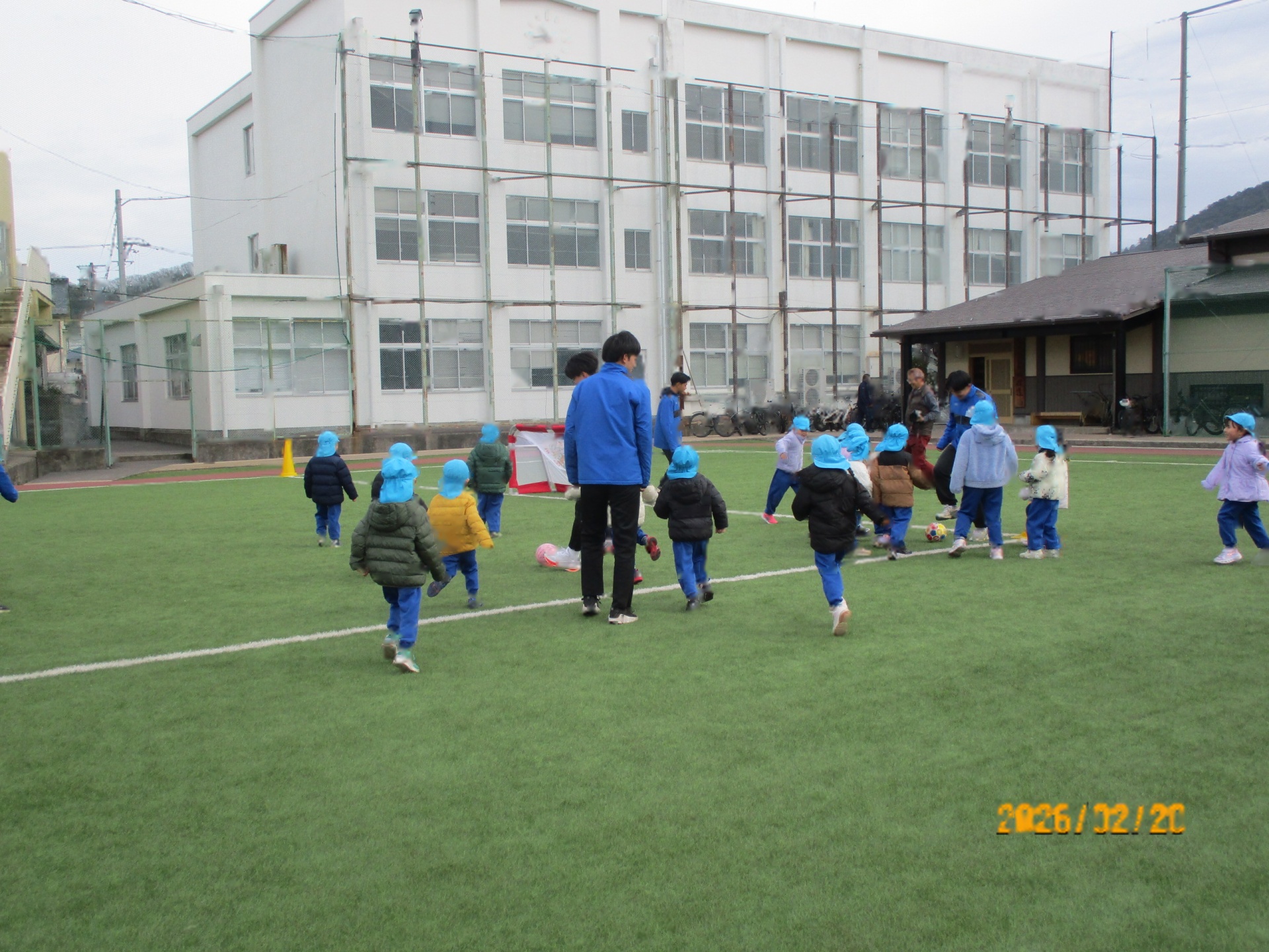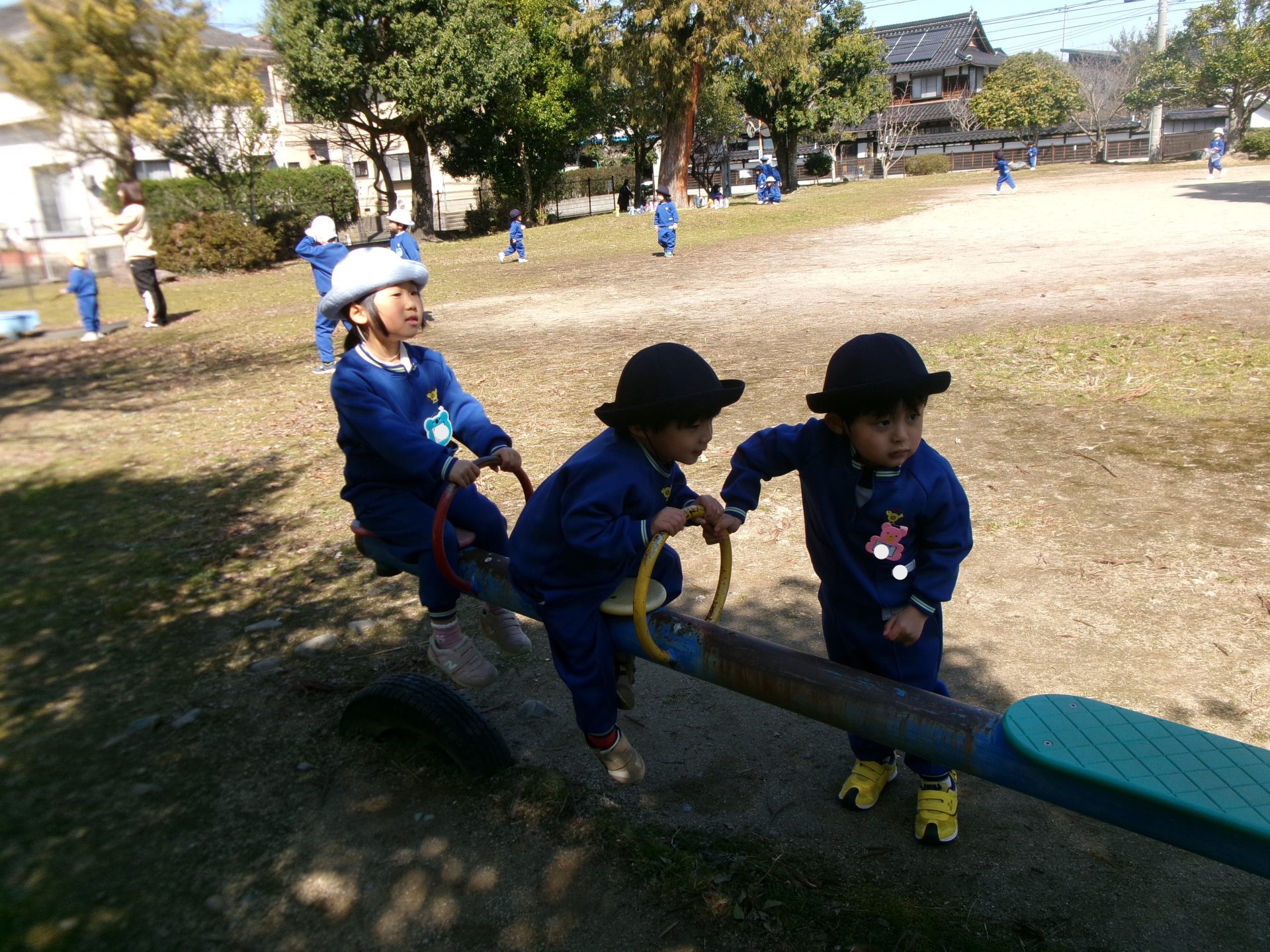 3学期に入り、マーチングの練習を始めました。年長組のお兄さんお姉さんの姿を見て憧れを抱いていた子ども達は、「マーチングの練習しようか!」と言うと「よっしゃー!」と喜んでいます😊まずは、基本動作から始めました。気を付け・休め、できるかな?笛の音に合わせて「や!」と元気な掛け声が響きます。