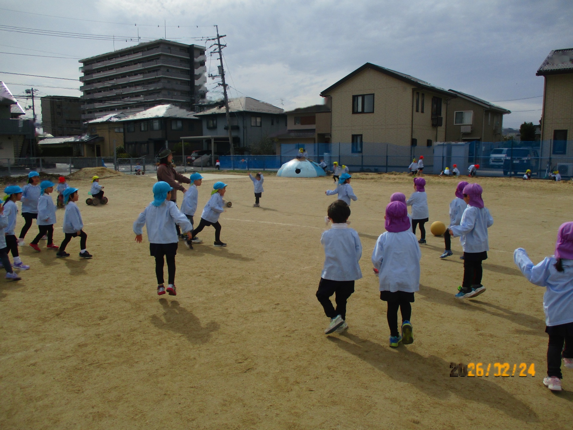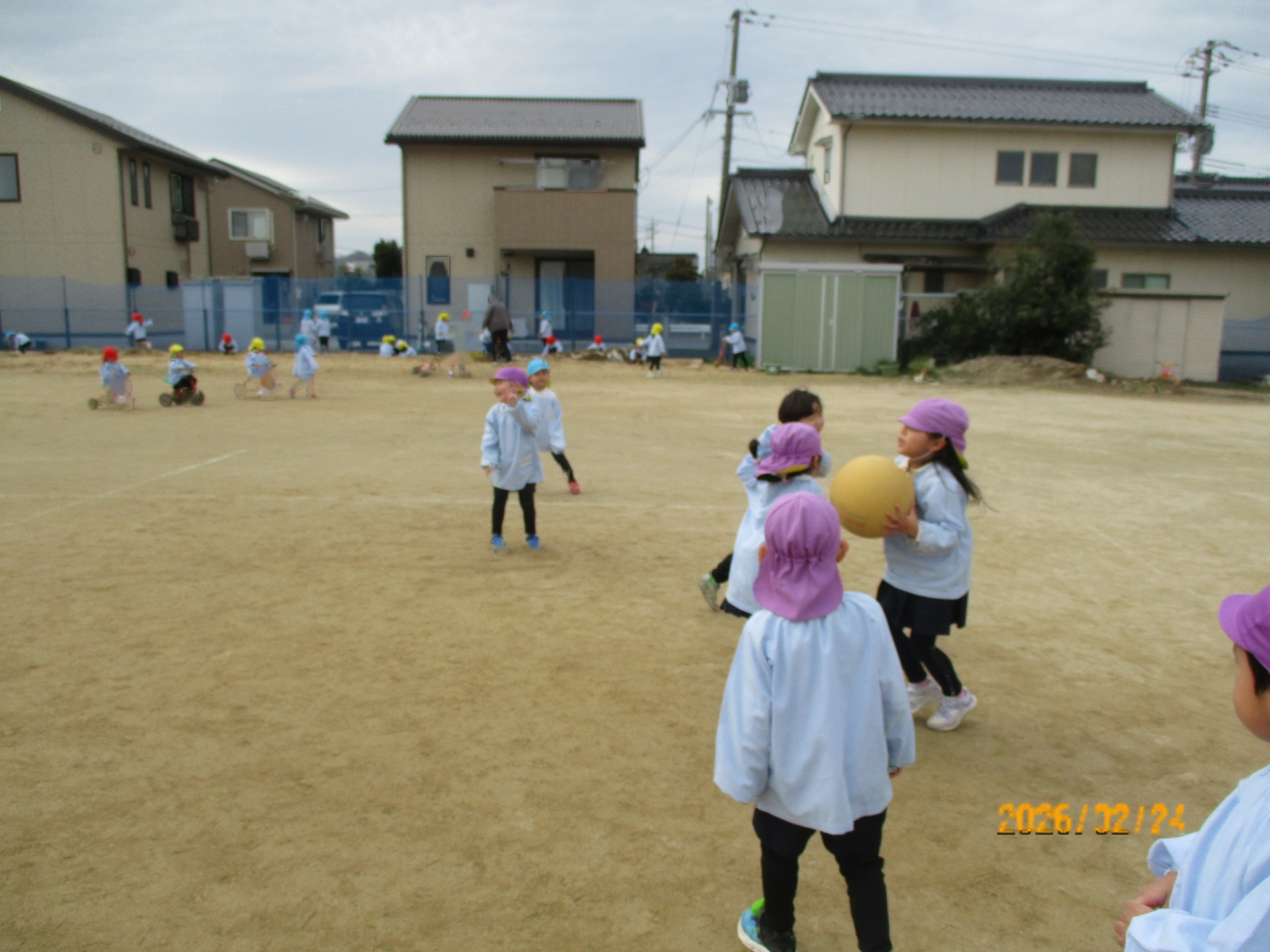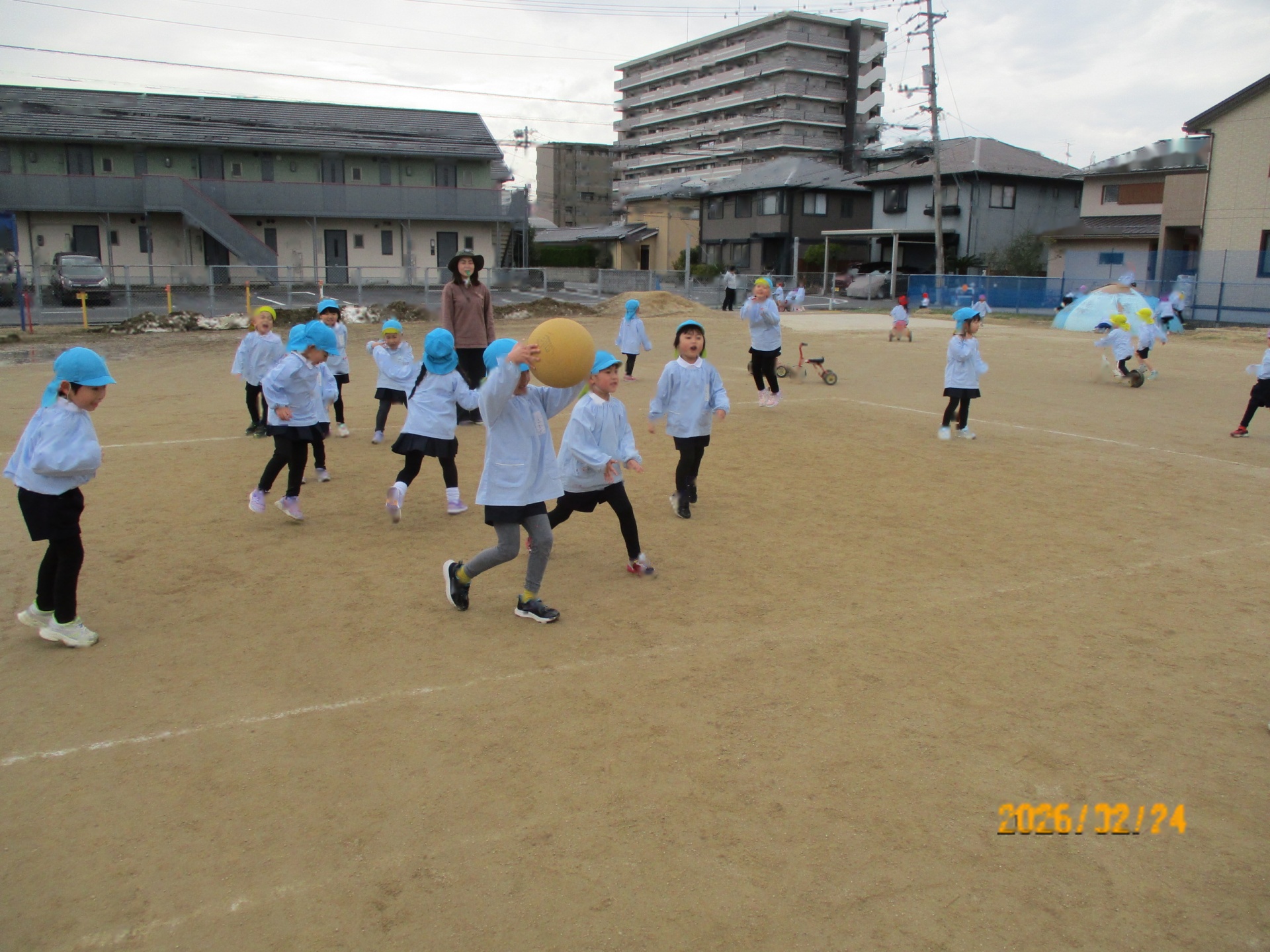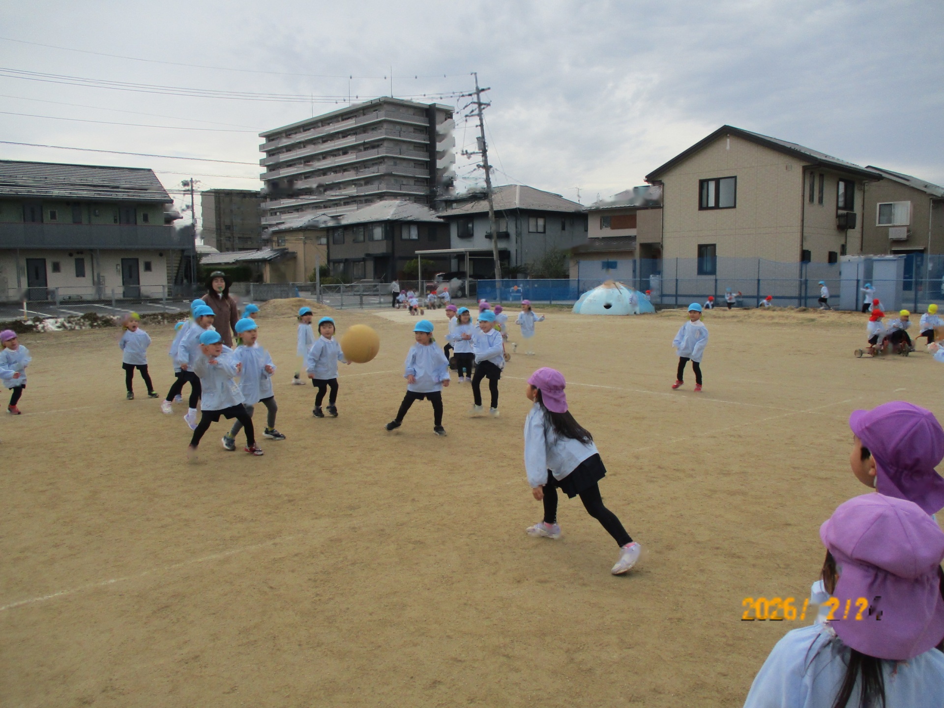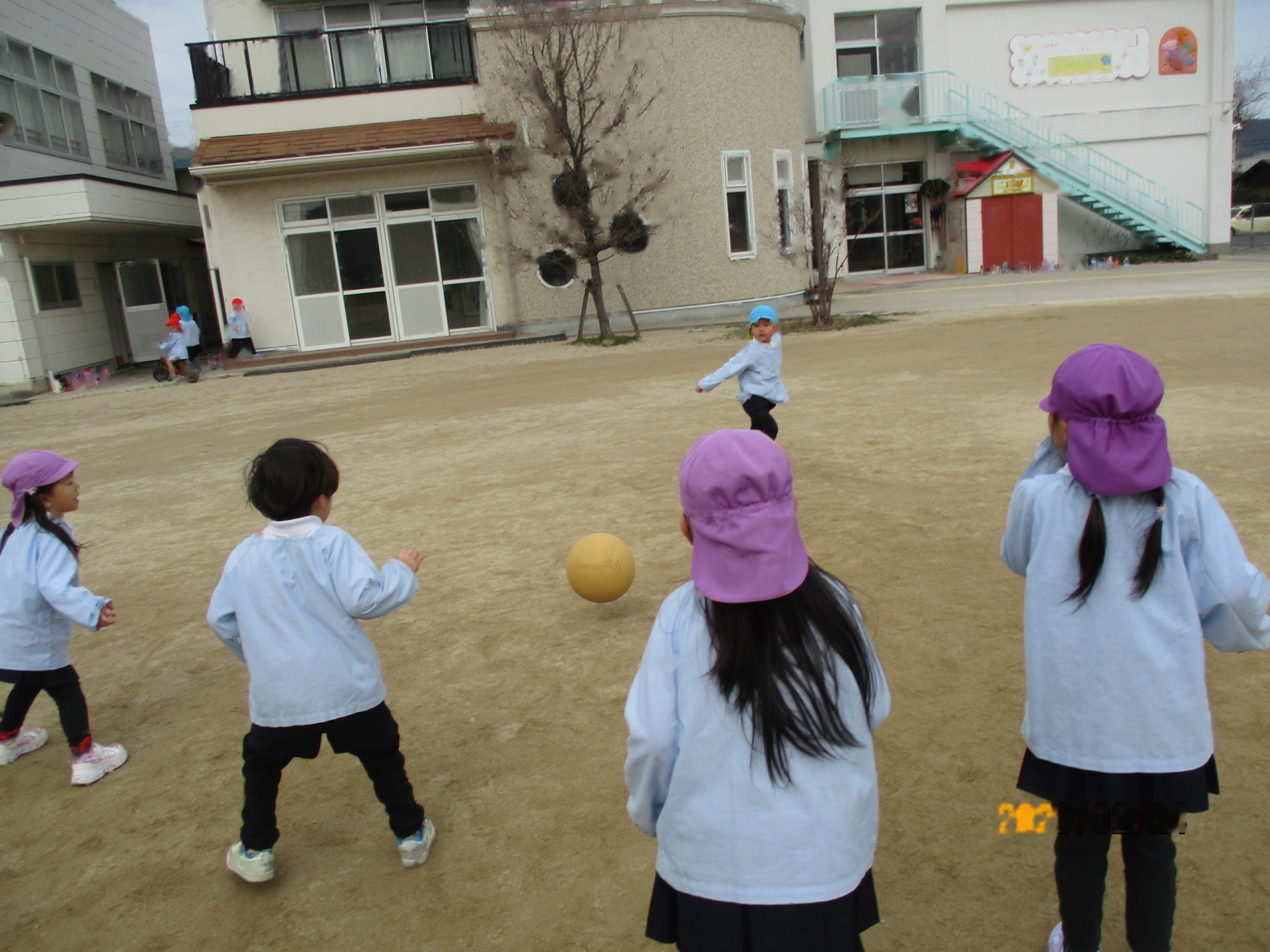 少しずつ暖かい日が増えてきました。天気のいい日は園庭に出掛けて元気に遊んでいます!今回はドッヂボールを楽しんでいる様子をお届けします!