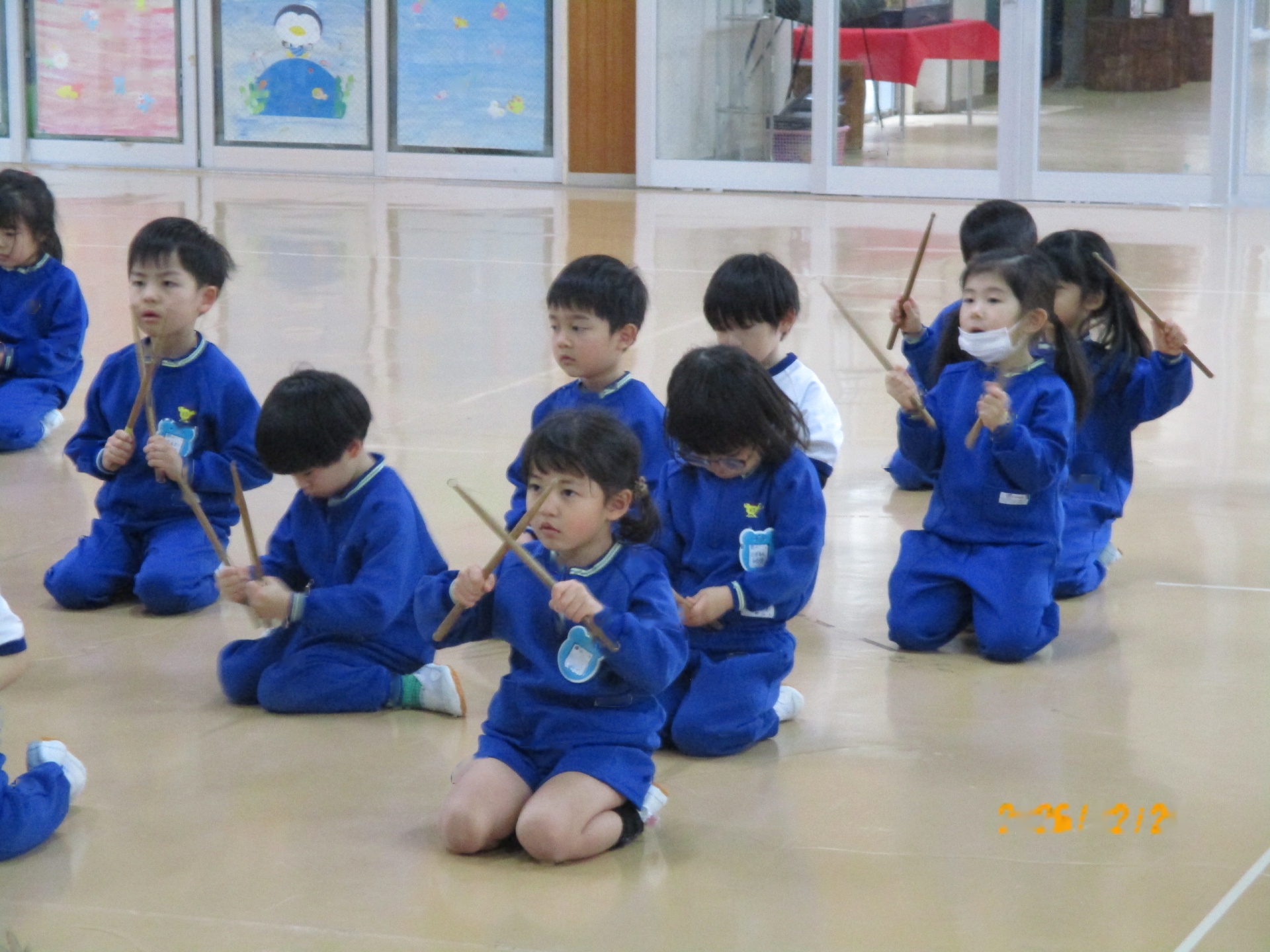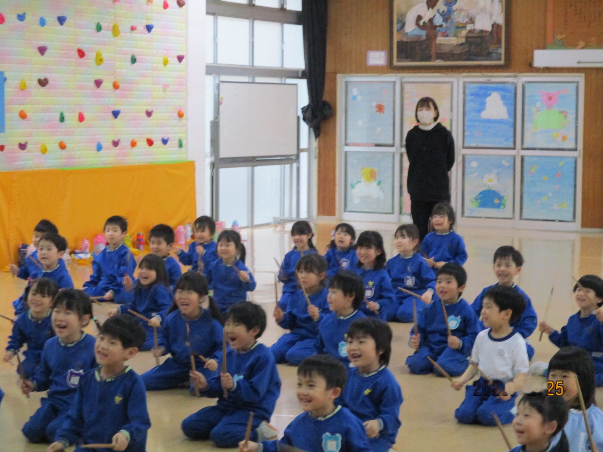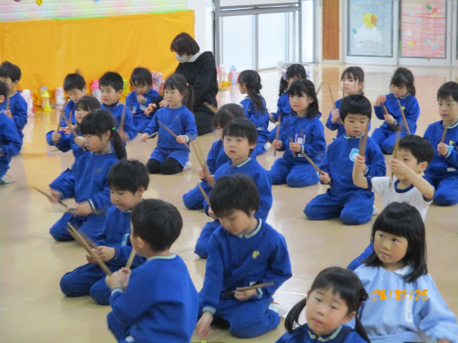 最後にバチ遊びをしました。実際の物を持つと大喜びの様子でした😊