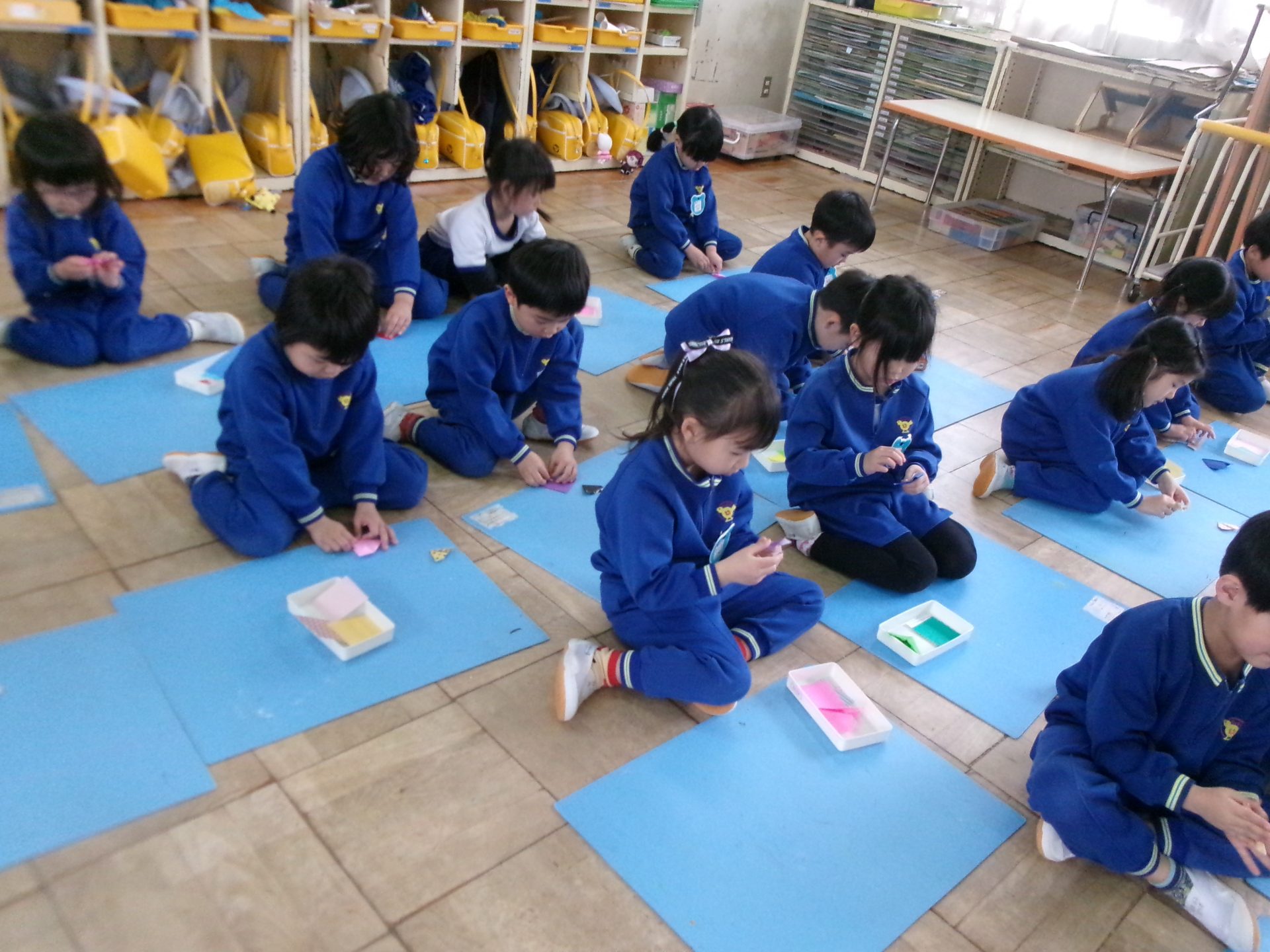ちなみに・・・「さくひん」の文字も丁寧に塗っていました☆文字を細かく虹色に塗るお友達が多かったです(#^^#)