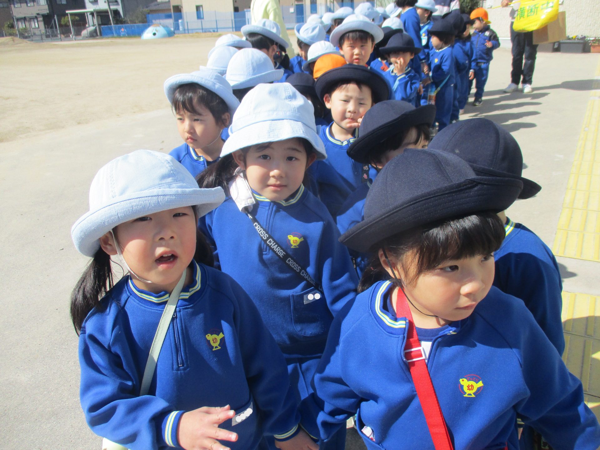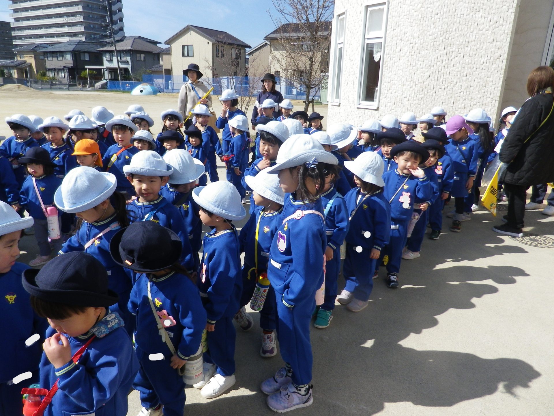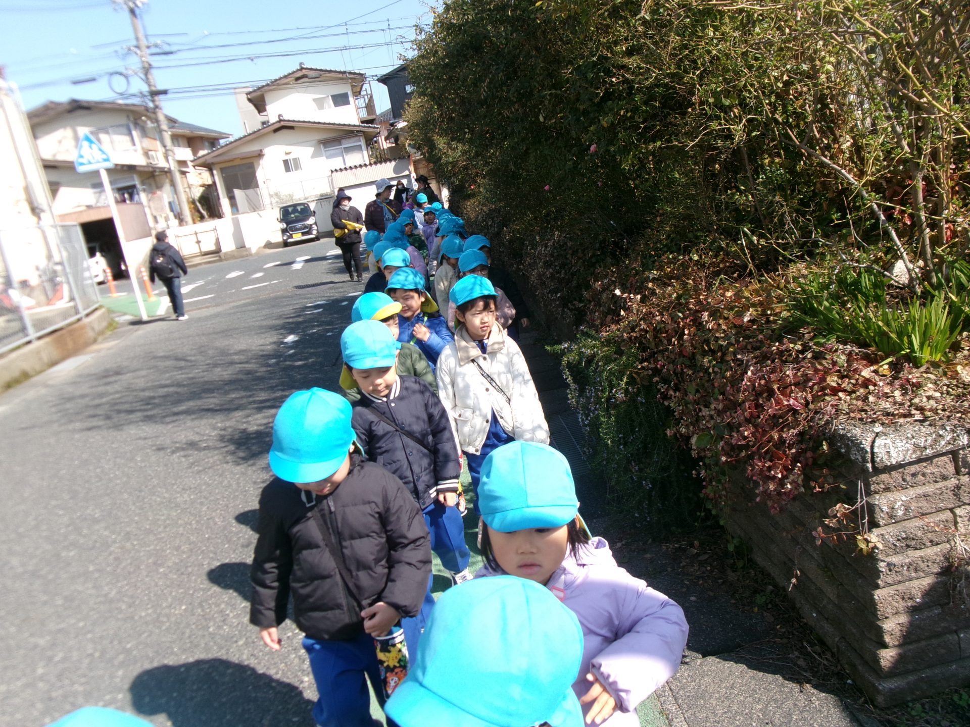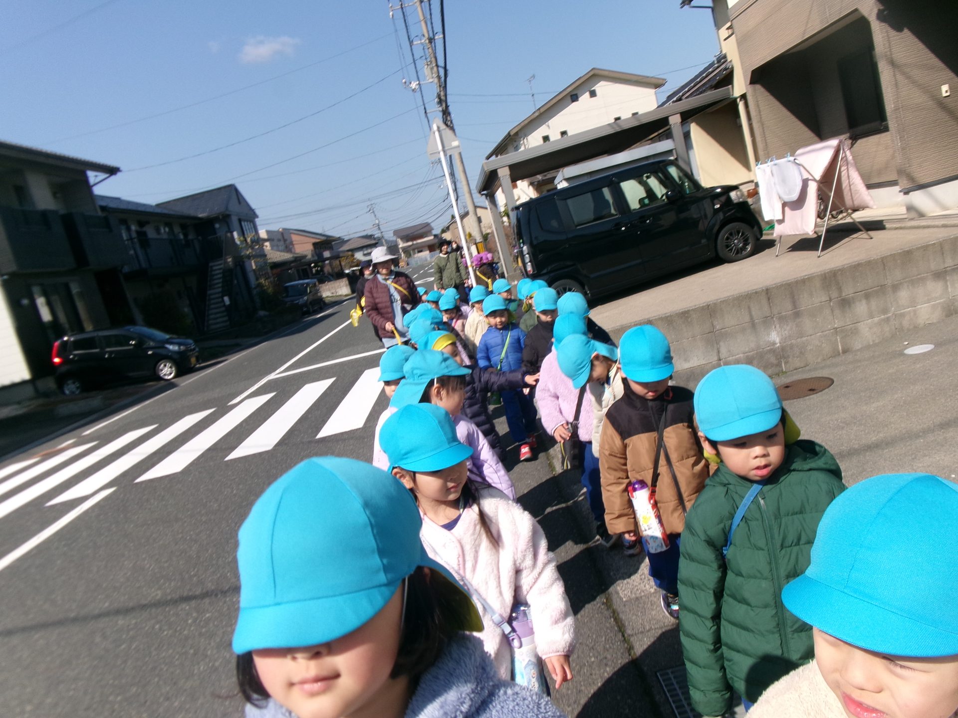 年中さんと2歳さんで近くの公園まで歩いて行きました。お兄さん、お姉さんが優しく手を繋いでくれたり、声をかけてくれたりして、嬉しそうに歩く2歳さんでした♪