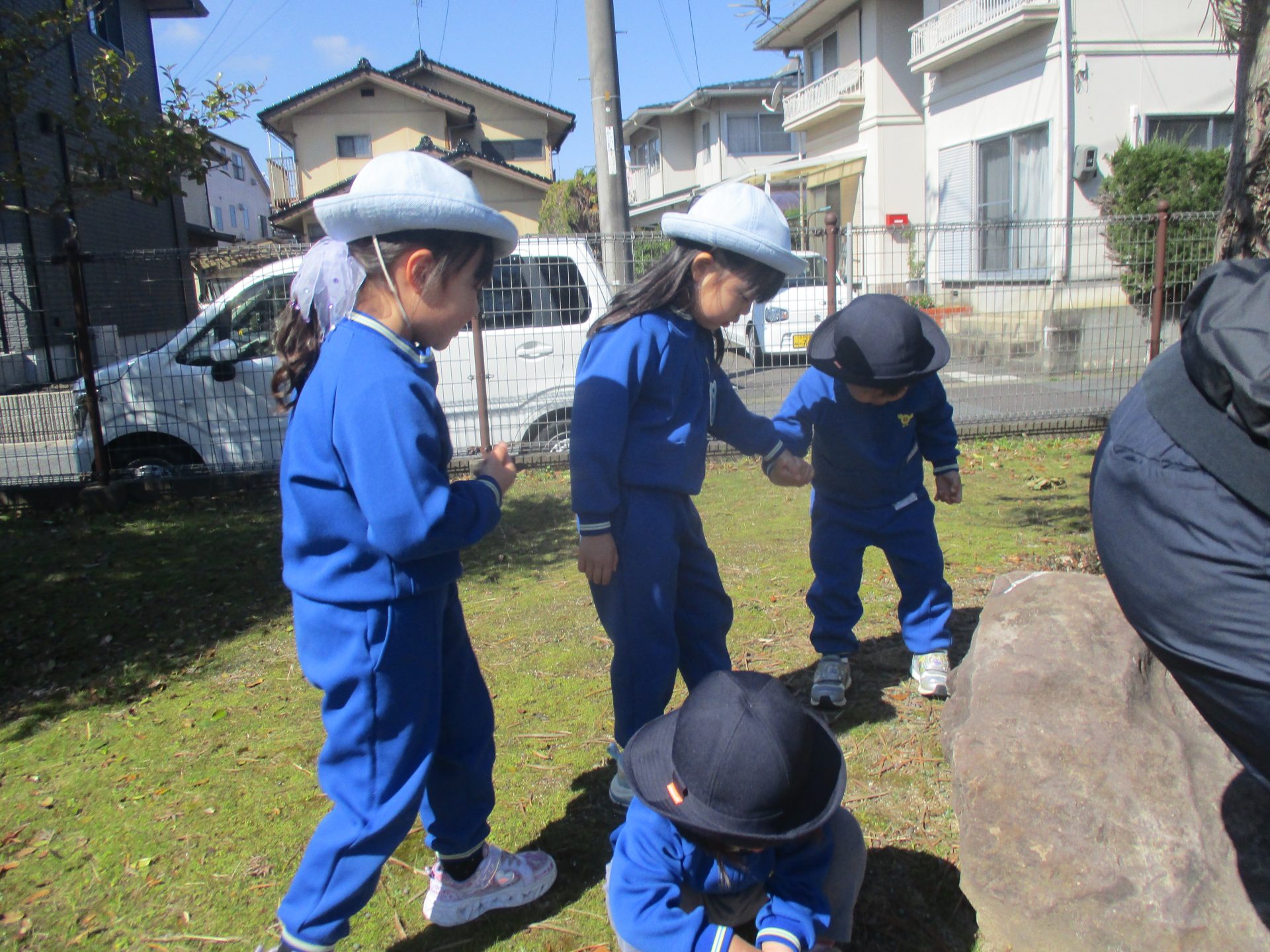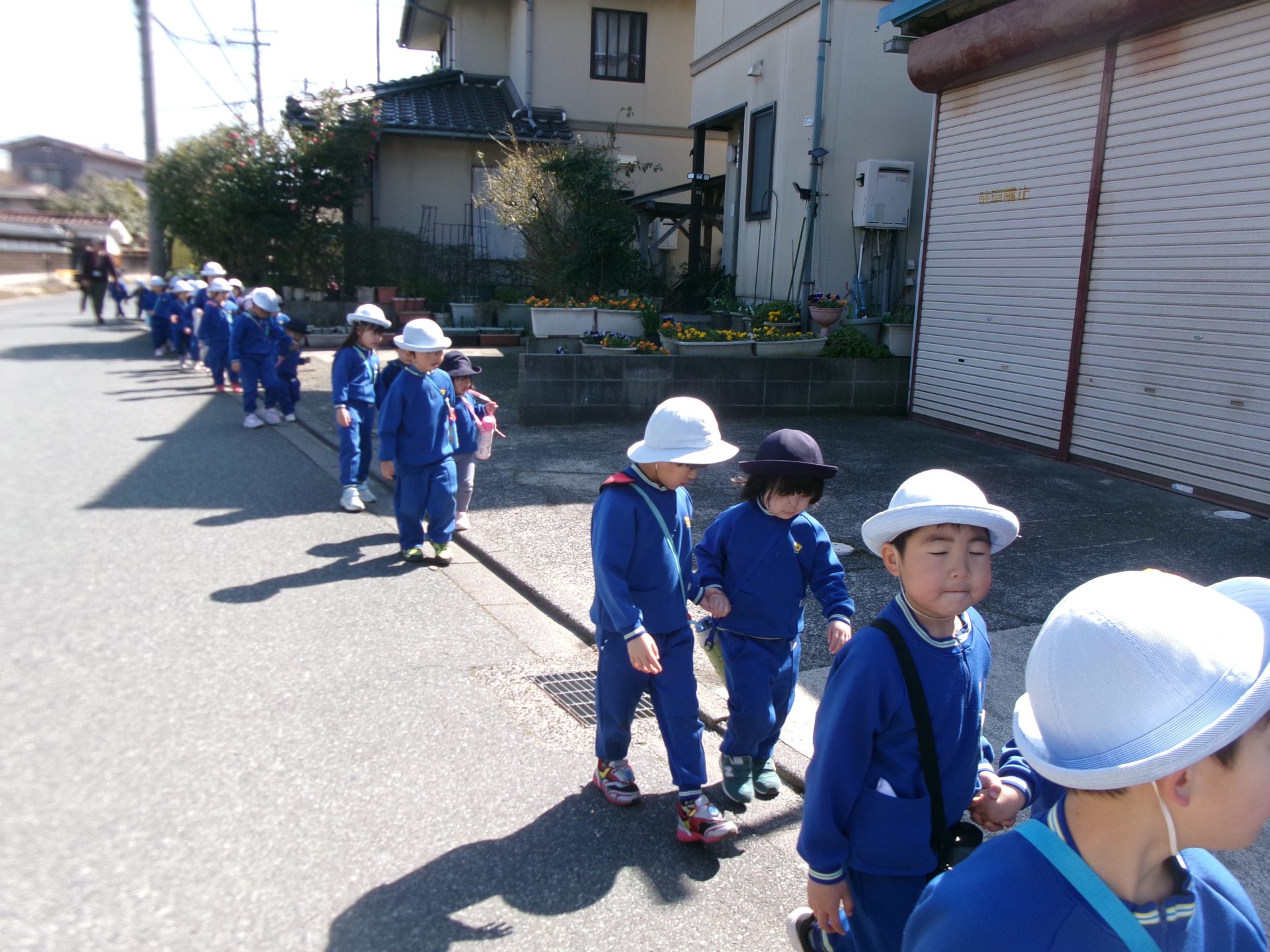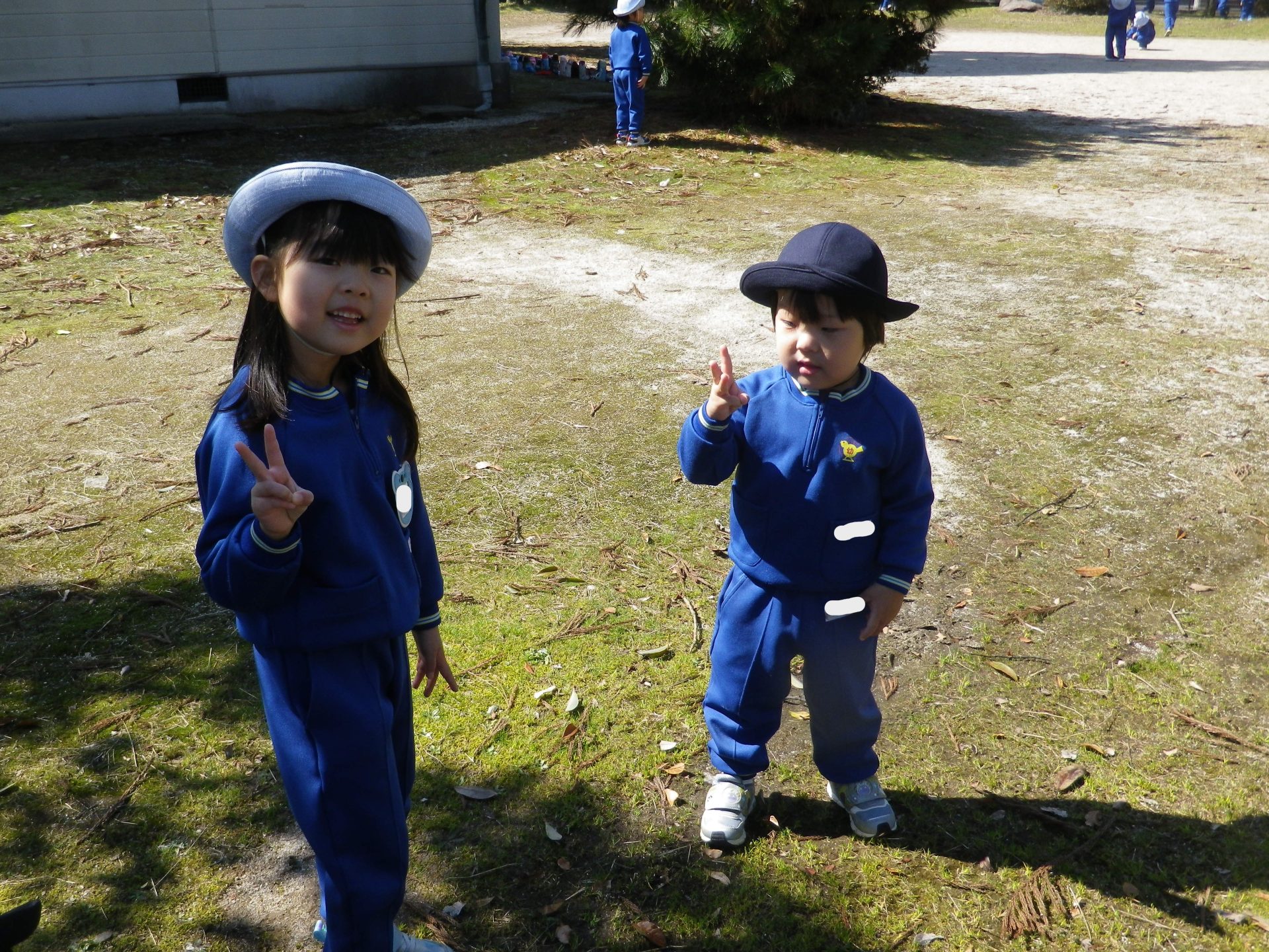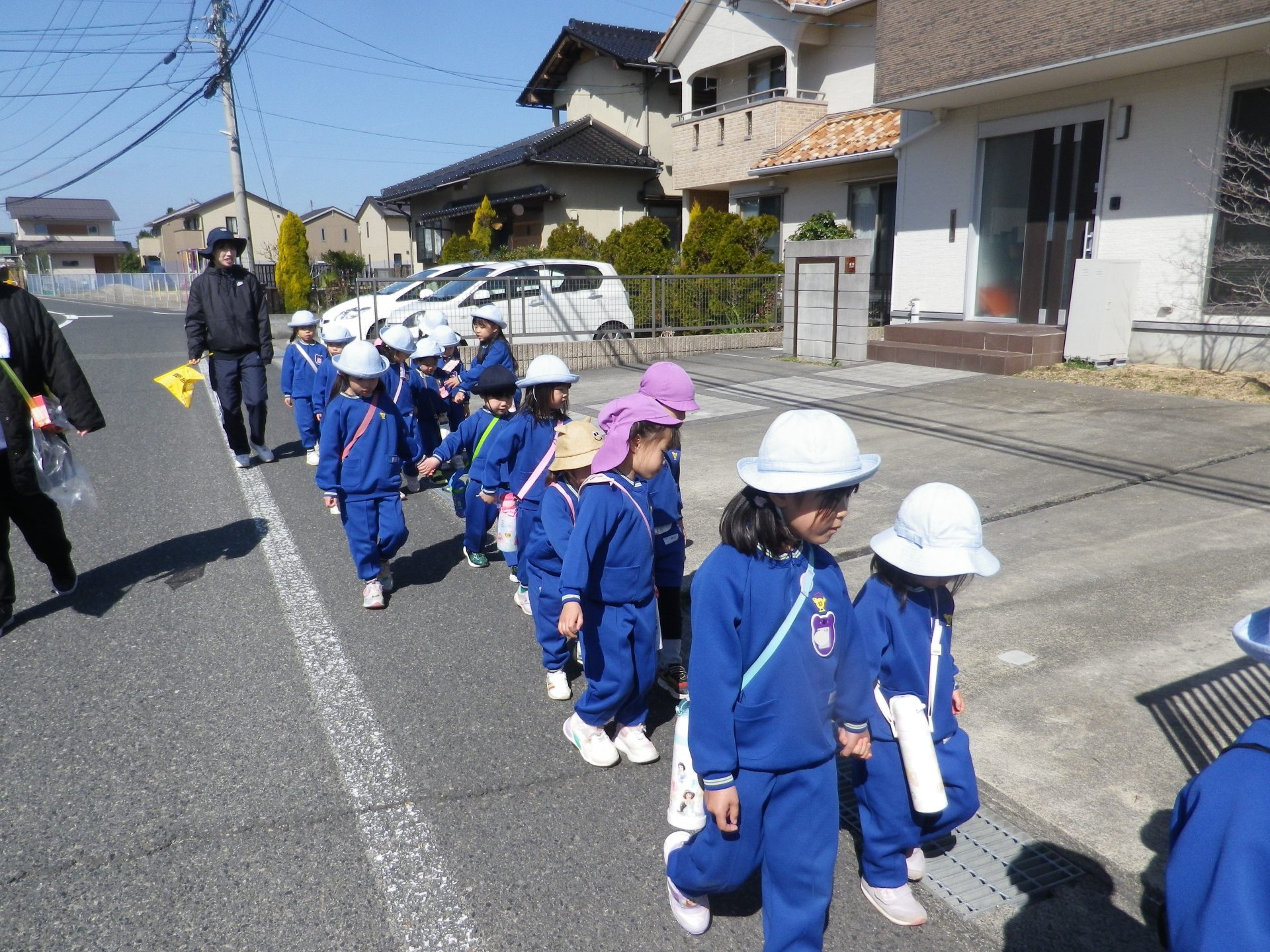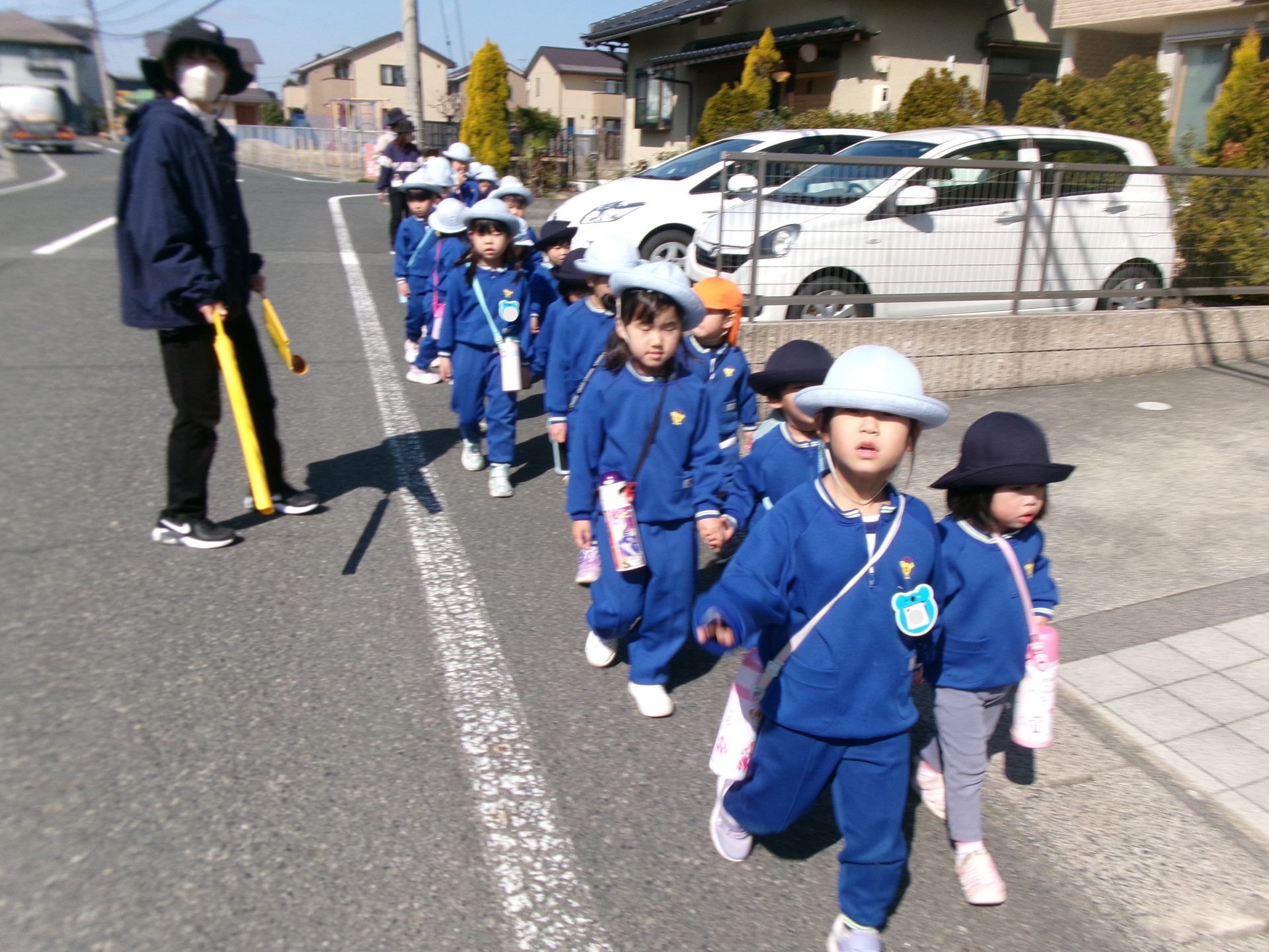 年中さんと2歳さんで近くの公園まで歩いて行きました。お兄さん、お姉さんが優しく手を繋いでくれたり、声をかけてくれたりして、嬉しそうに歩く2歳さんでした♪