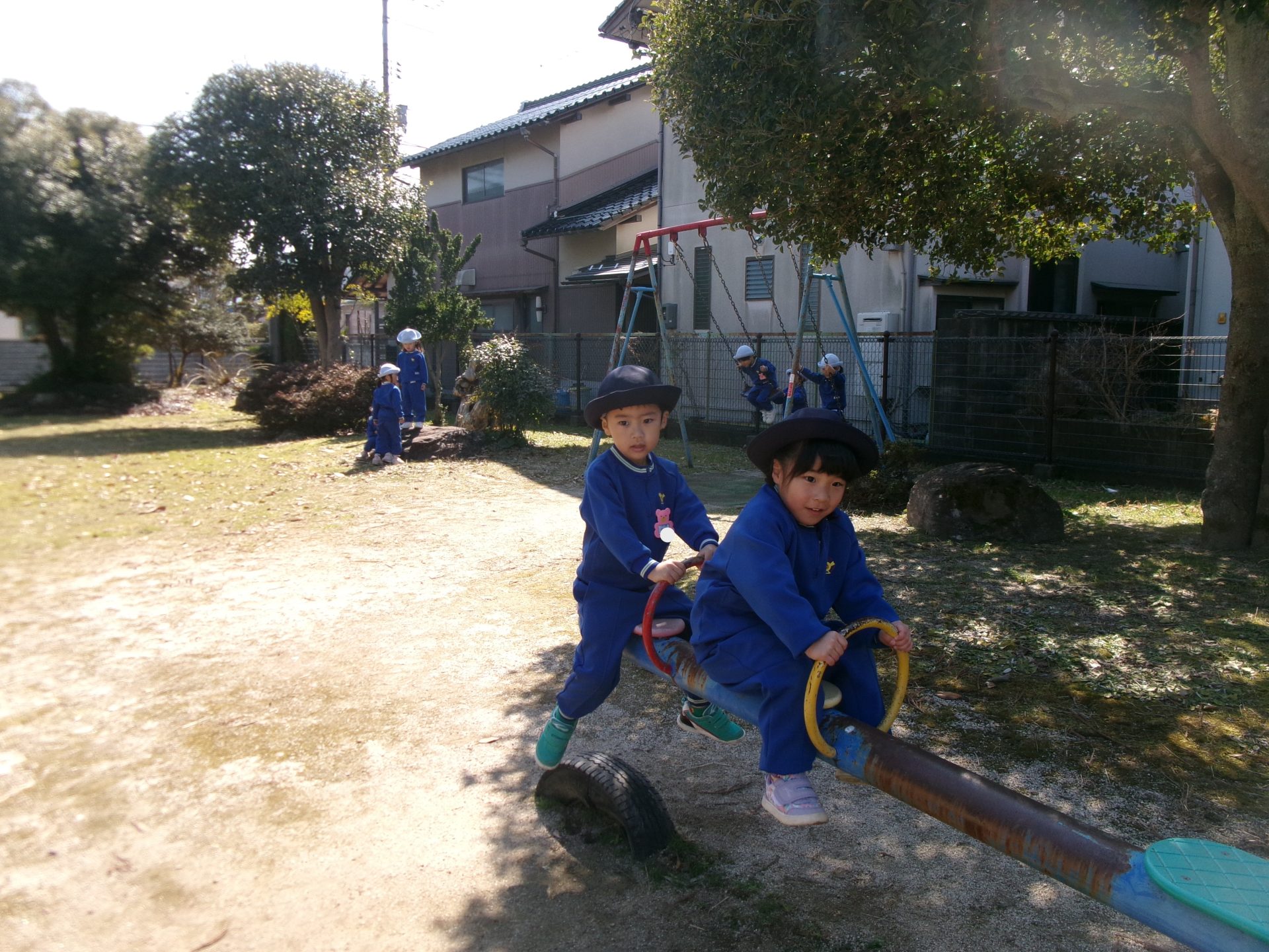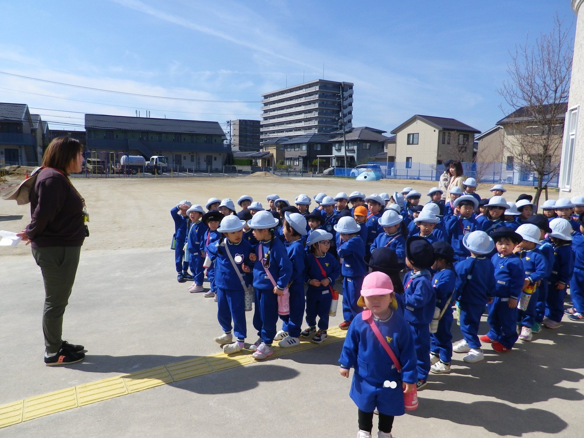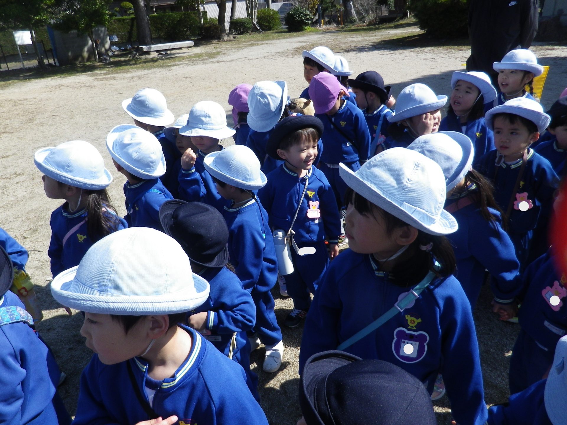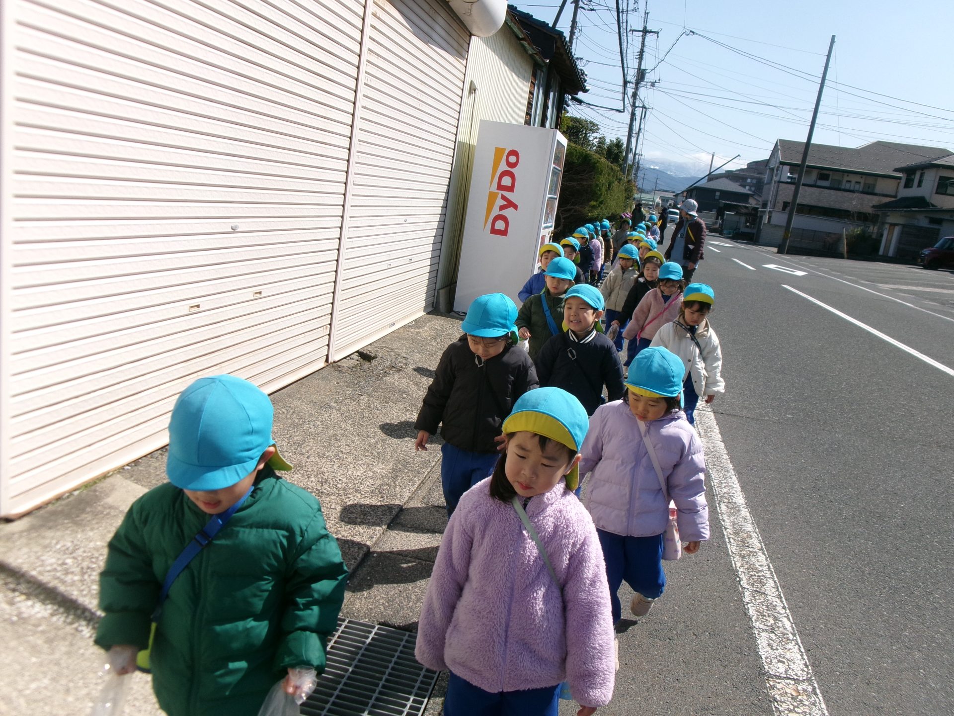 年中さんと2歳さんで近くの公園まで歩いて行きました。お兄さん、お姉さんが優しく手を繋いでくれたり、声をかけてくれたりして、嬉しそうに歩く2歳さんでした♪