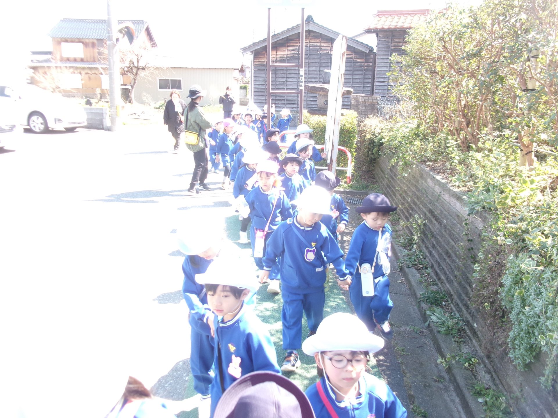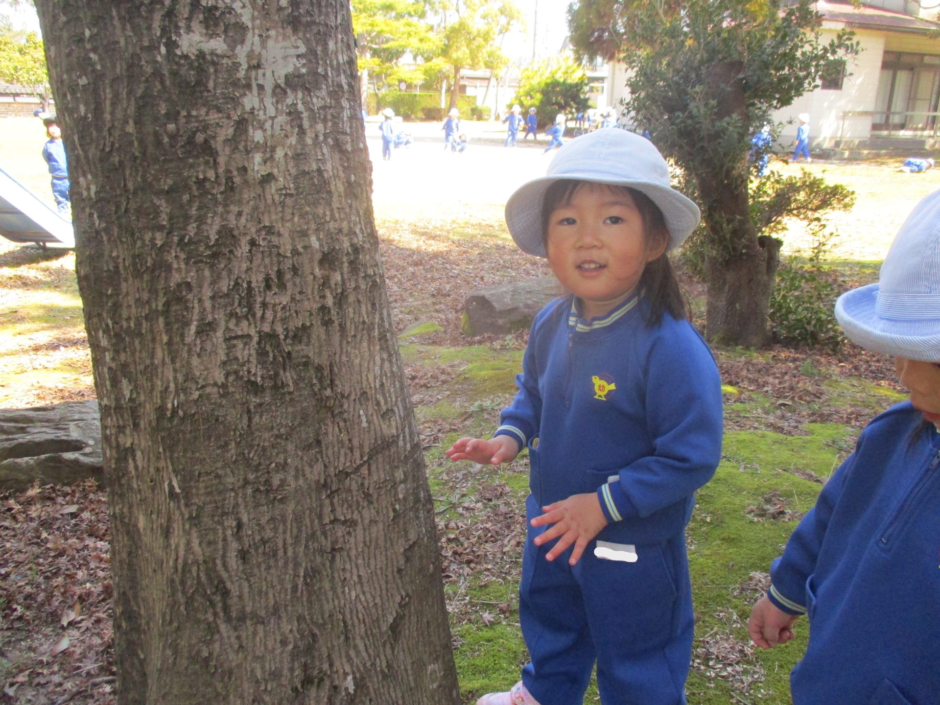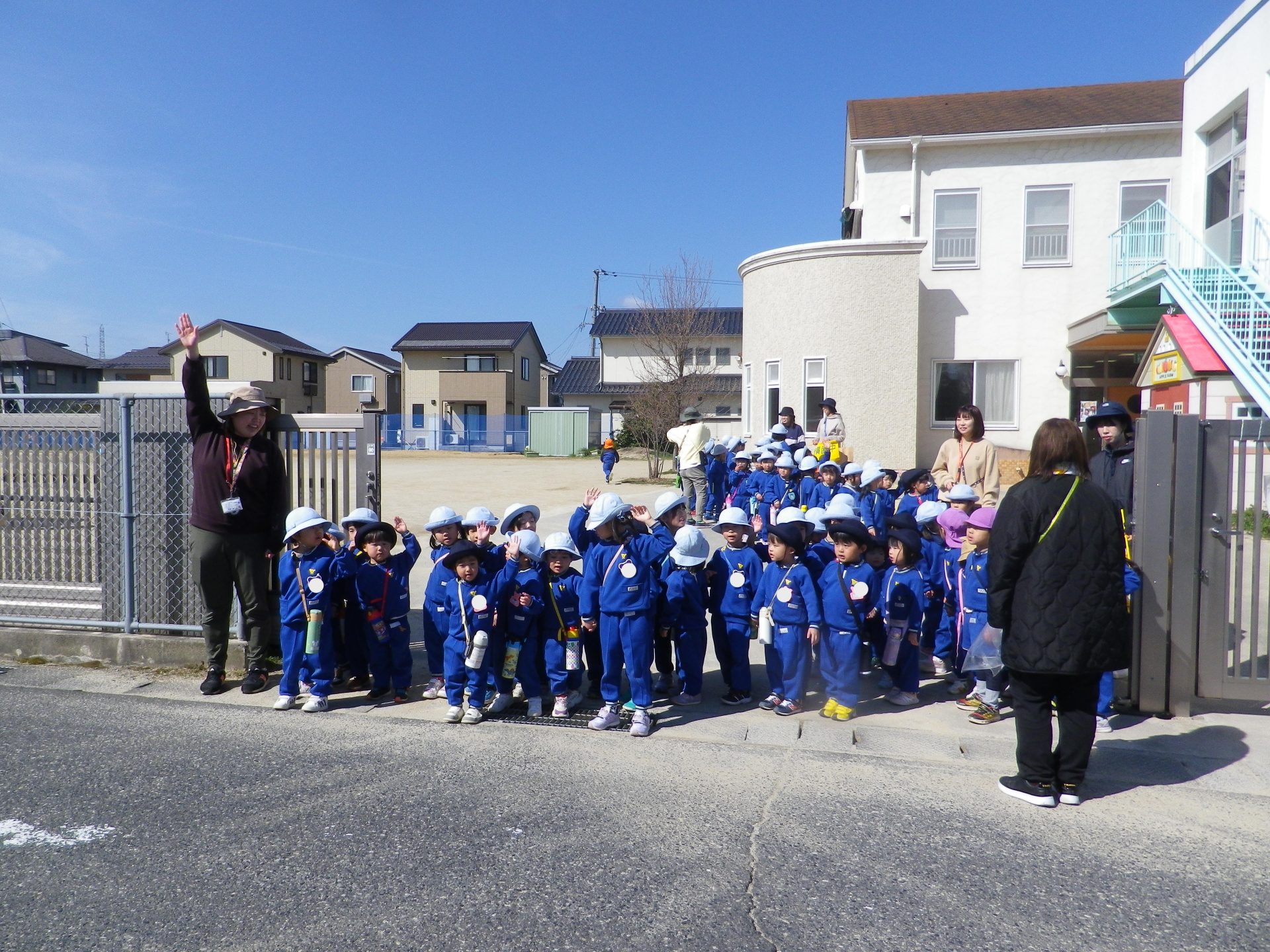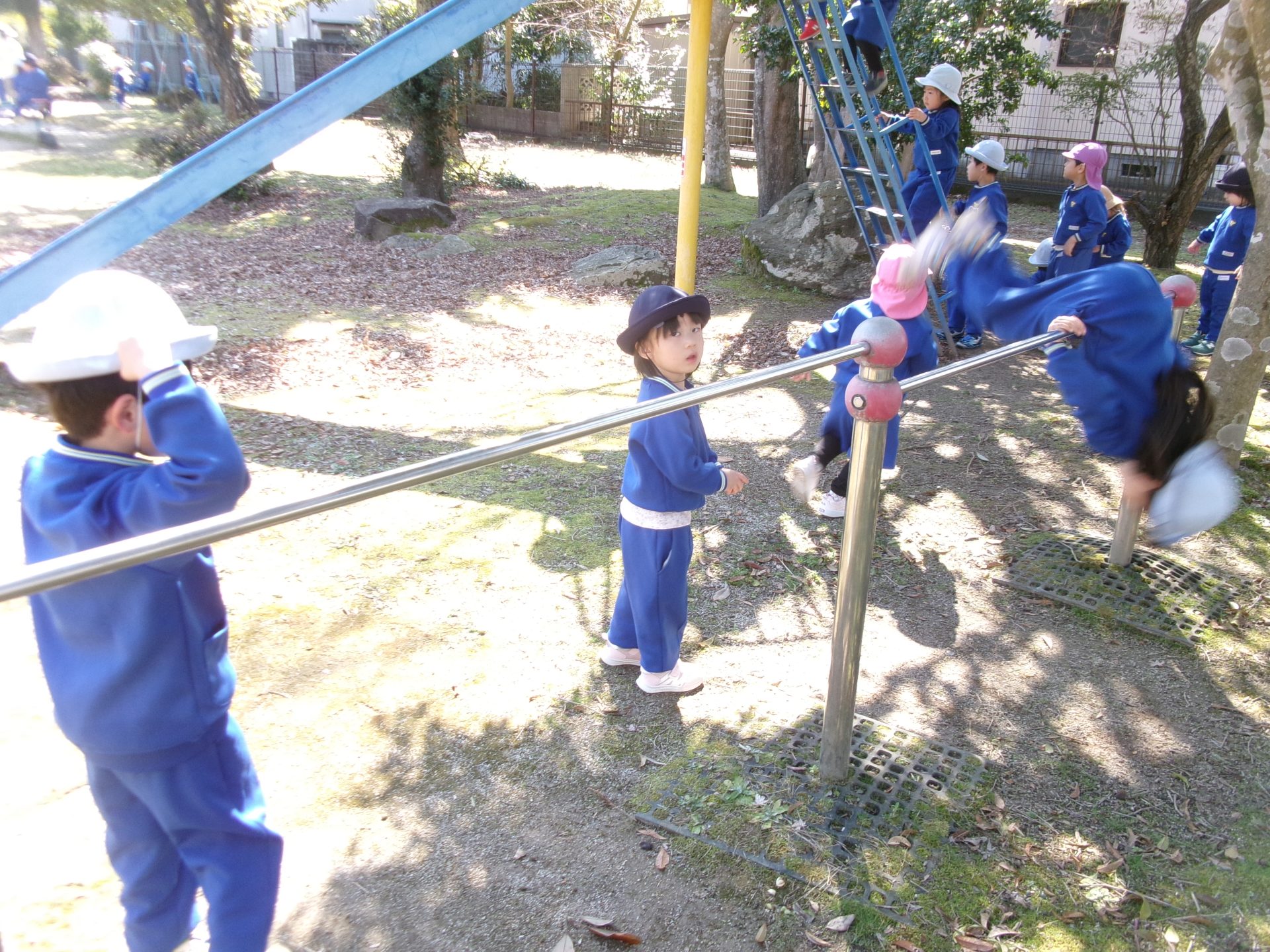 年中さんと2歳さんで近くの公園まで歩いて行きました。お兄さん、お姉さんが優しく手を繋いでくれたり、声をかけてくれたりして、嬉しそうに歩く2歳さんでした♪