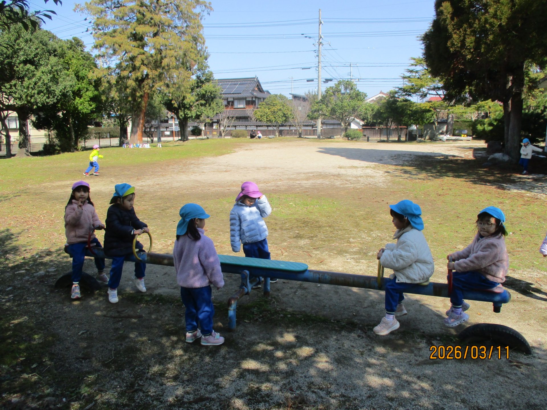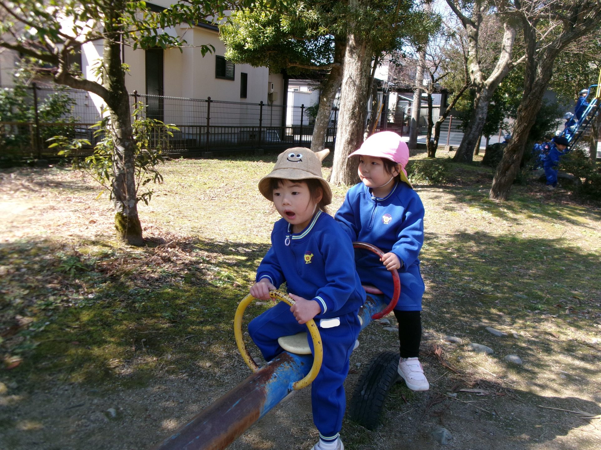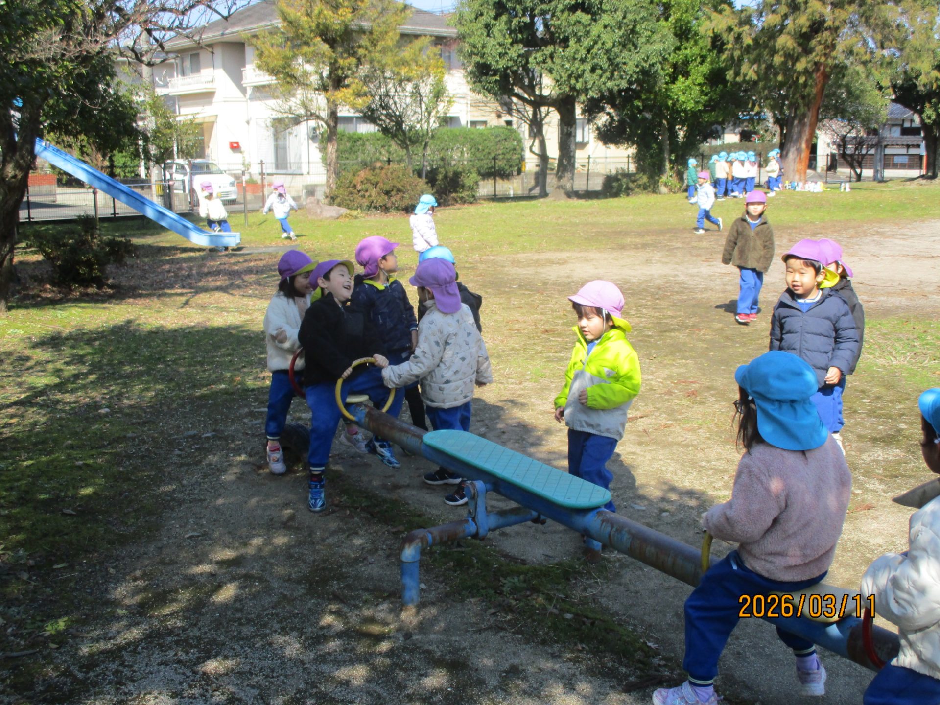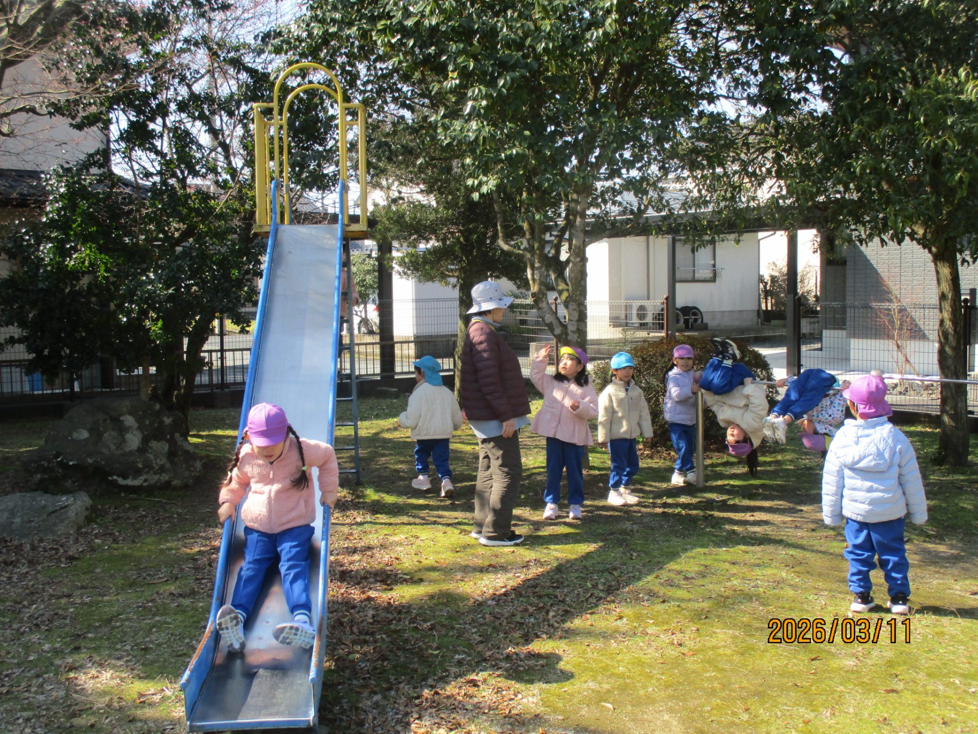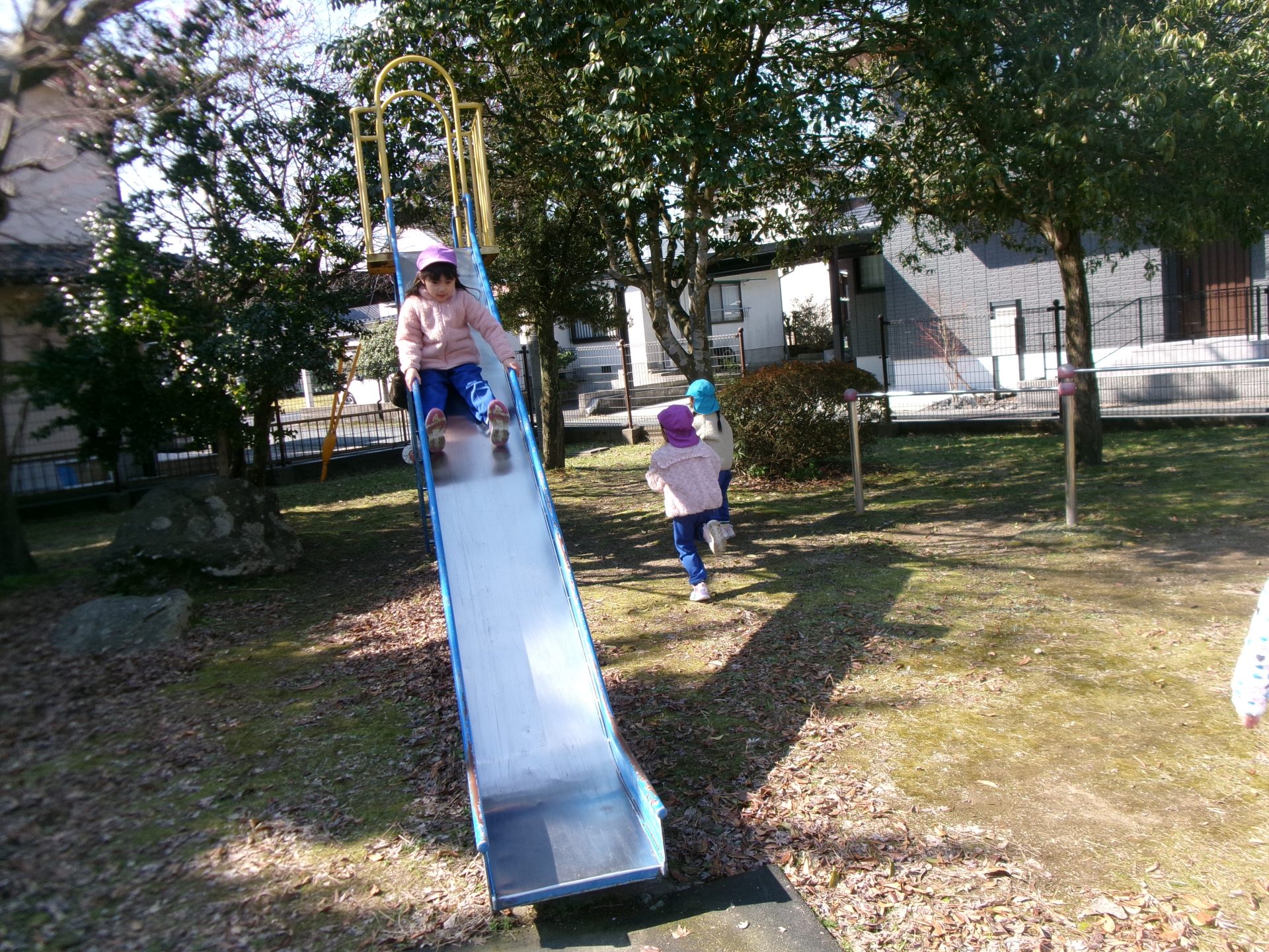 公園に到着!好きな遊具を見つけて遊んだり、氷鬼や春見つけを楽しんだりする子ども達でした。なんとつくしも発見しました!春を感じながらたっぷりと楽しみました♪