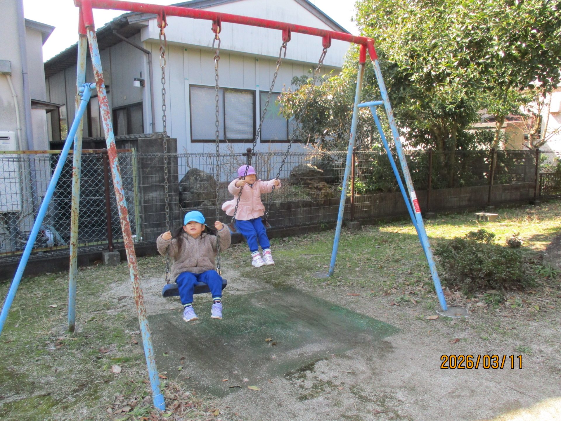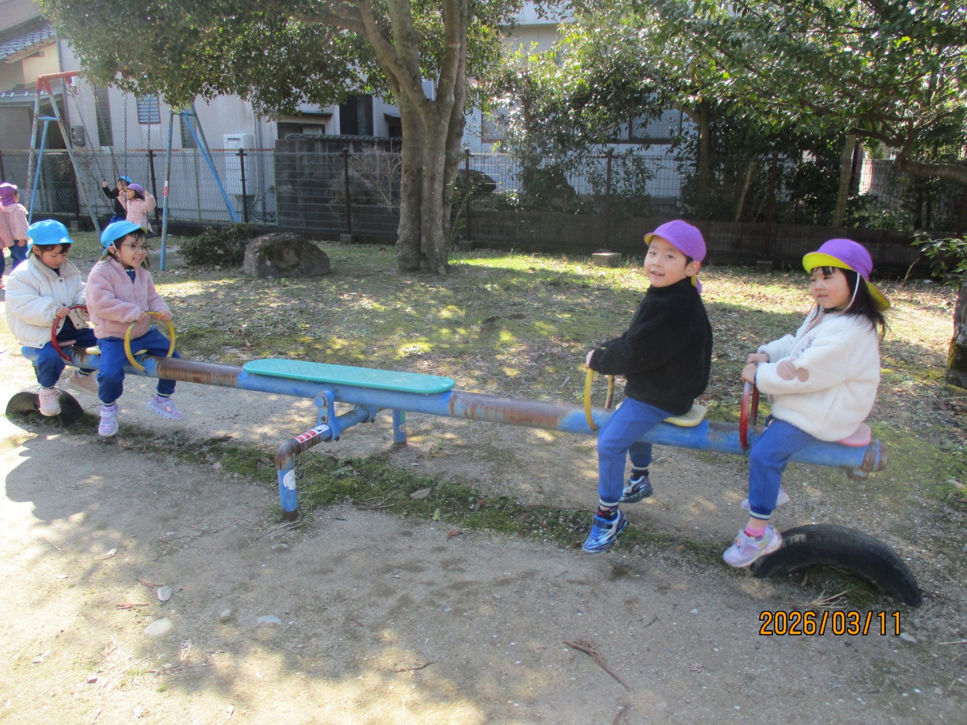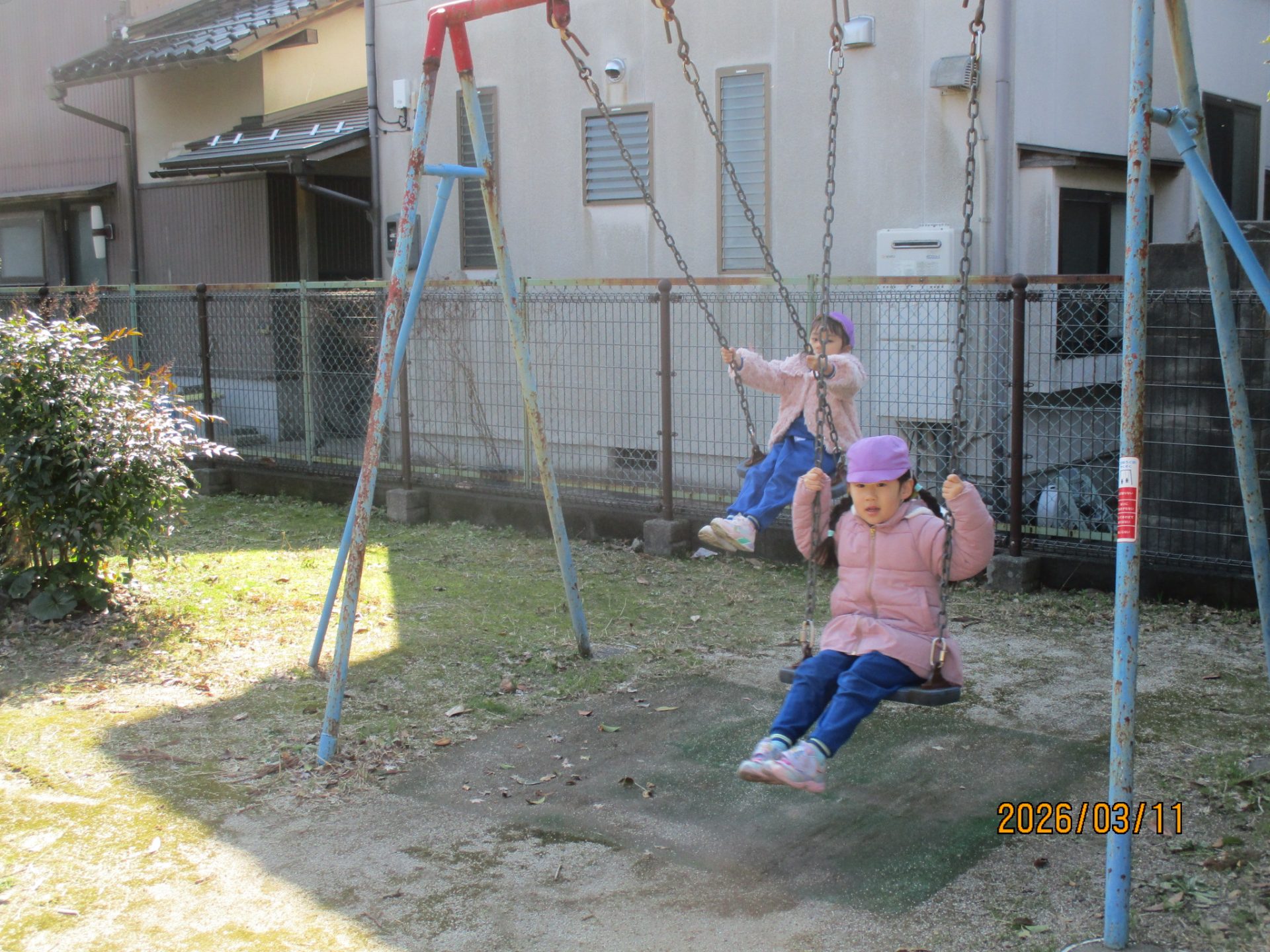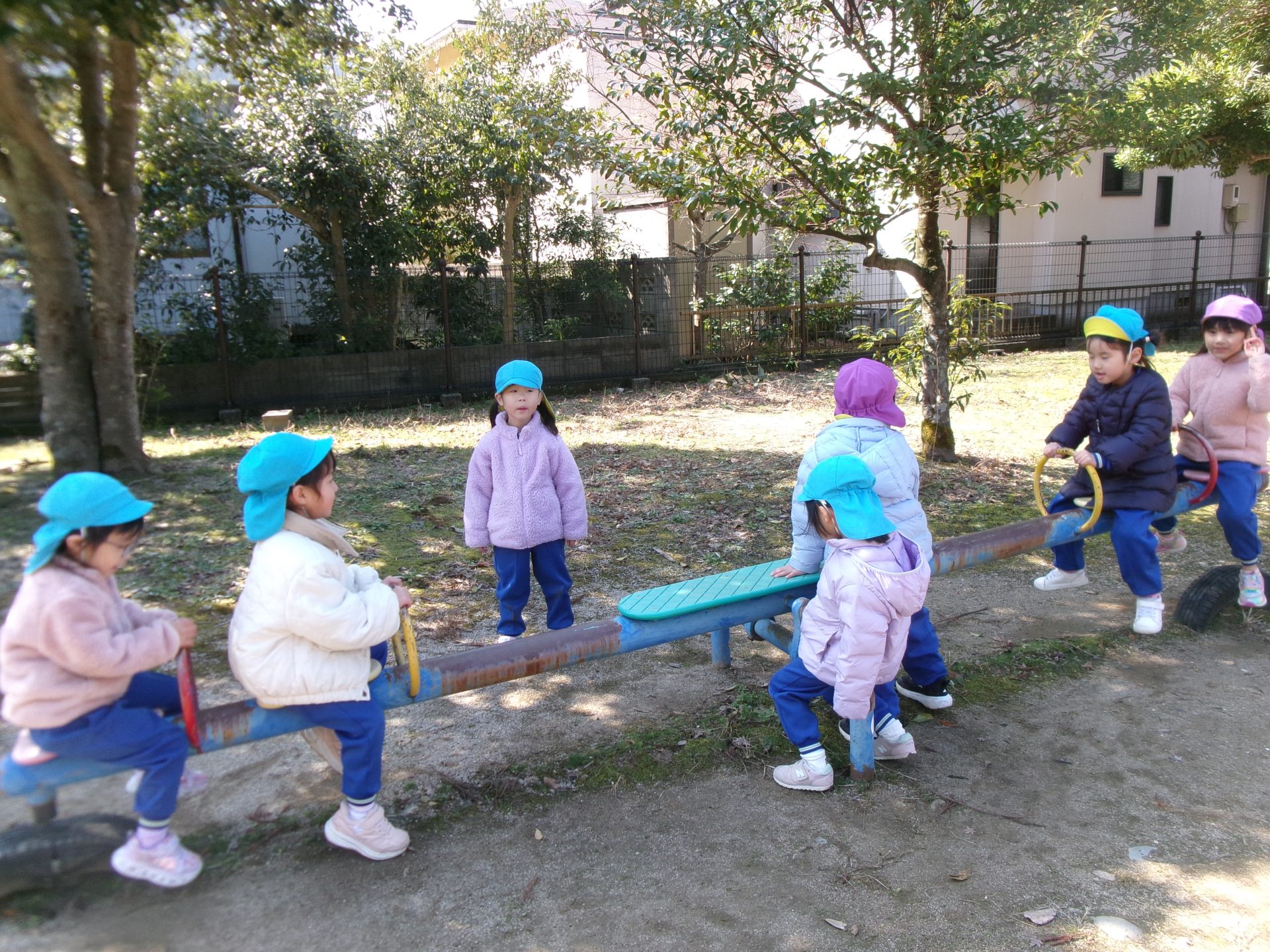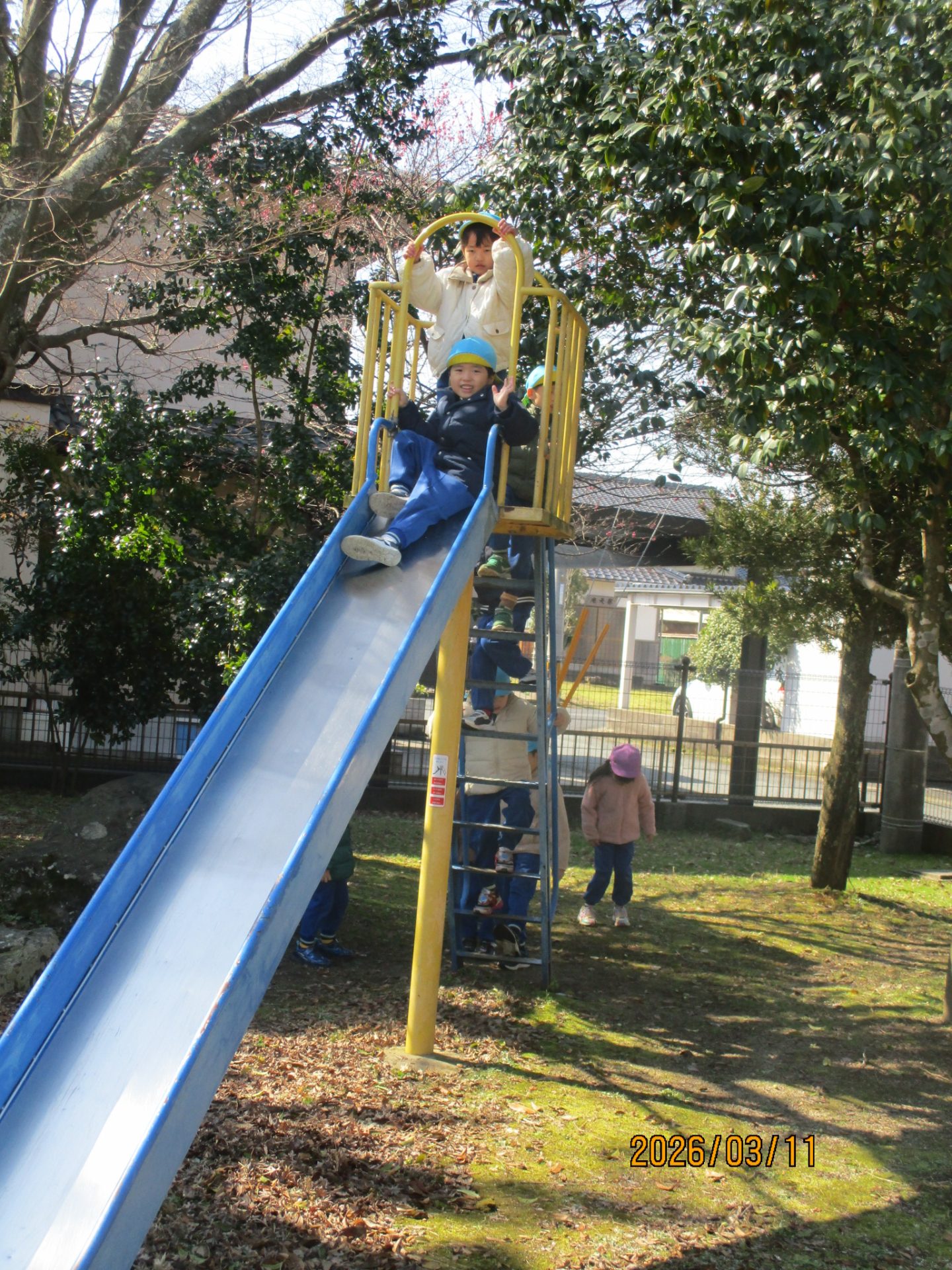 公園に到着!好きな遊具を見つけて遊んだり、氷鬼や春見つけを楽しんだりする子ども達でした。なんとつくしも発見しました!春を感じながらたっぷりと楽しみました♪
