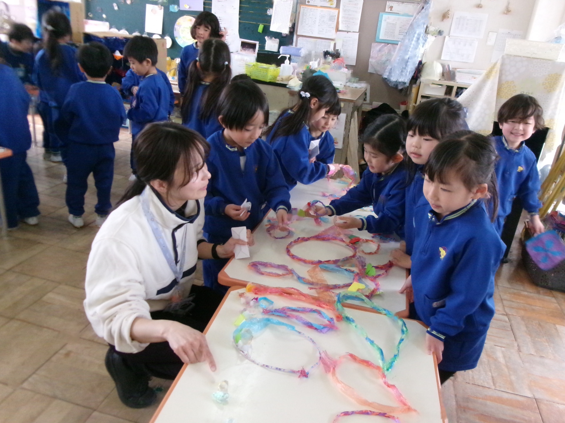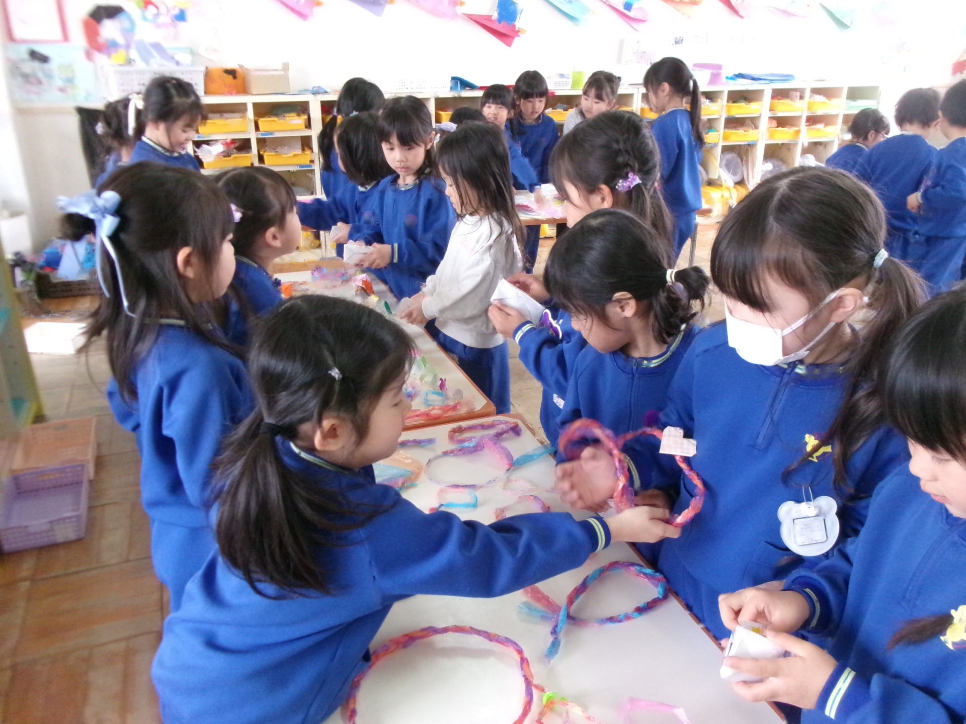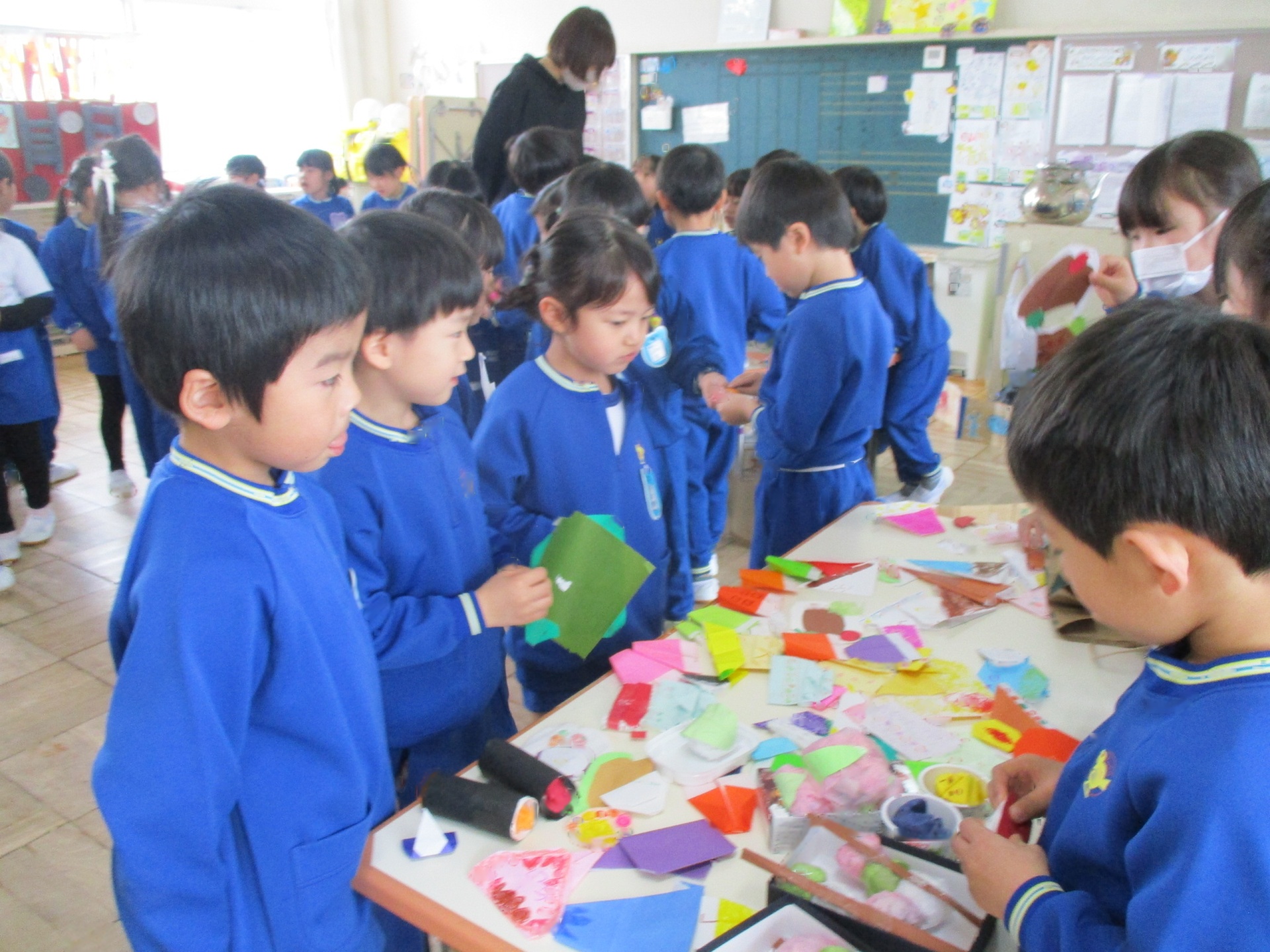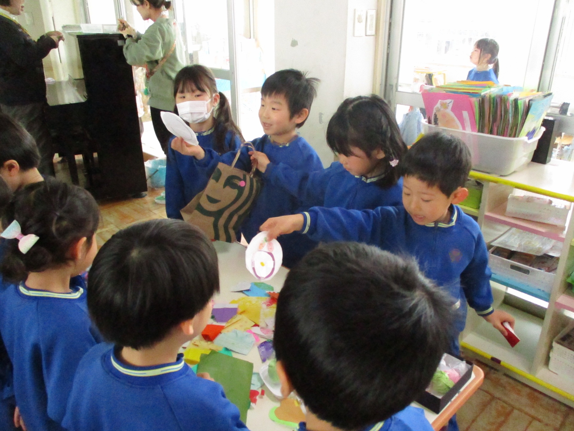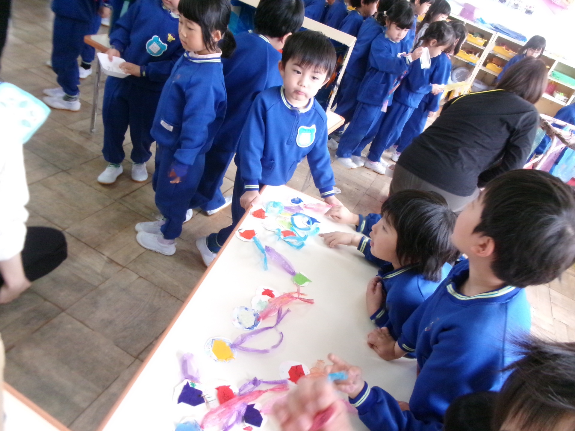 年中組でおみせやさんごっこをしました!すみれ組では「のりものやさん・れすとらん・さかなやさん・はなやさん・ふくやさん」ゆり組では「すいぞくかん・あくせさりーやさん・ゆきのけっしょうやさん・げーむこーなー」がオープンしました!一年間いろいろな制作で身についた力を発揮して友達と一緒に作ってきました!お客さんは来てくれるかな?「いらっしゃいませ!!」