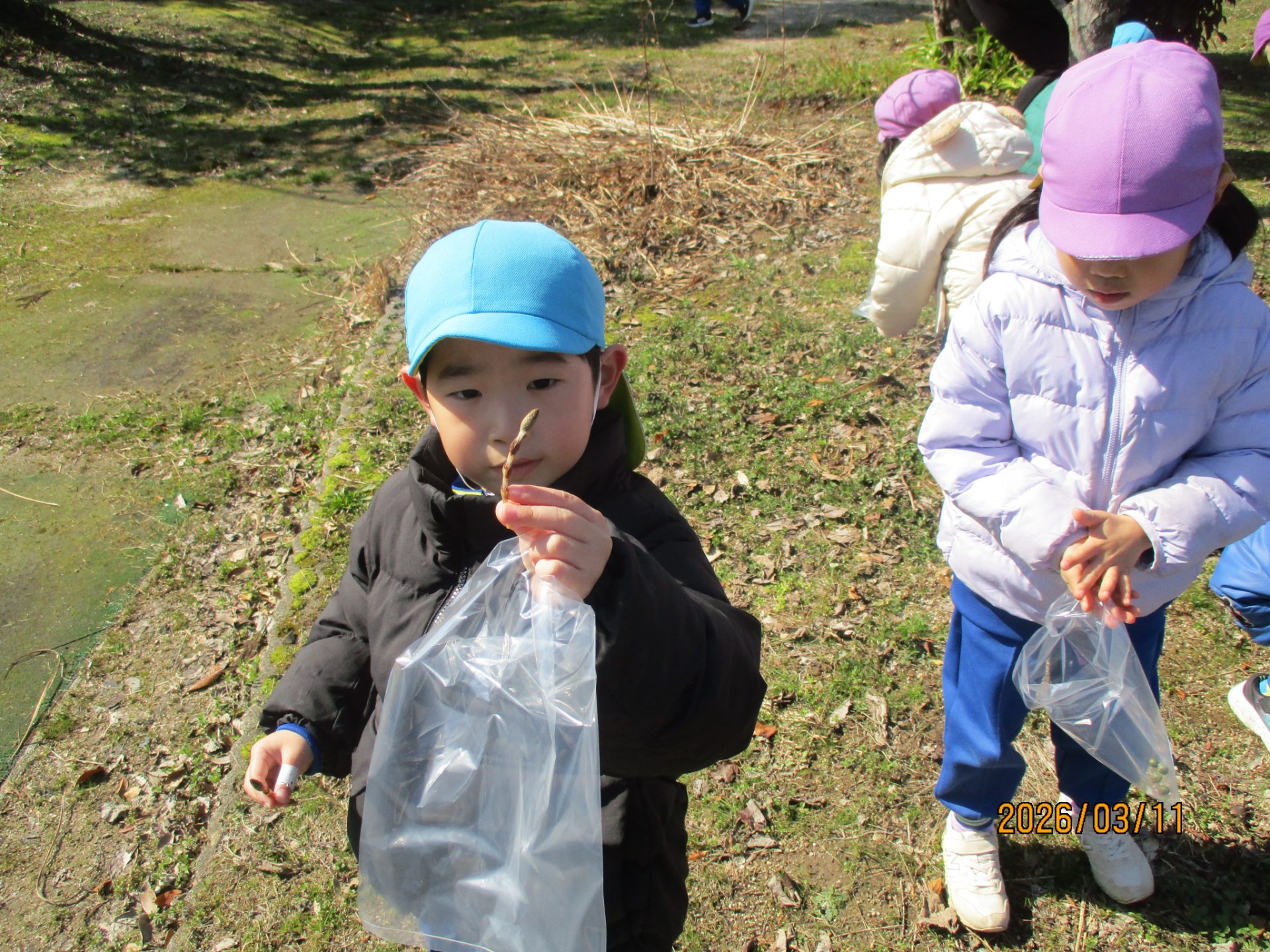 そして!公園には「春」が😊つくしを見つけて「春見つけだ!年長組になるんだ!」と大喜びでした!