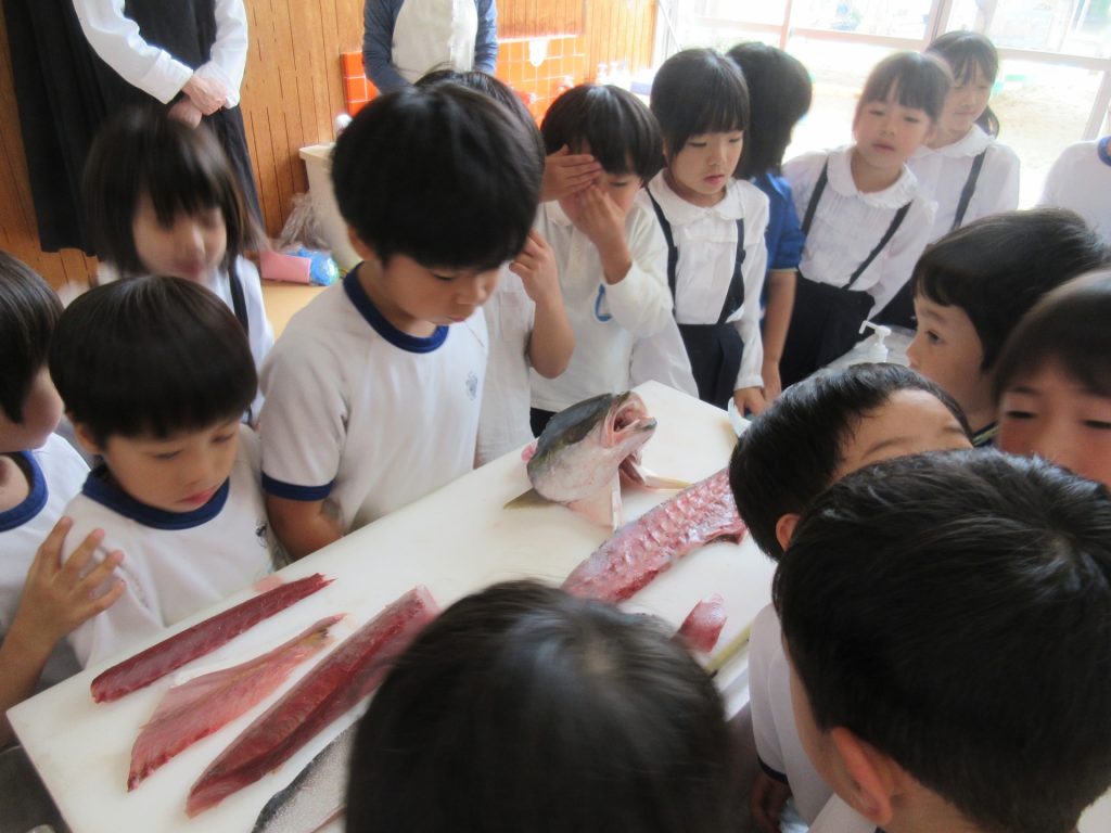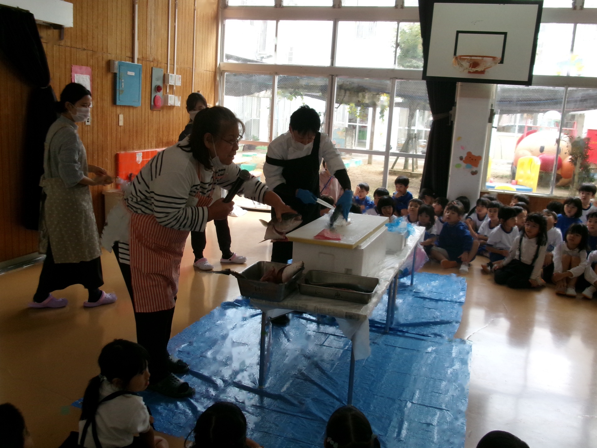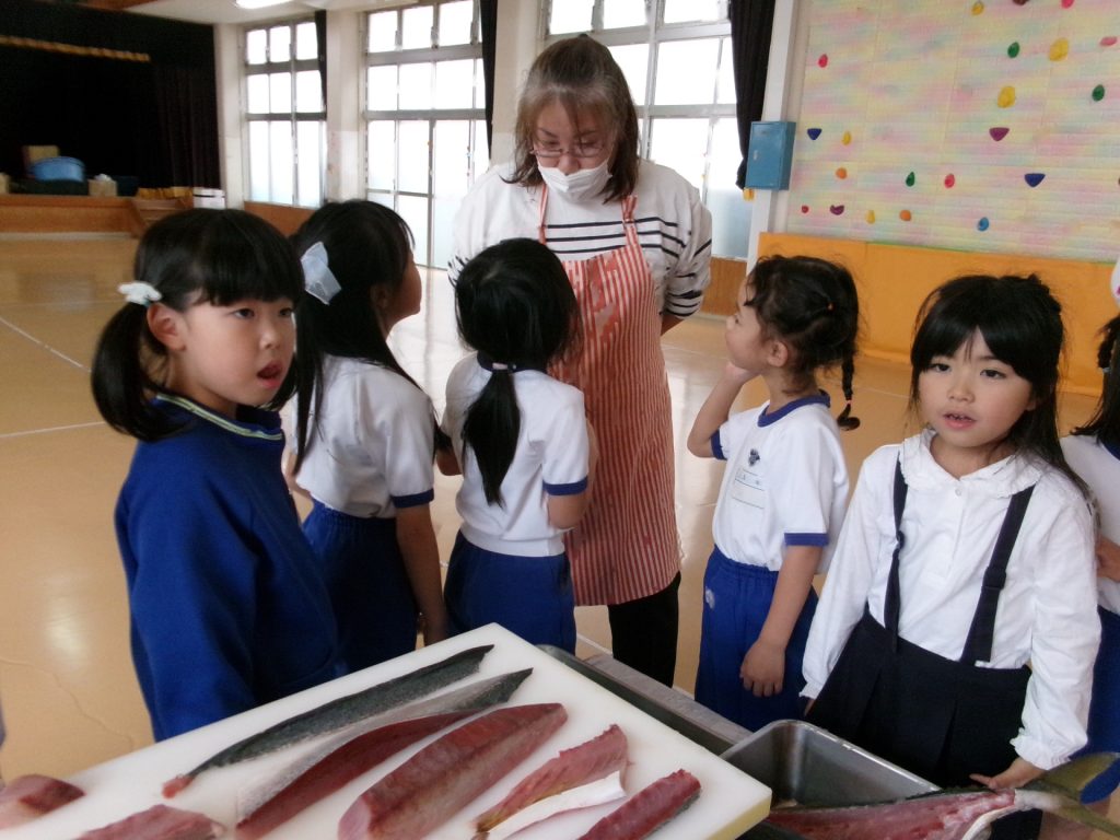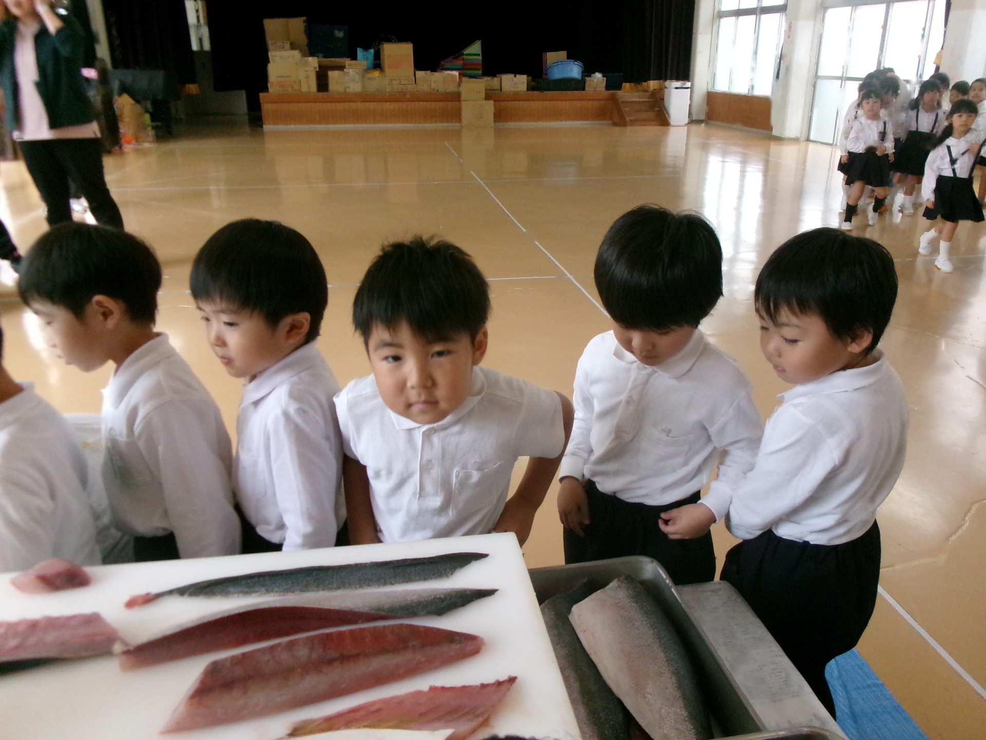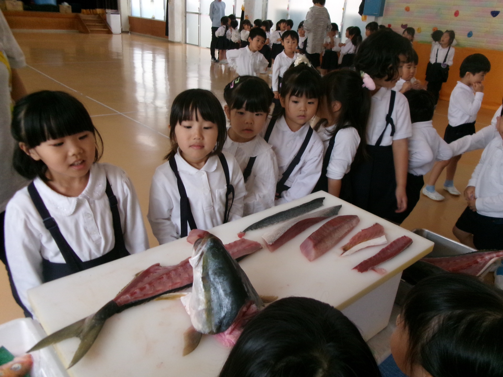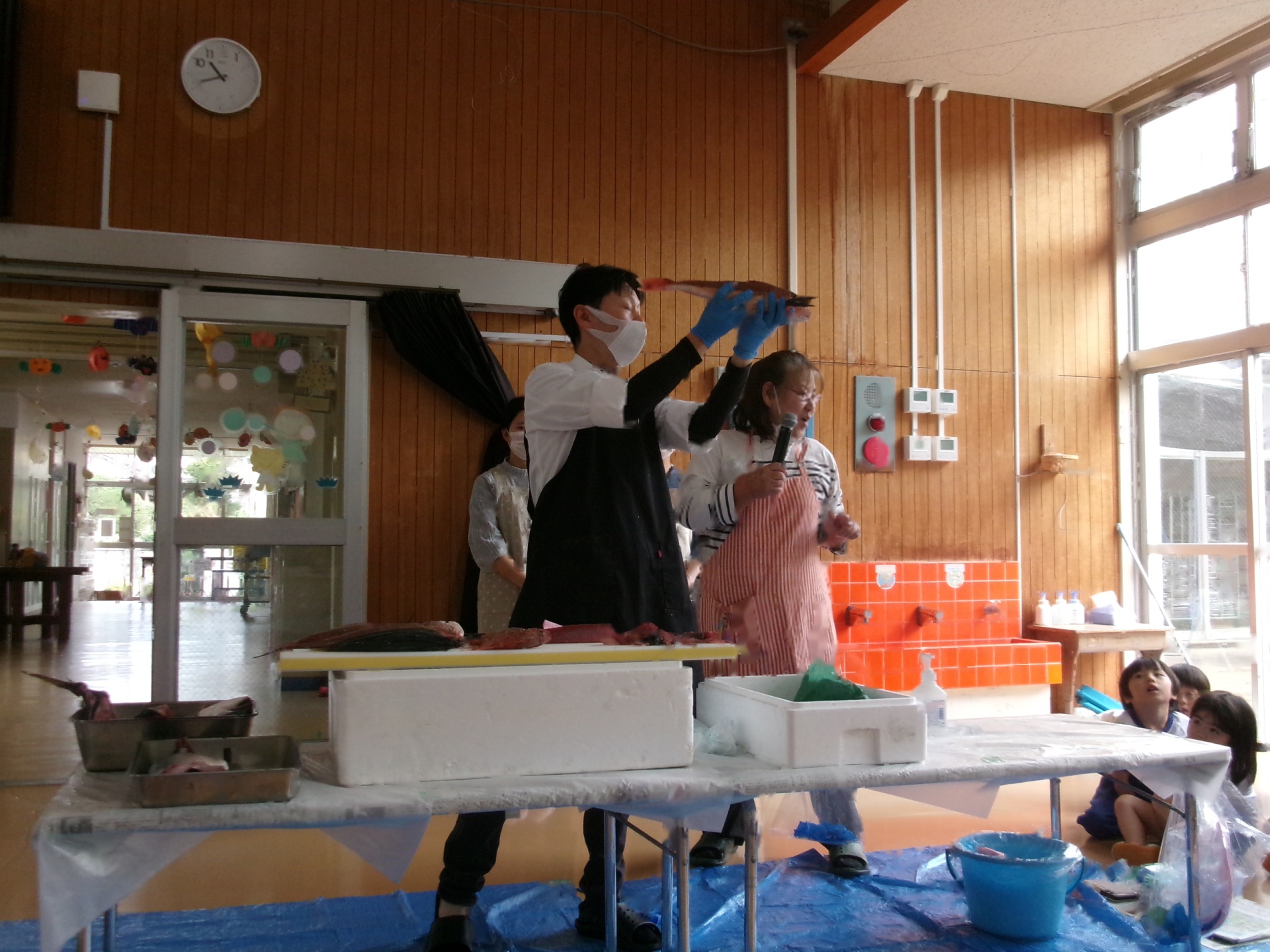 2025.11.21 ☆魚の解体ショー☆ 先月、食育の一環として魚の解体ショーの見学をしました。 初めて見る子どもも多く、調理師さんの華麗な手さばきに釘付けの子ども達でした。 解体ショーを通して、≪命を頂いていること≫を感じてくれたことと思います。
