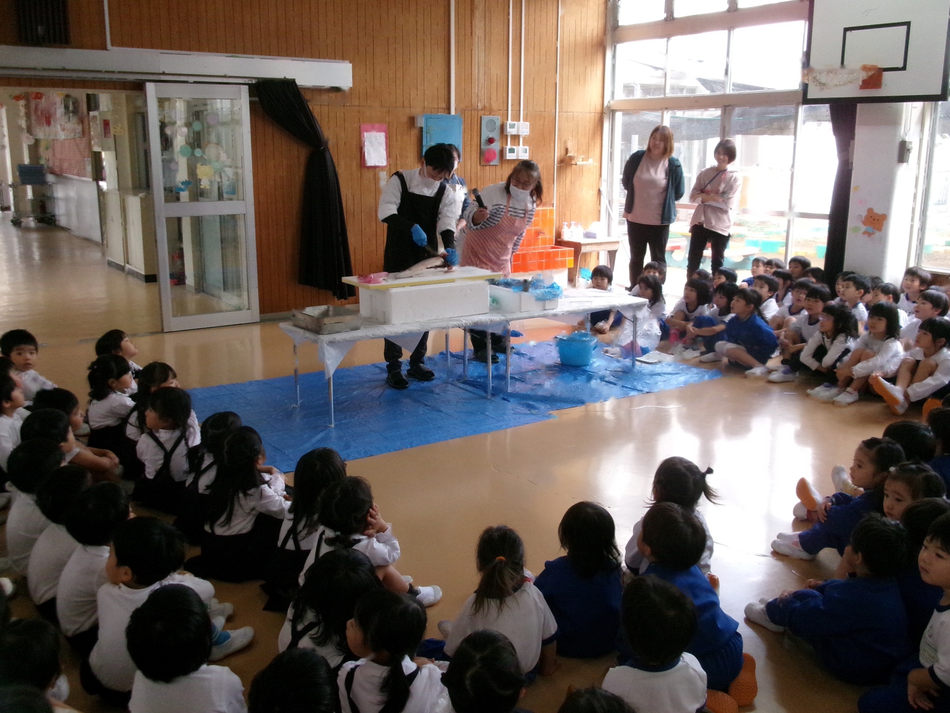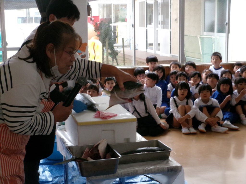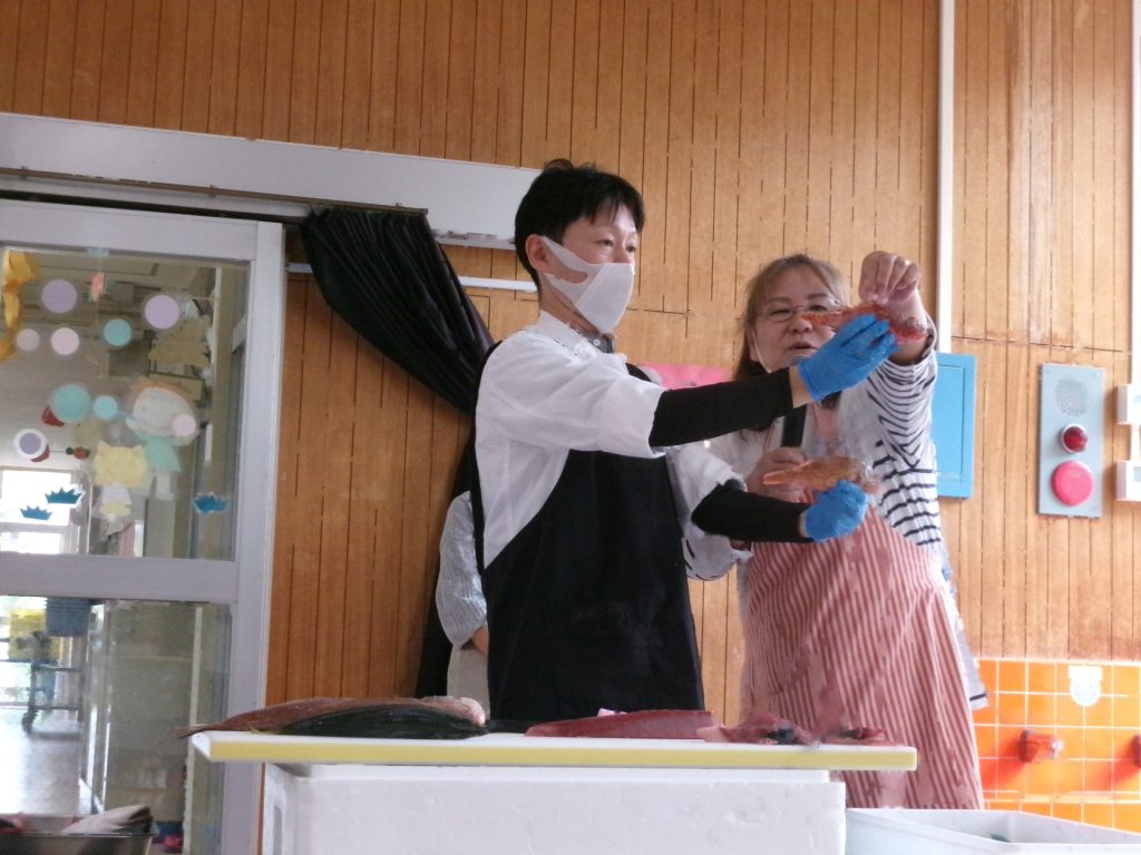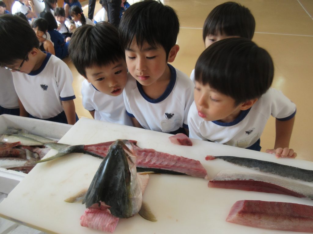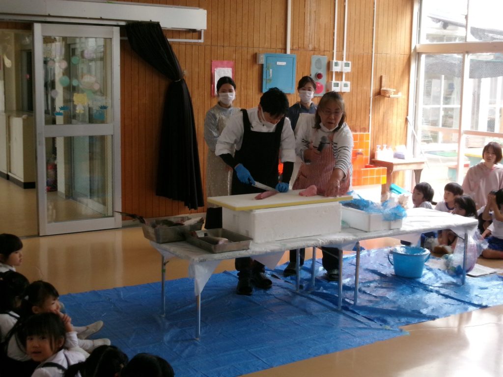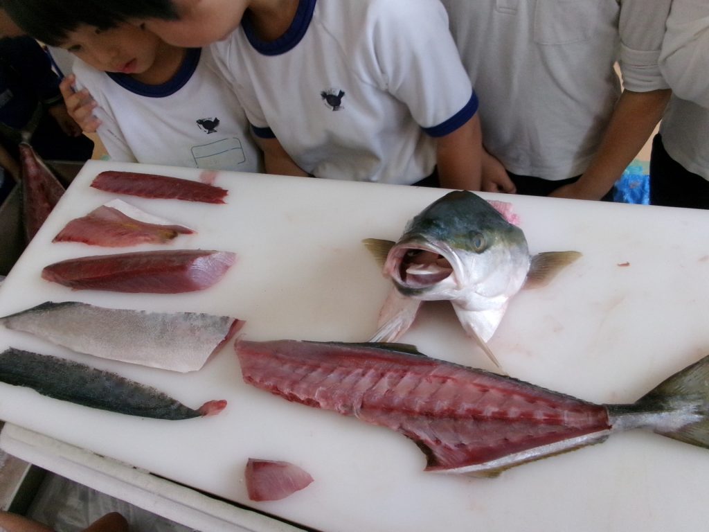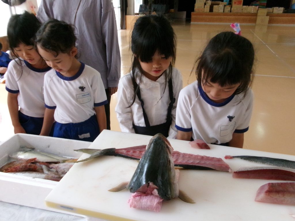 2025.11.21 ☆魚の解体ショー☆ 先月、食育の一環として魚の解体ショーの見学をしました。 初めて見る子どもも多く、調理師さんの華麗な手さばきに釘付けの子ども達でした。 解体ショーを通して、≪命を頂いていること≫を感じてくれたことと思います。